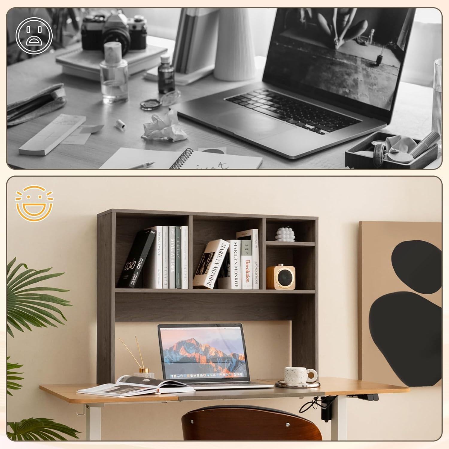 This 2-tier desktop bookshelf is designed to help you organize your workspace efficiently. With its 4-compartment layout, you can neatly store books, stationery, and other items without occupying too much desk space. Made from E0 grade particle board, this torage rack is sturdy and can hold up to 145 pounds. The smooth surface is burr-free, ensuring a safe and pleasant user experience. For added safety, 2 anti-tip devices is included to keep the shelf securely in place.