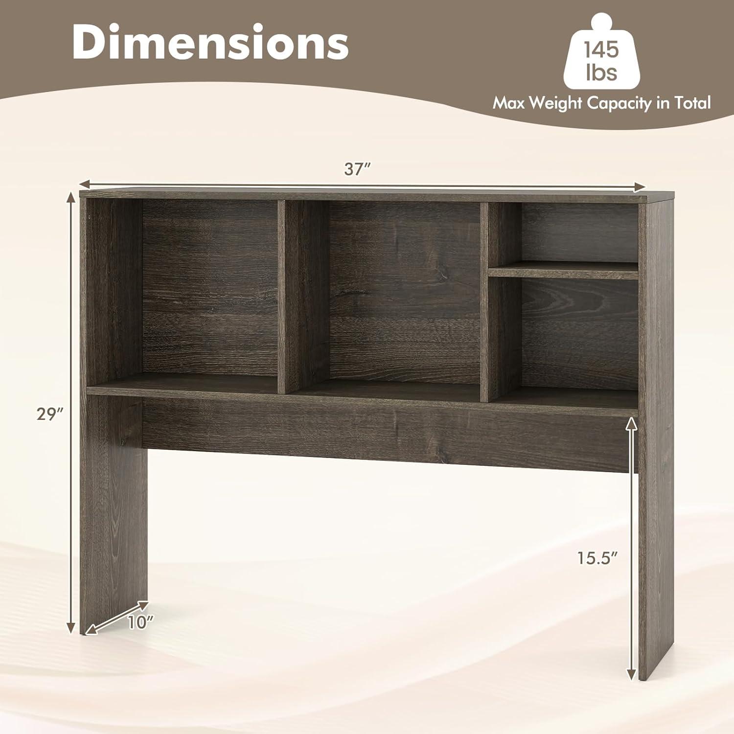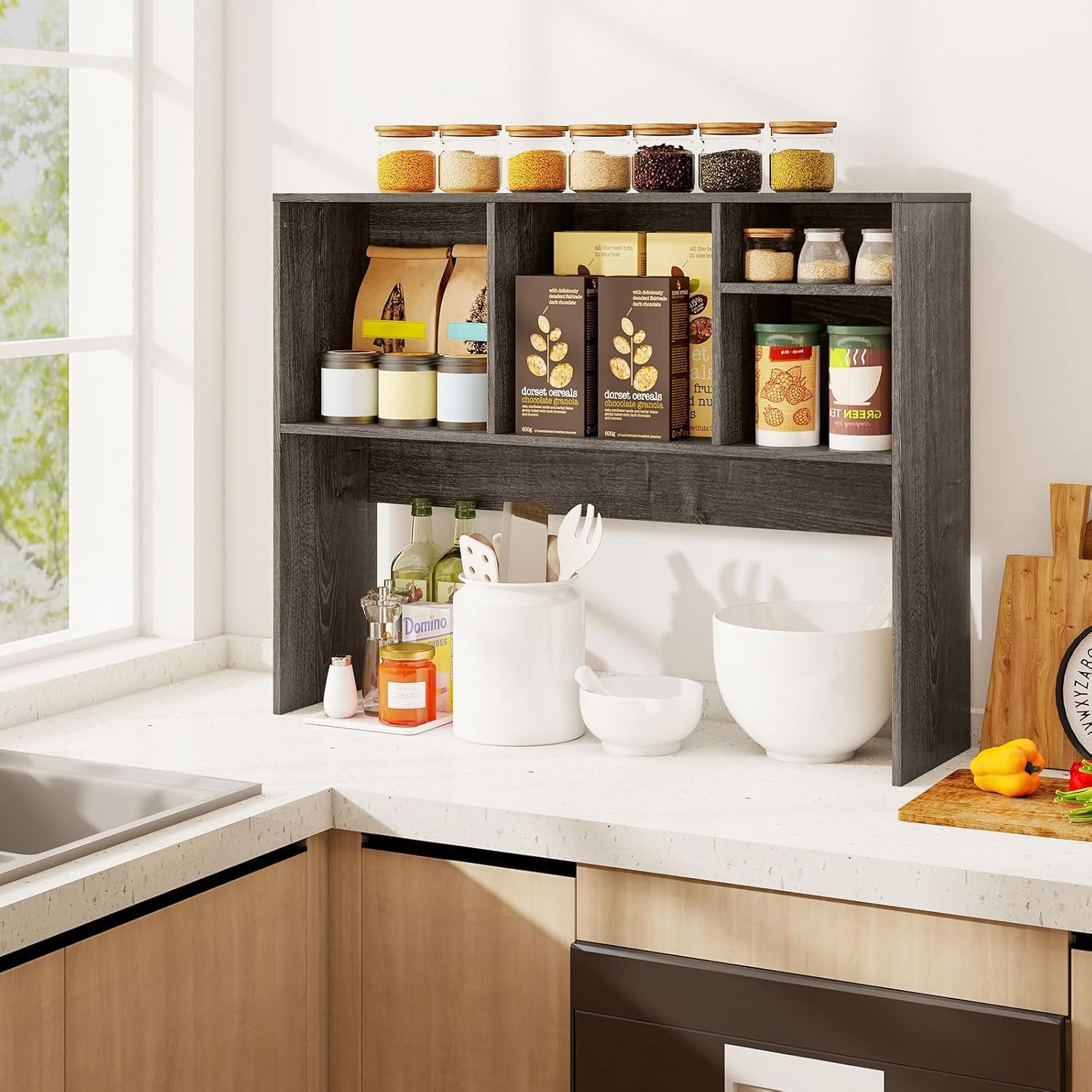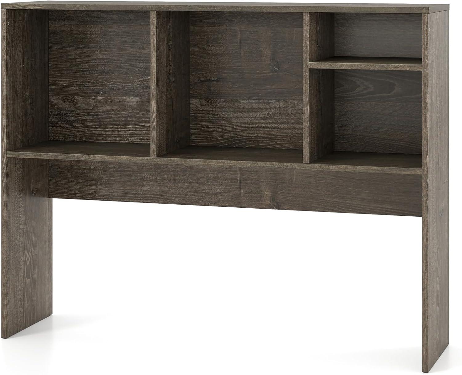 2-Tier Shelf, 37″ Wide College Hutch Top With 4 Shelves, Organizer for Computer Desk, Dorm, Home, Office, Study, Dining Table, Natural(Grey Oak)