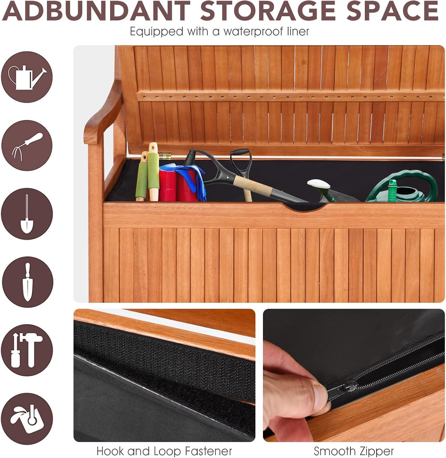 image33 Gallon Outdoor Bench with Storage Wooden Patio Deck Box with Removable Lining ampamp Portable Handles ampamp Backrest ampamp Armrests Patio Storage Bench for Porch Park Yard Backyard Balcony Poolside
