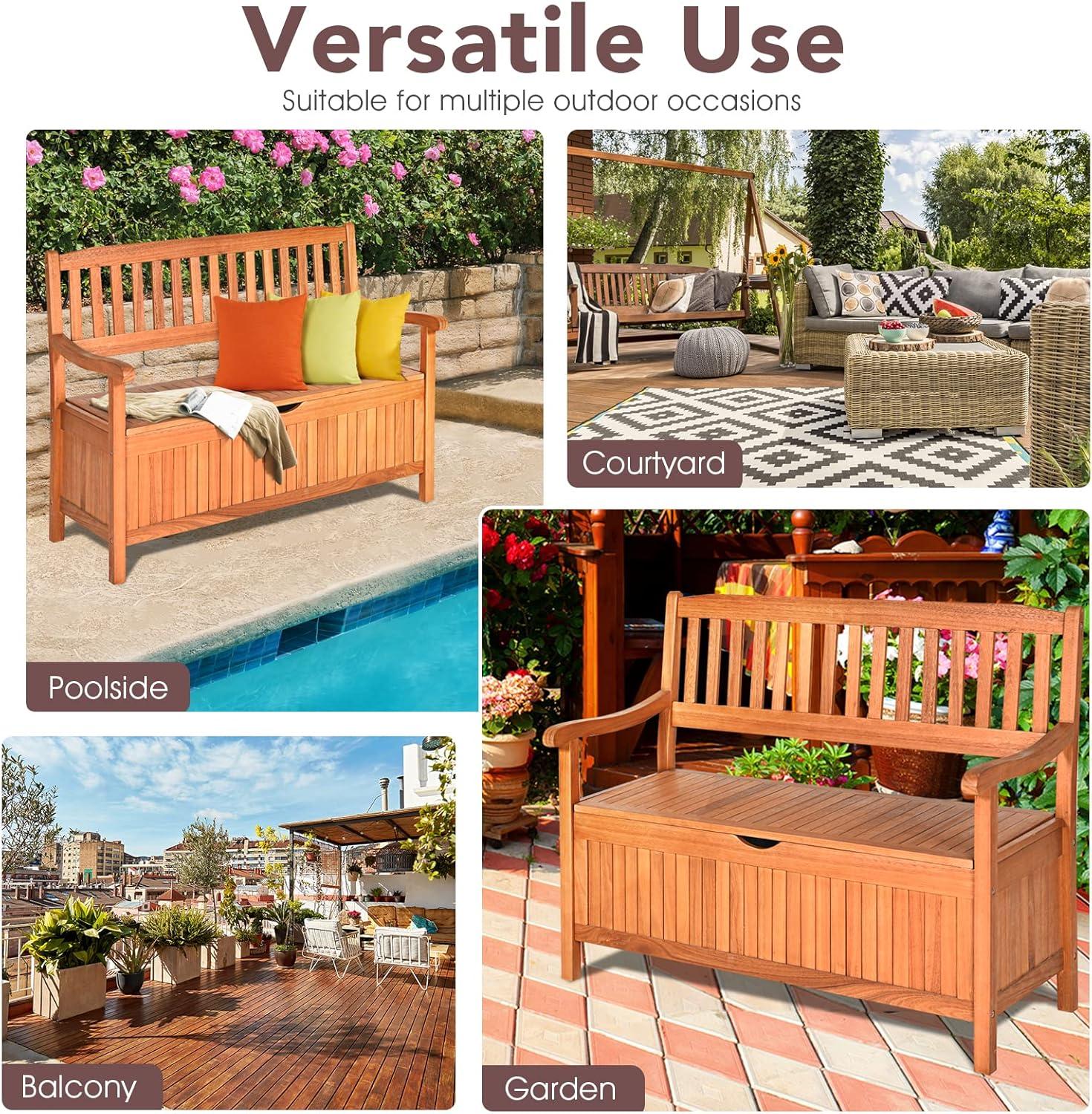 Premium Eucalyptus Construction: This storage bench outdoor features a solid eucalyptus frame that supports up to 800 lbs, offering exceptional stability without warping or cracking. The smooth-finished wood slats provide lasting durability with classic appeal