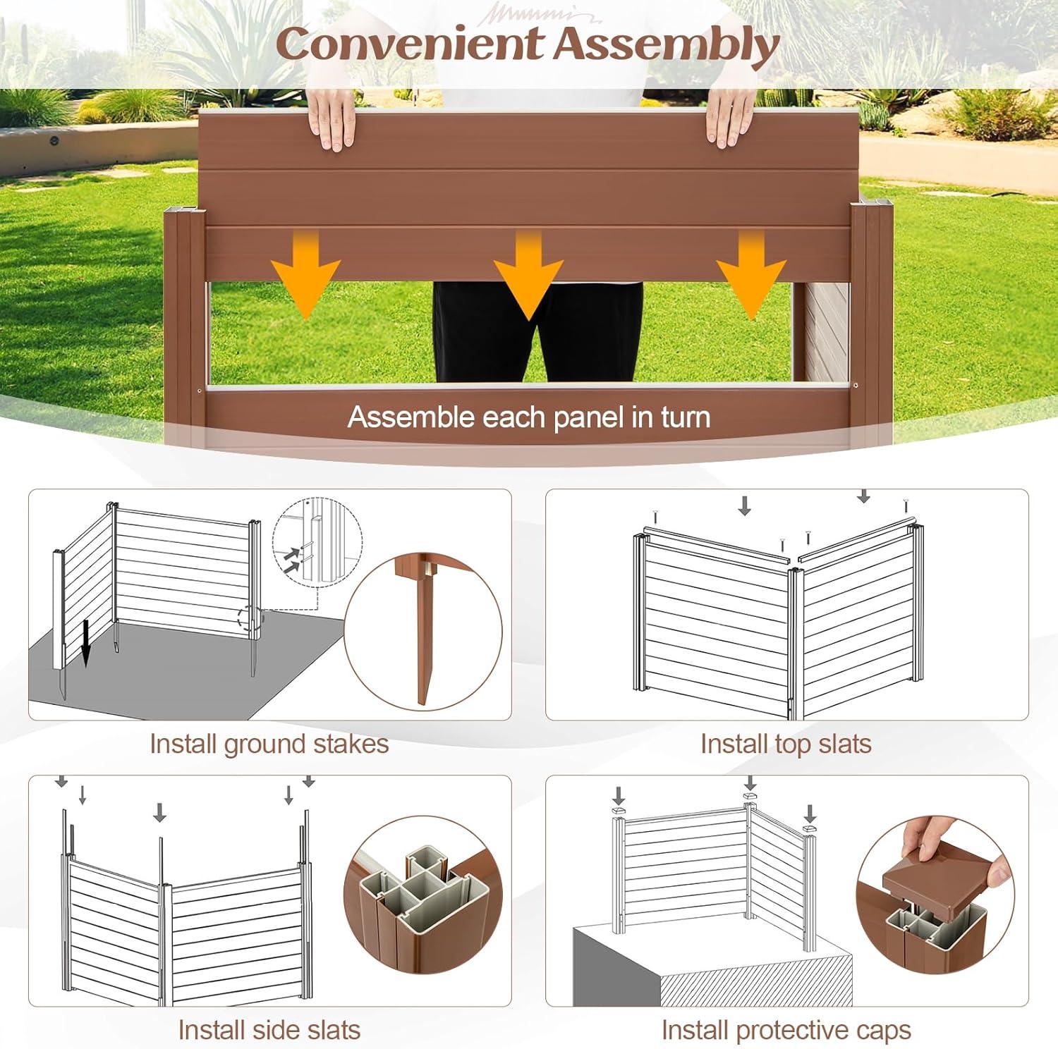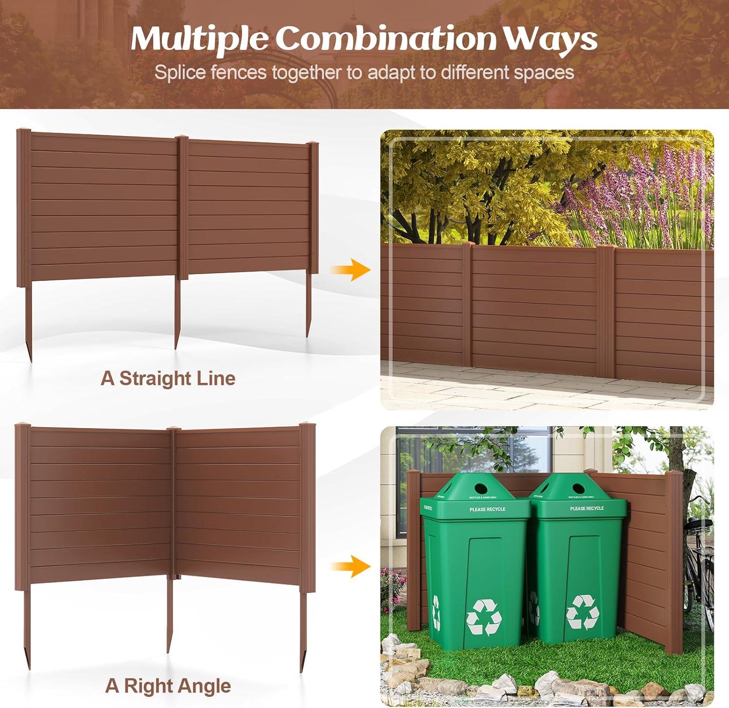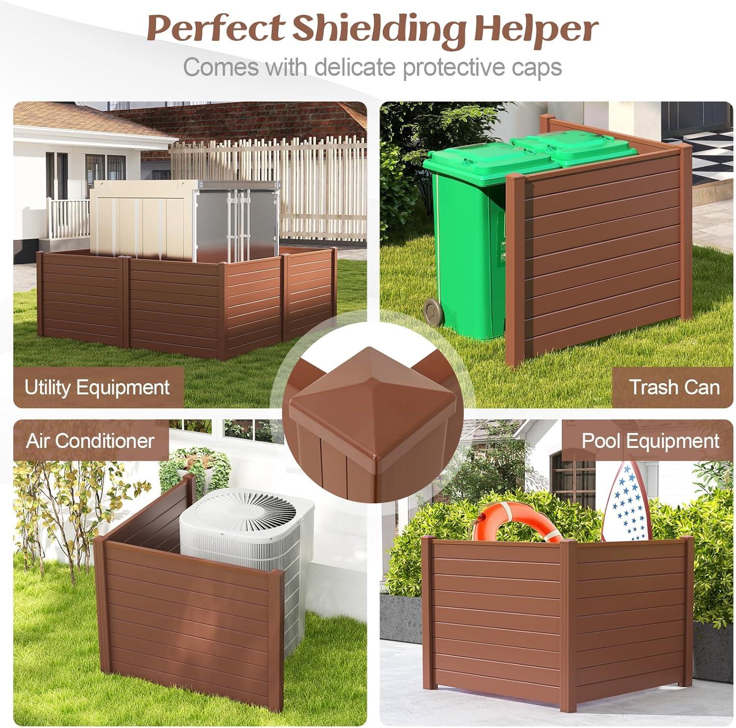 48"W x 36"H Privacy Screen(2 Panels), Outdoor PVC Privacy Fence w/ 3 Ground Stakes, Pool Equipment Enclosure, Trash Can Enclosures, Air Conditioner Fence for Garden AC Unit Pump Patio, White(Brown)
