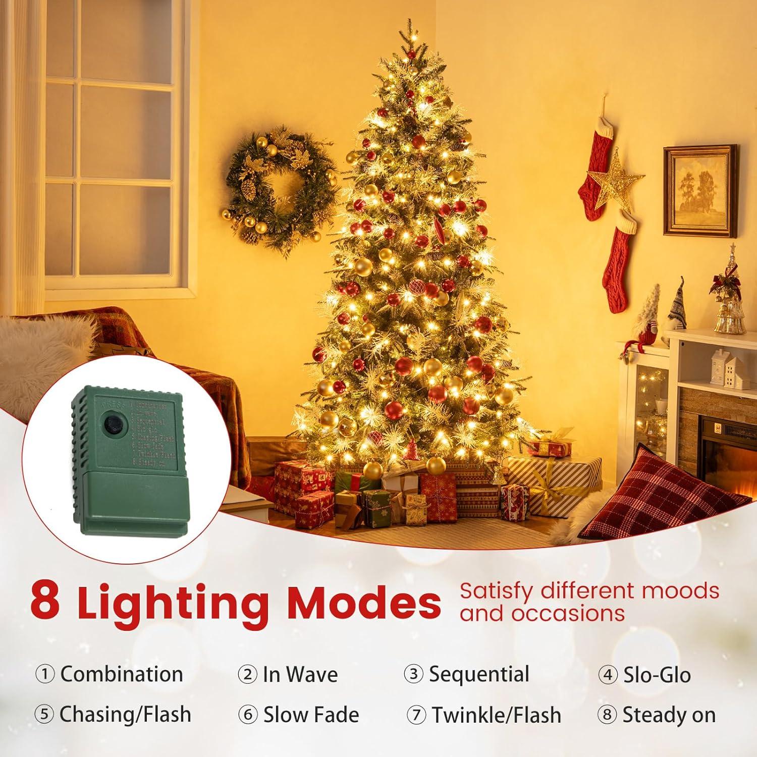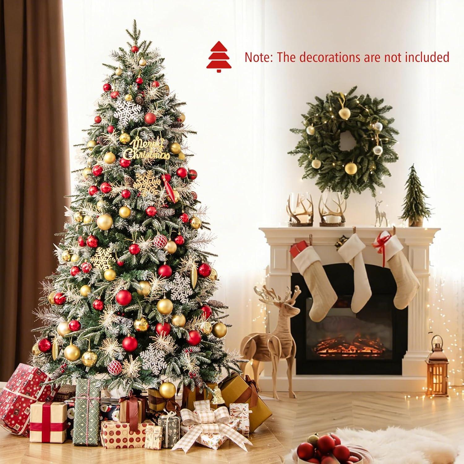 8ft Pre-Lit Christmas Tree, Artificial Hinged Xmas Tree with 880 LED Lights, Foldable Metal Stand & 2 Pairs of Gloves, Festival Decoration Tree for Home Living Room Office (8ft)(6ft)