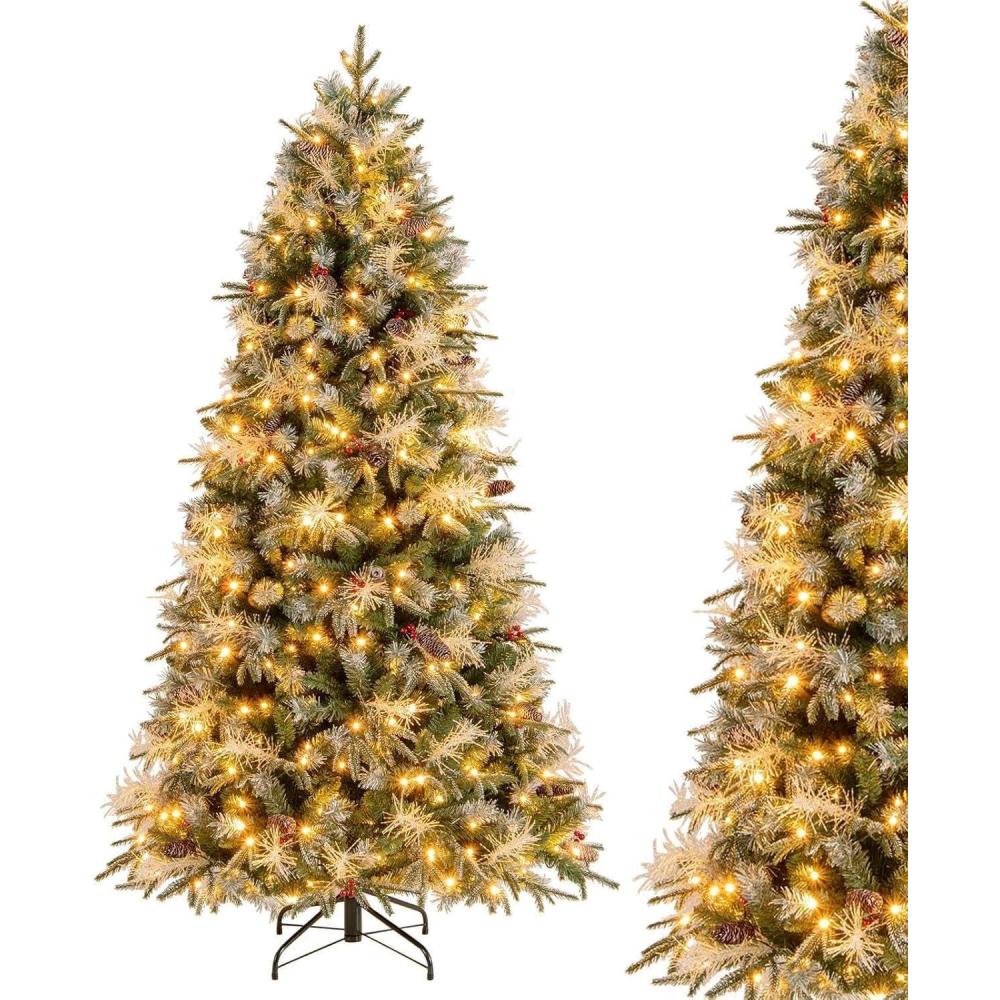 Lush & Realistic Design: 602/806/1072 artfully shaped branch tips give this Christmas tree the full, fresh. 26/32/40 natural pine cones and 26/32/40 vibrant bright red berry clusters are tucked deep in the greenery, so every glance catches a new pop.
