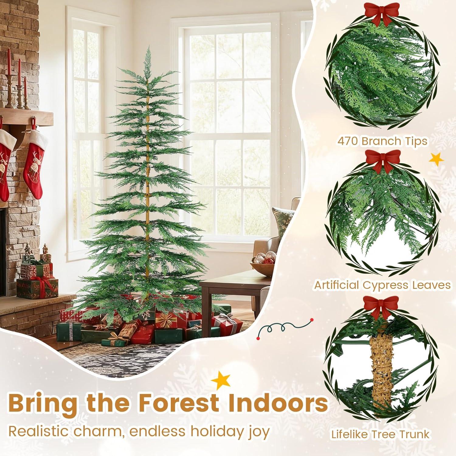 Elevate your holiday decorations with our pre-lit artificial cypress Christmas tree, designed to bring the charm of nature into your home while ensuring convenience and safety. Available in 6.5FT and 7.5FT sizes, the pre-lit Xmas tree caters to different space needs—whether you’re decorating a cozy living room, a busy office, or preparing for a holiday party.