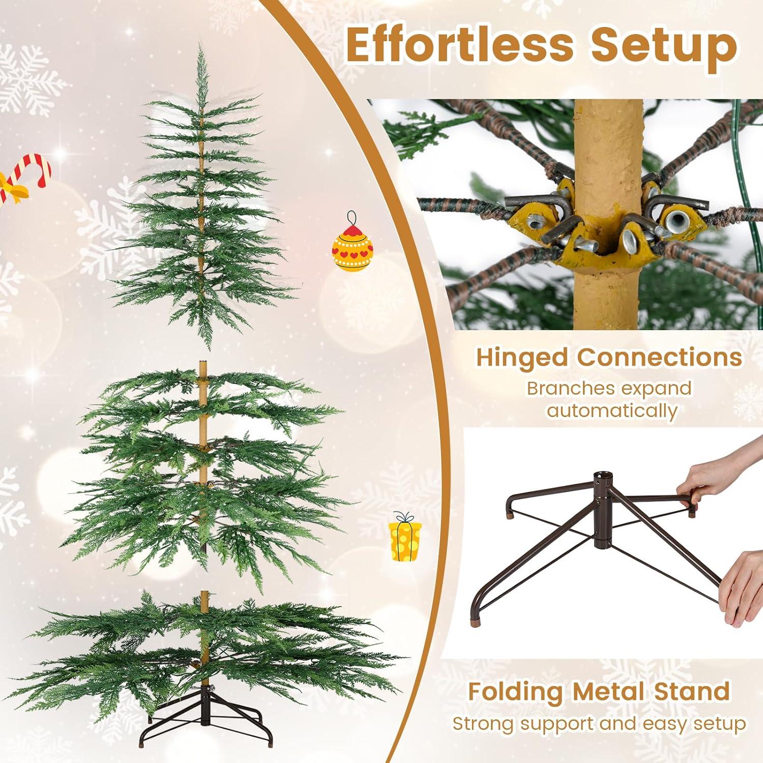Made from long-lasting, fire-resistant PE material, The artificial Christmas tree’s built to last for years without fading or emitting weird odors. The foldable metal stand and anti-slip foot pads ensure stability and floor protection, while the hinged assembly design and included gloves make setup a breeze. When the holiday season ends, it’s easy to disassemble and store, ready to bring joy again next year.