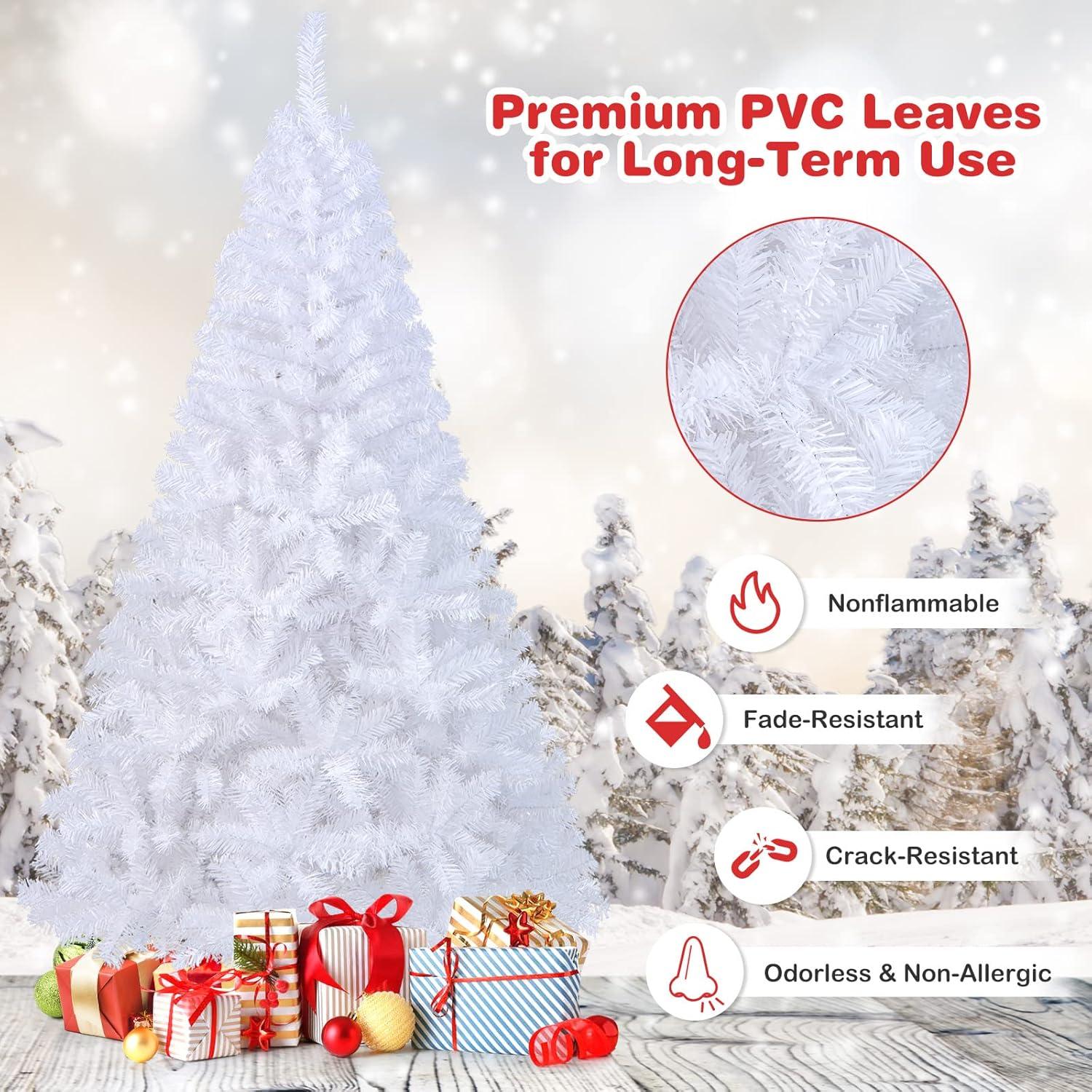 Standing tall at 6 ft, this gorgeous tree is like a frosty breath of fresh air, bringing a touch of sparkle to your holiday decor. Imagine it glowing under twinkling lights, with soft, snowy branches waiting to hold your favorite ornaments and the magic of the season. Made with high-quality PVC needles and supported by a sturdy metal stand, this tree is as durable as it is beautiful. No more fussing with messy pine needles or cleaning up after your tree! Embrace the elegance of a white Christmas tree that promises to brighten every room, making your home feel cozy, festive, and ready for joyful memories.
