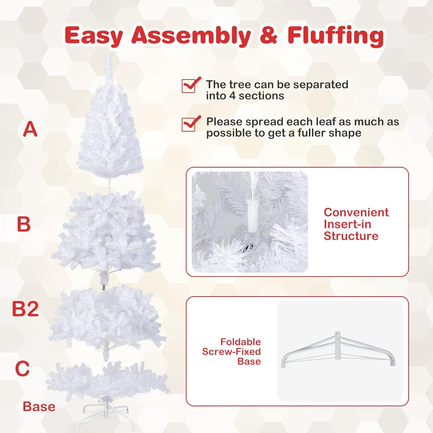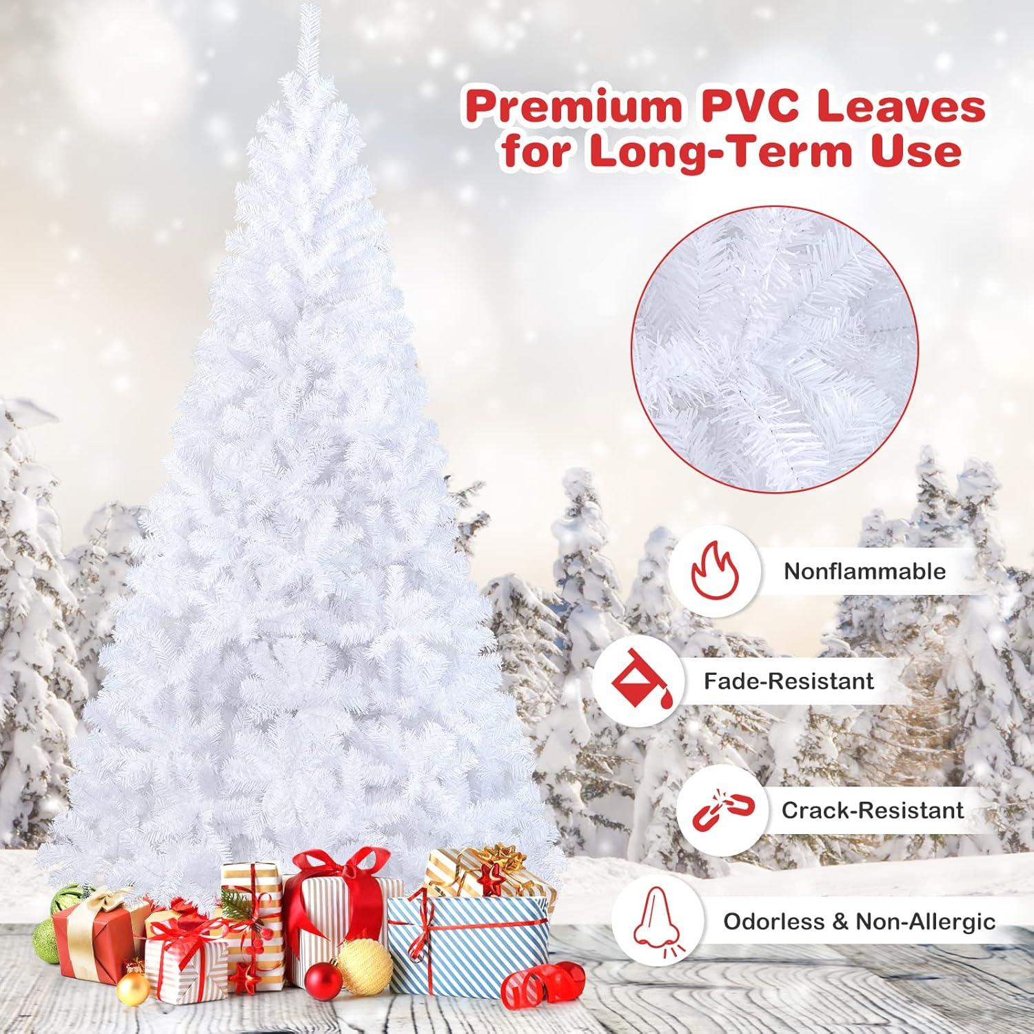 Glamorous White Holiday Charm: Elevate your holiday with a white Christmas tree. Designed with hundreds of lush, lifelike branches, it creates a full and vibrant look that stands out in any room. Perfect for spreading festive cheer, this tree brings a touch of winter magic to your home