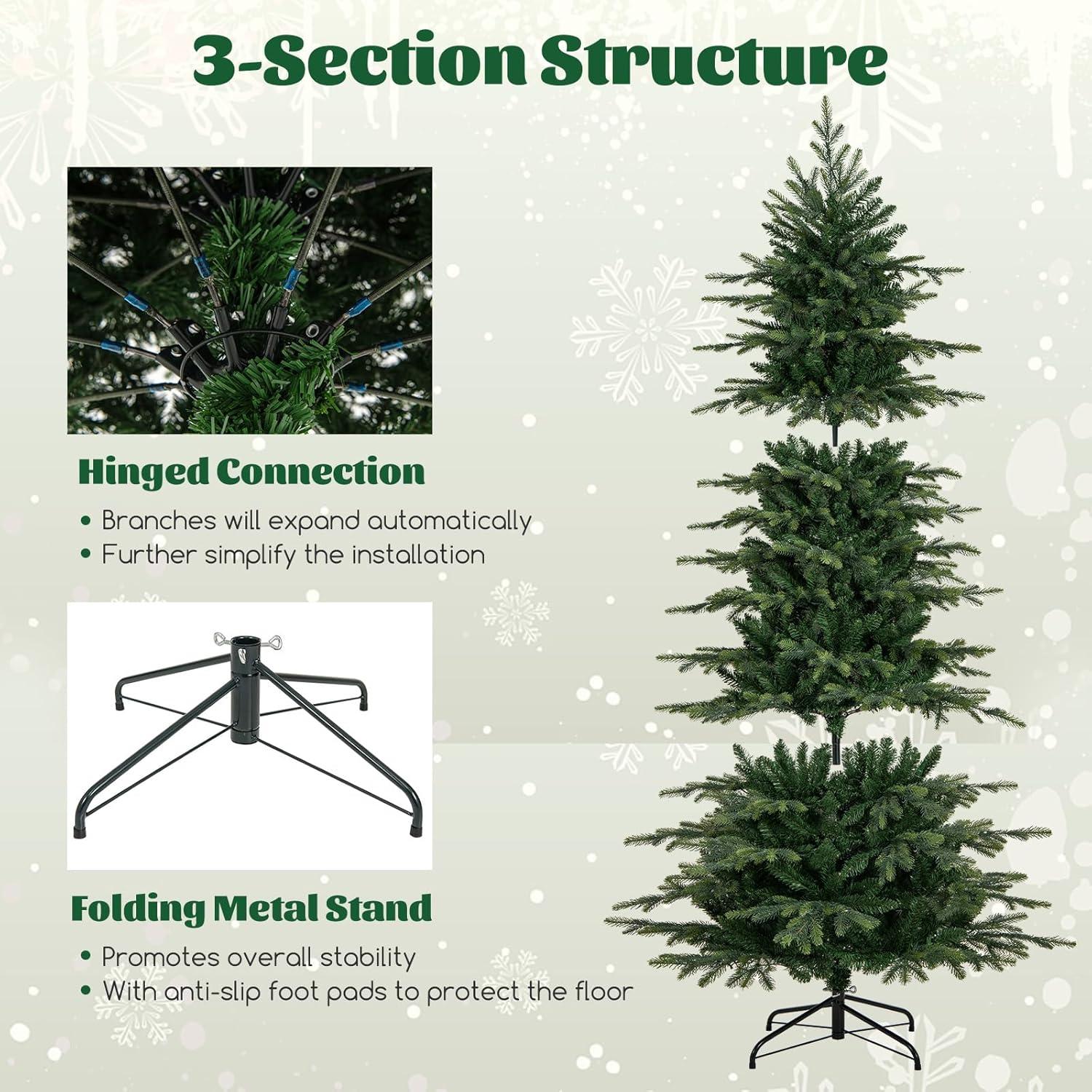 Long-Lasting & Flame-Retardant for Safe Use: Made from flame-retardant materials, this Christmas tree ensures safety during the festive season. Sturdy metal stand and strong hinged branches provide stability and support for all your favorite ornaments.
