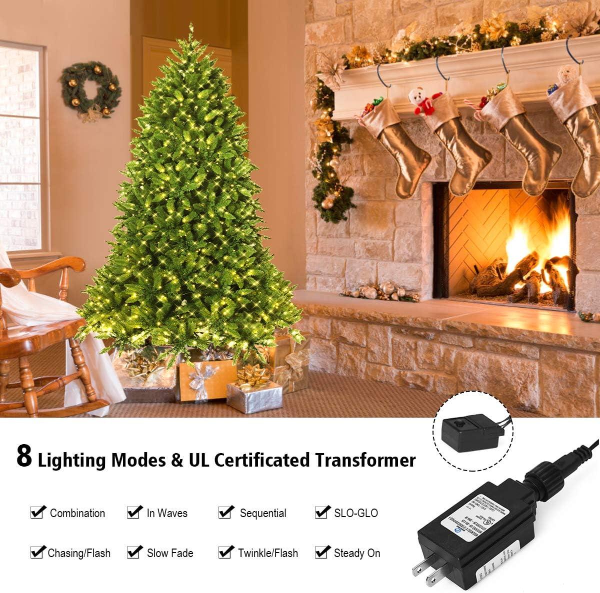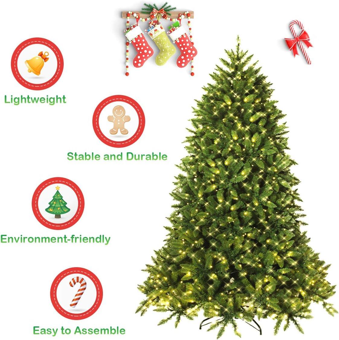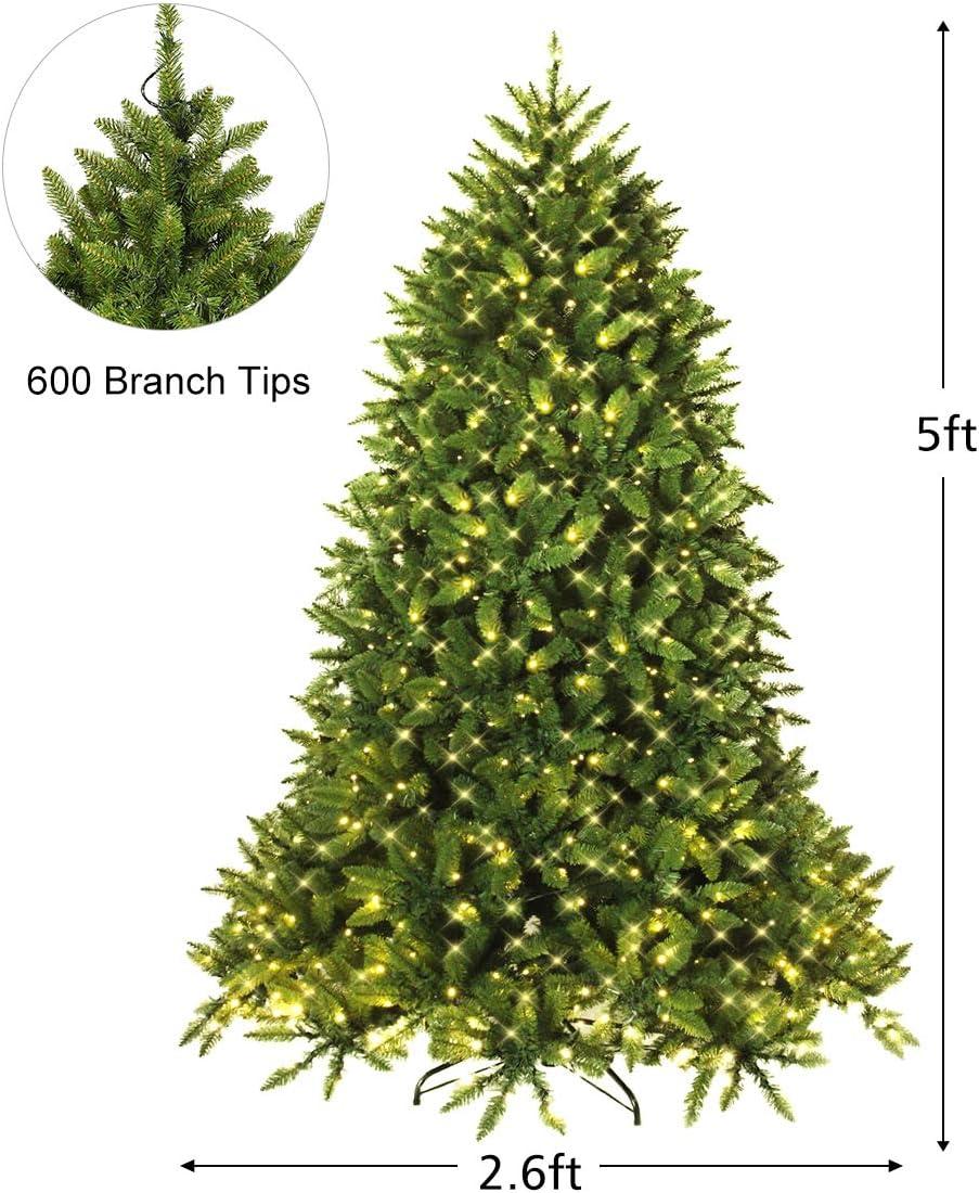 Each size is equipped with a corresponding number of warm white LED lights (450 for 5FT, 650 for 6FT, 700 for 7.5FT) and 8 lighting modes, letting you create a magical ambiance for family gatherings or holiday parties. The hinged design makes setup a breeze, so you spend less time assembling and more time enjoying the season.