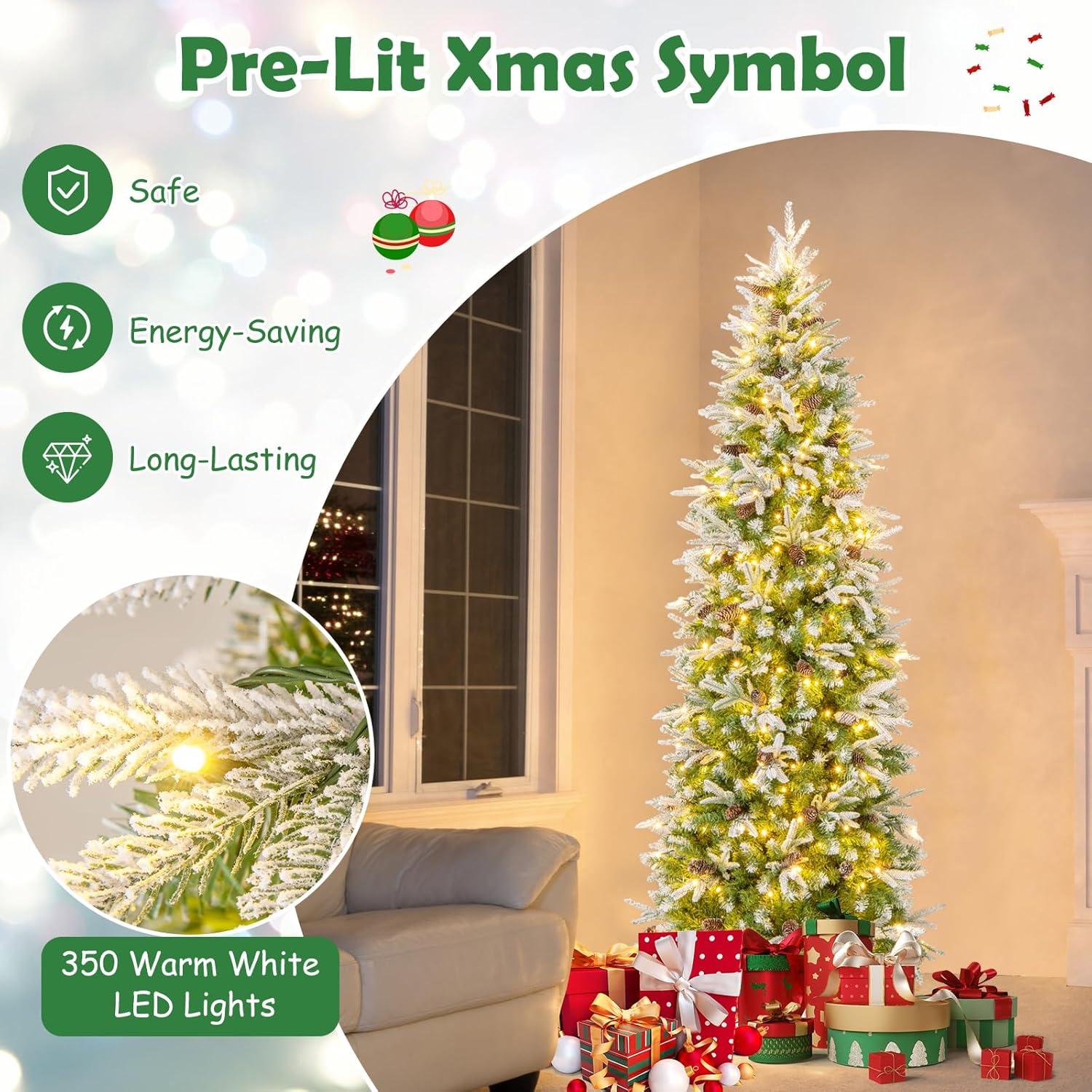 Natural & Lush Appearance: Adorn your home with this captivating 7.5 ft tree boasting 913 dense branch tips and 75 natural pine cones. Its snowy flocked design creates a winter wonderland atmosphere, perfect for capturing the magic of Christmas. Experience the fullness and authenticity of a natural tree, without the hassle
