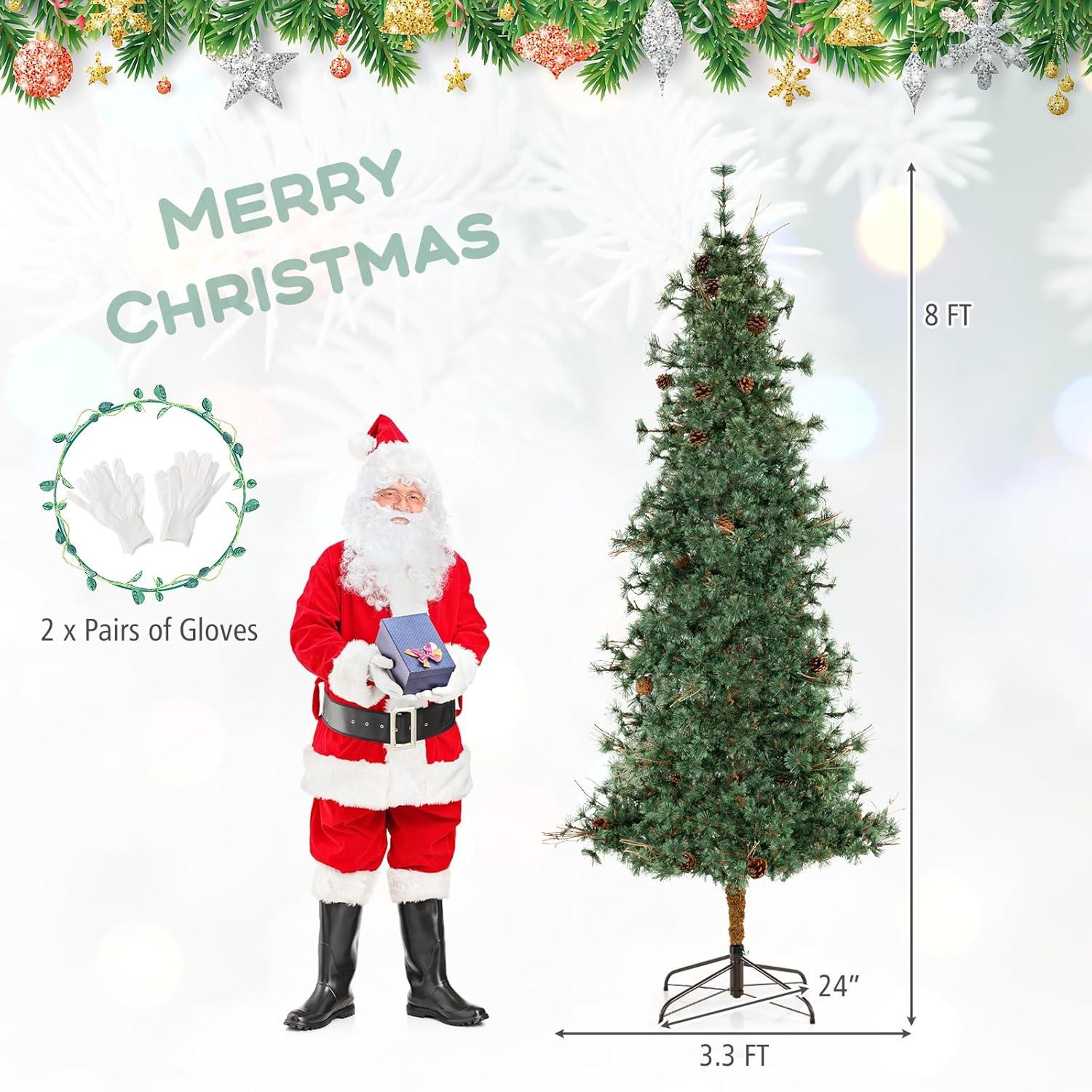 Realistic Appearance with Premium Materials: The artificial Christmas tree mimics the natural shape of real pine trees, adorned with lush cashmere pine needles (370 tips for 6FT, 502 tips for 7FT, 702 tips for 8FT) and natural pine cones (22 for 6FT, 28 for 7FT, 36 for 8FT), creating an authentic festive vibe.