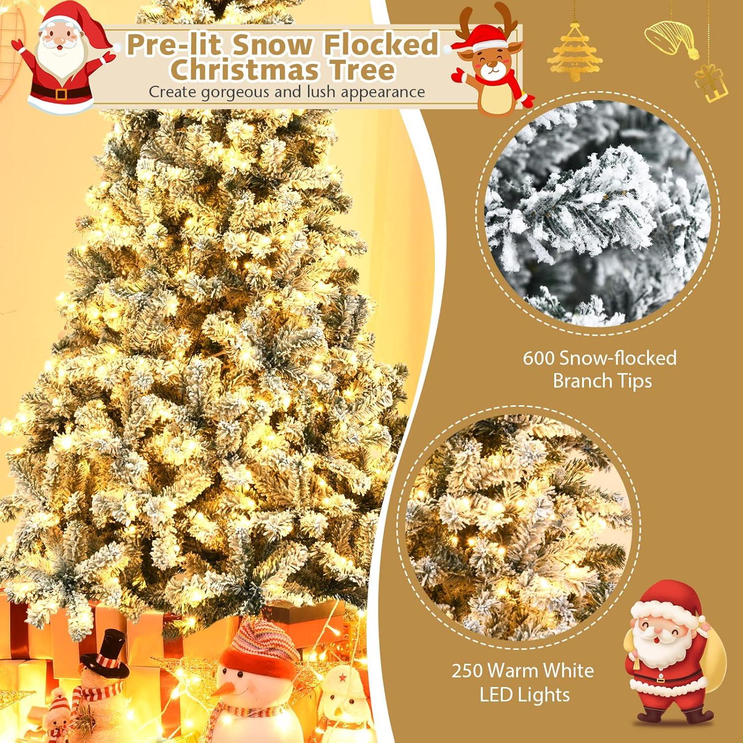 image9 FT PreLit Christmas Tree Easy to Assemble Snow Flocked Hinged Pine Tree Full Appearance Snowy Artificial Tree wLED Lights PVC Needles Prelighted Xmas Tree wSturdy Stand 9 FT7ft 6in