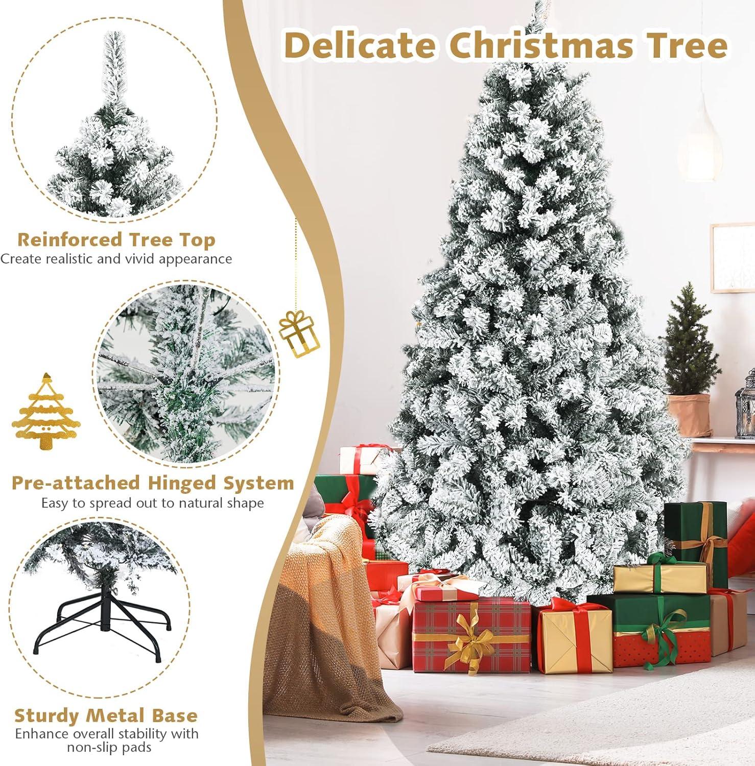 Realistic Snow-Flocked Appearance: This 9 ft Christmas tree features beautifully snow-flocked branches, adding a touch of winter charm to any space. It’s ideal for decorating homes, offices, and shops
