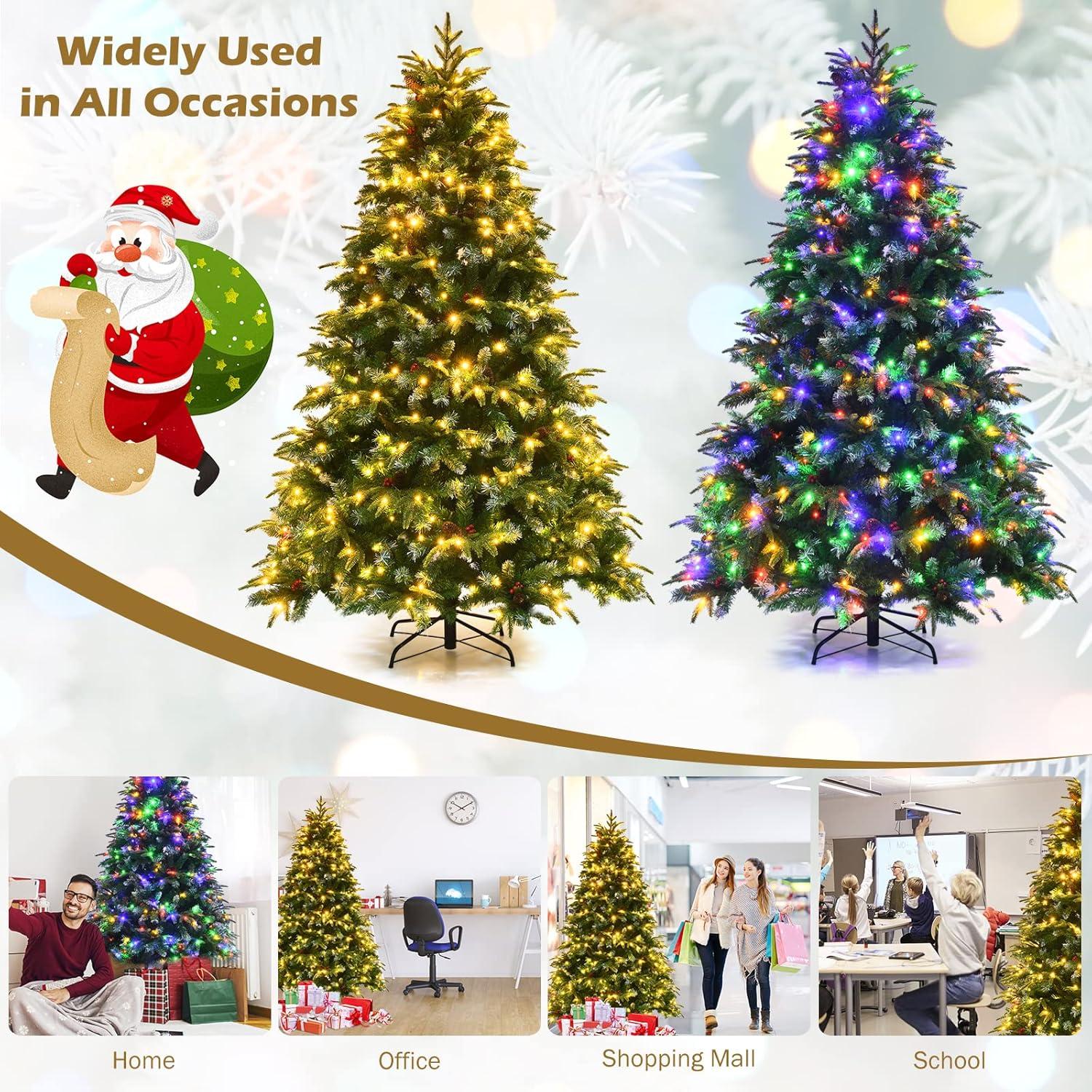 This premium Christmas Tree features high-quality PVC branches with a realistic look, paired with 250/350/450/780 color changing LED lights that offer 11 adjustable lighting modes—perfect for creating a cozy and cheerful atmosphere during Christmas. The realistic snowy Xmas tree comes with a sturdy foldable metal base for stable placement, and the tool-free assembly design allows you to set it up quickly in just 15-20 minutes. When the holiday ends, the hinged artificial Christmas tree can be folded into a compact size for easy storage, and its long-lasting material ensures it can be reused year after year. Whether placed in your home, office, or commercial space, this Christmas Tree will be a highlight of your holiday decorations, making your Christmas more memorable.