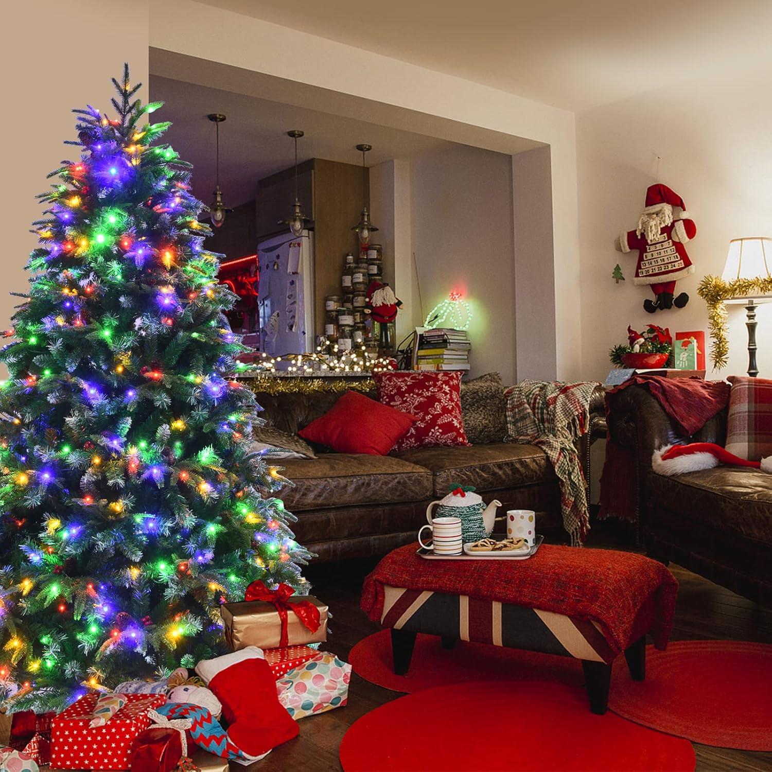Warm White LED Lights for Cozy Ambiance: Equipped with energy-saving LED warm white lights, the Christmas Tree provides soft and gentle illumination. The lights have 8 lighting modes (steady on, slow flash, fast flash, etc.) to meet different holiday needs, making your space warm and cheerful during Christmas Eve, family gatherings, or parties.