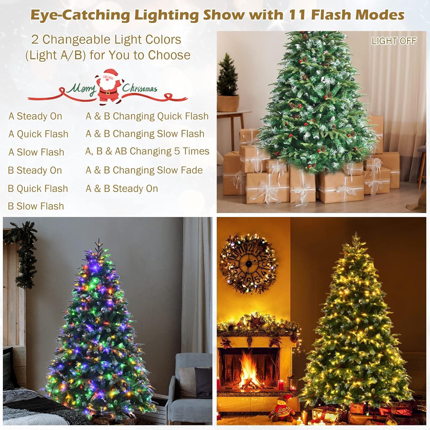 250/350/450/780 LED warm white lights with 2 changeable light colors and11 flash modes ensure versatile festive ambiance creation