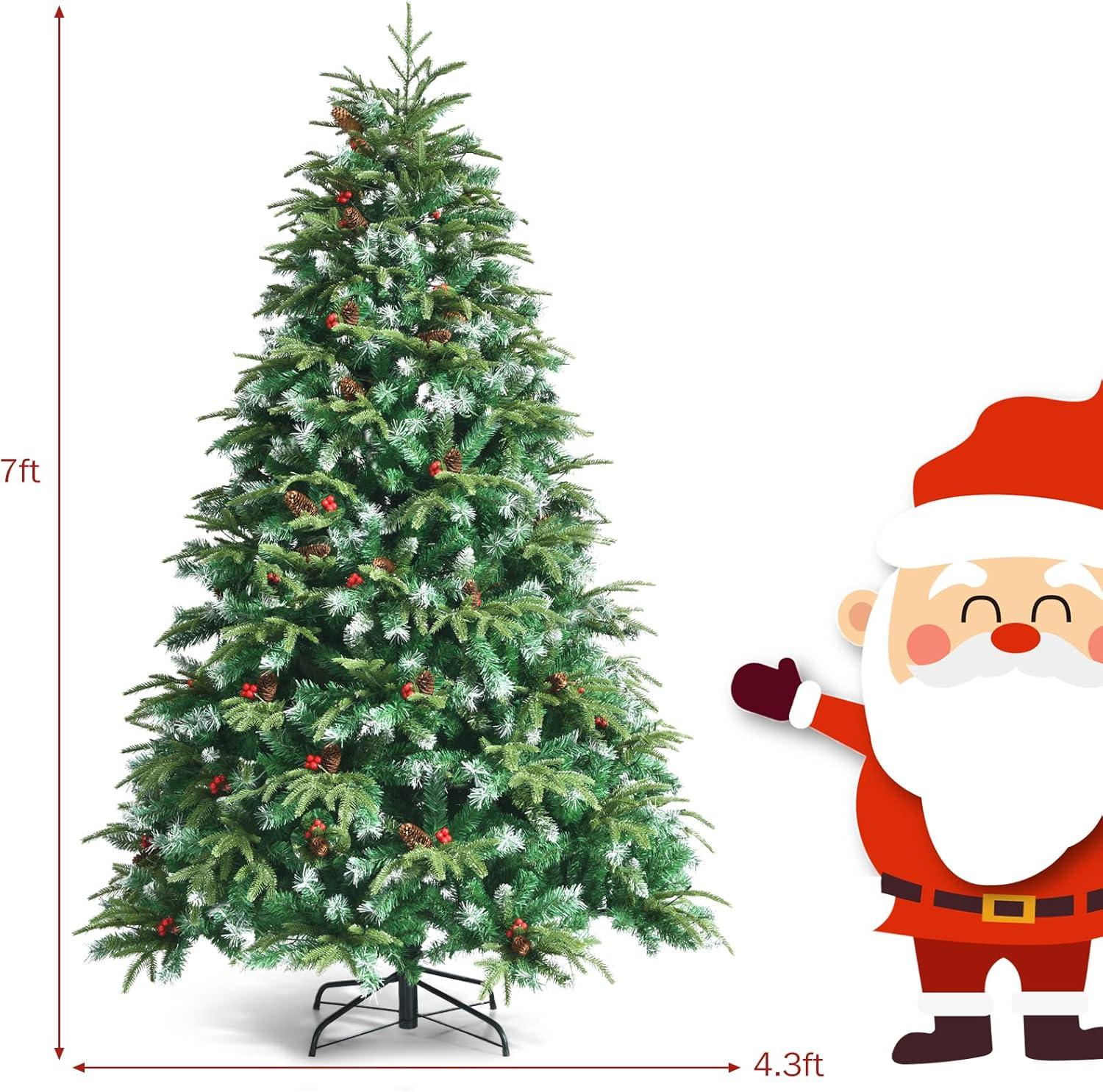 9FT Pre-Lit Artificial Christmas Tree, Hinged Realistic Snowy Xmas Pine Tree with 780 Color Changing LED Lights, 11 Flash Modes & Pine Cones, Folding Metal Base for Home, Office (9ft)(7ft)