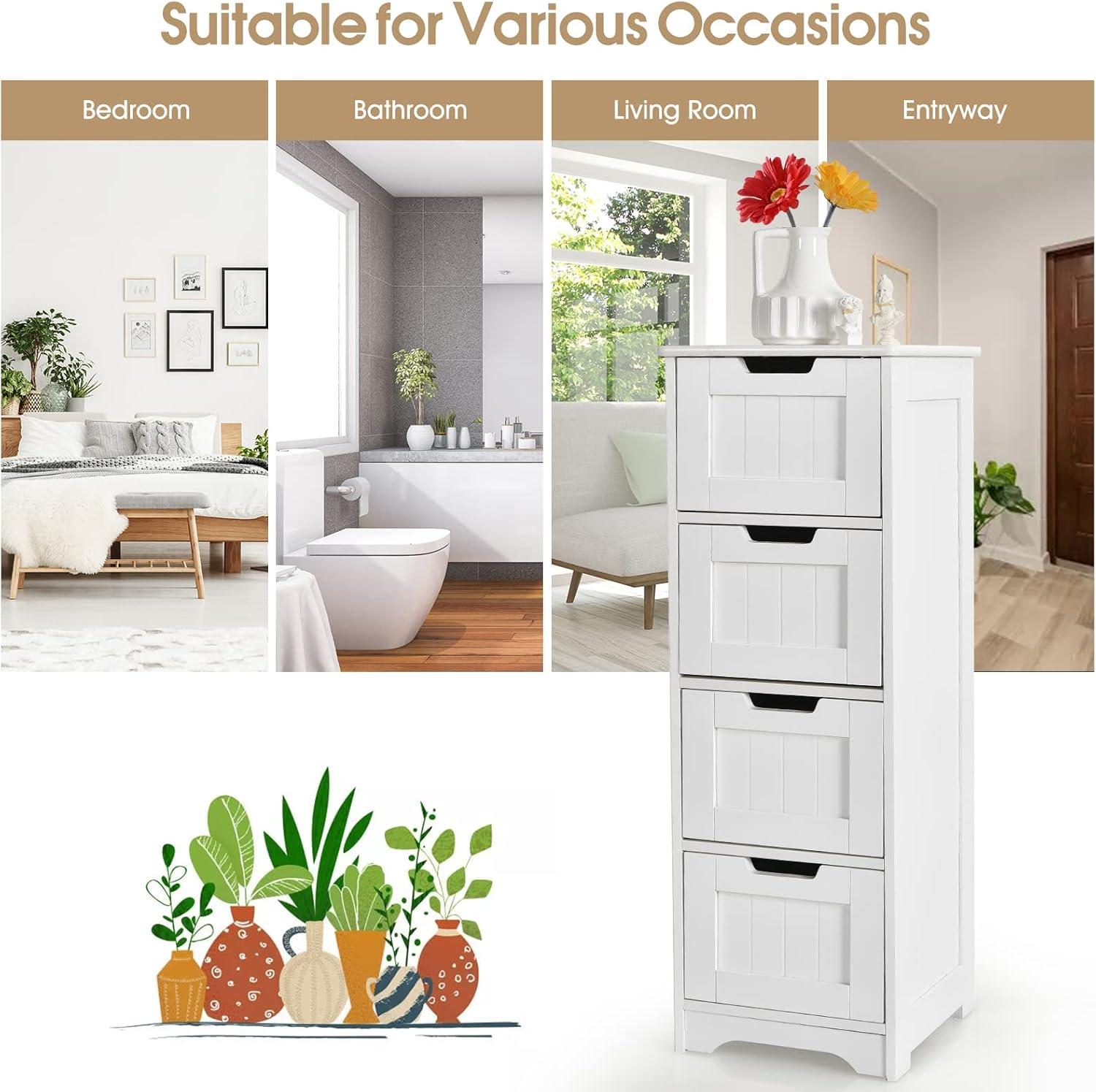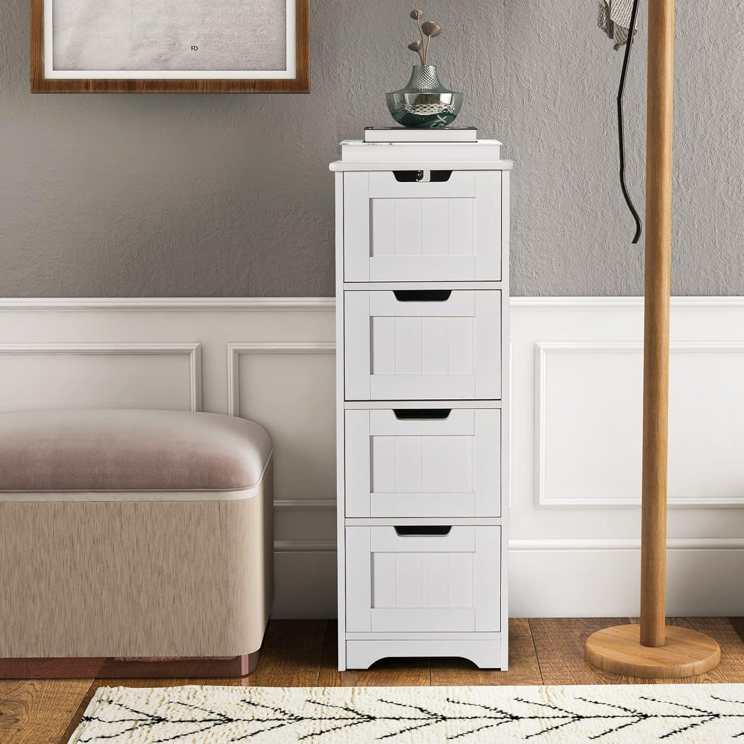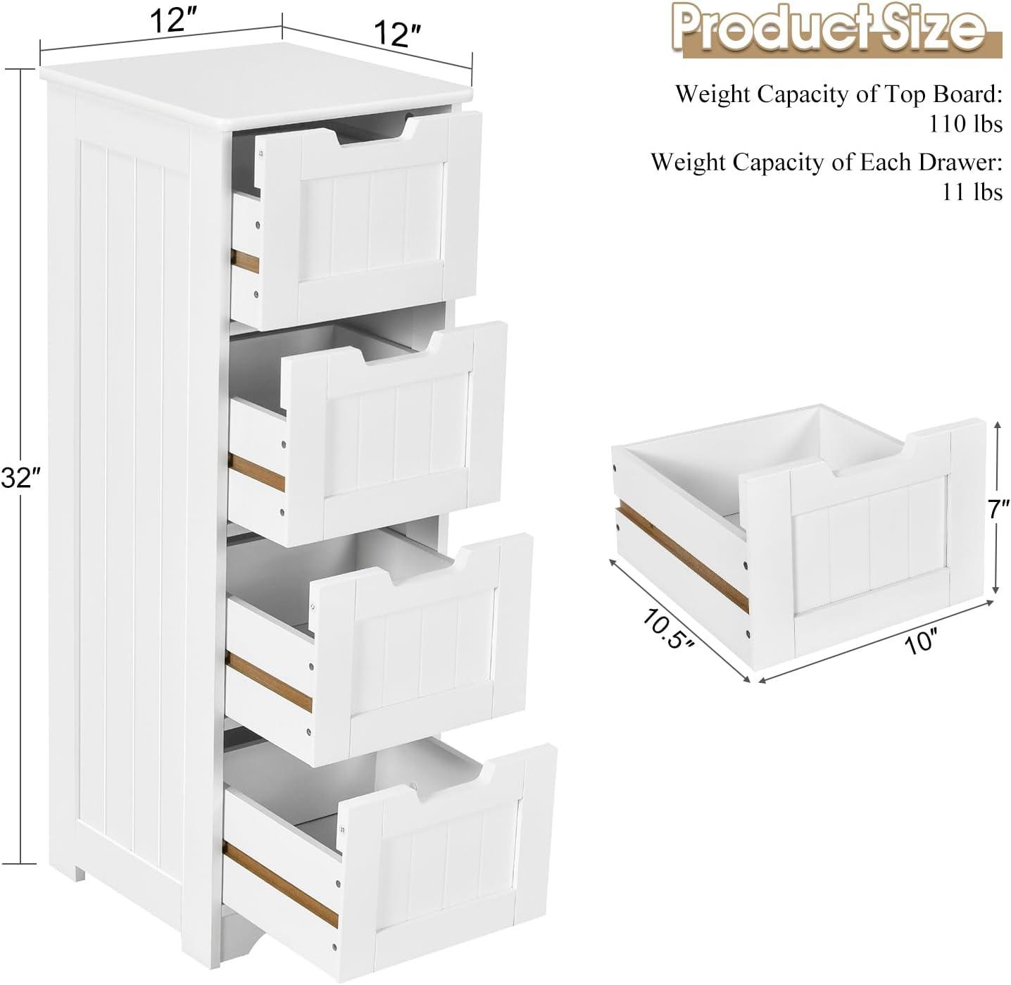 Ample Storage Space: With 4 large drawers, this freestanding storage cabinet offers plenty of space for books, towels, and other essentials. Perfect for organizing your private items. Each drawer measures 10″ x10.5″ x7″ (L x W x H) and supports up to 11 lbs.