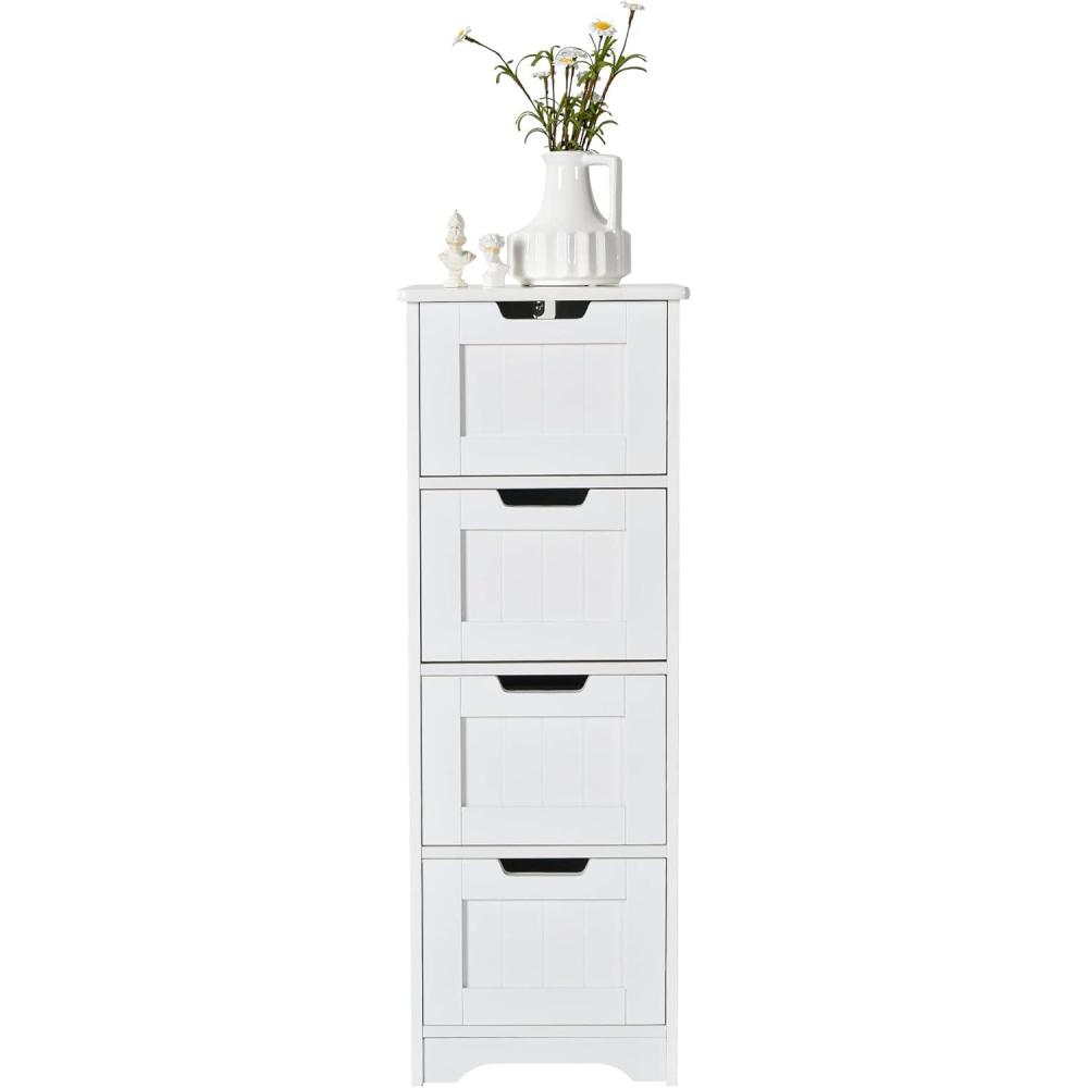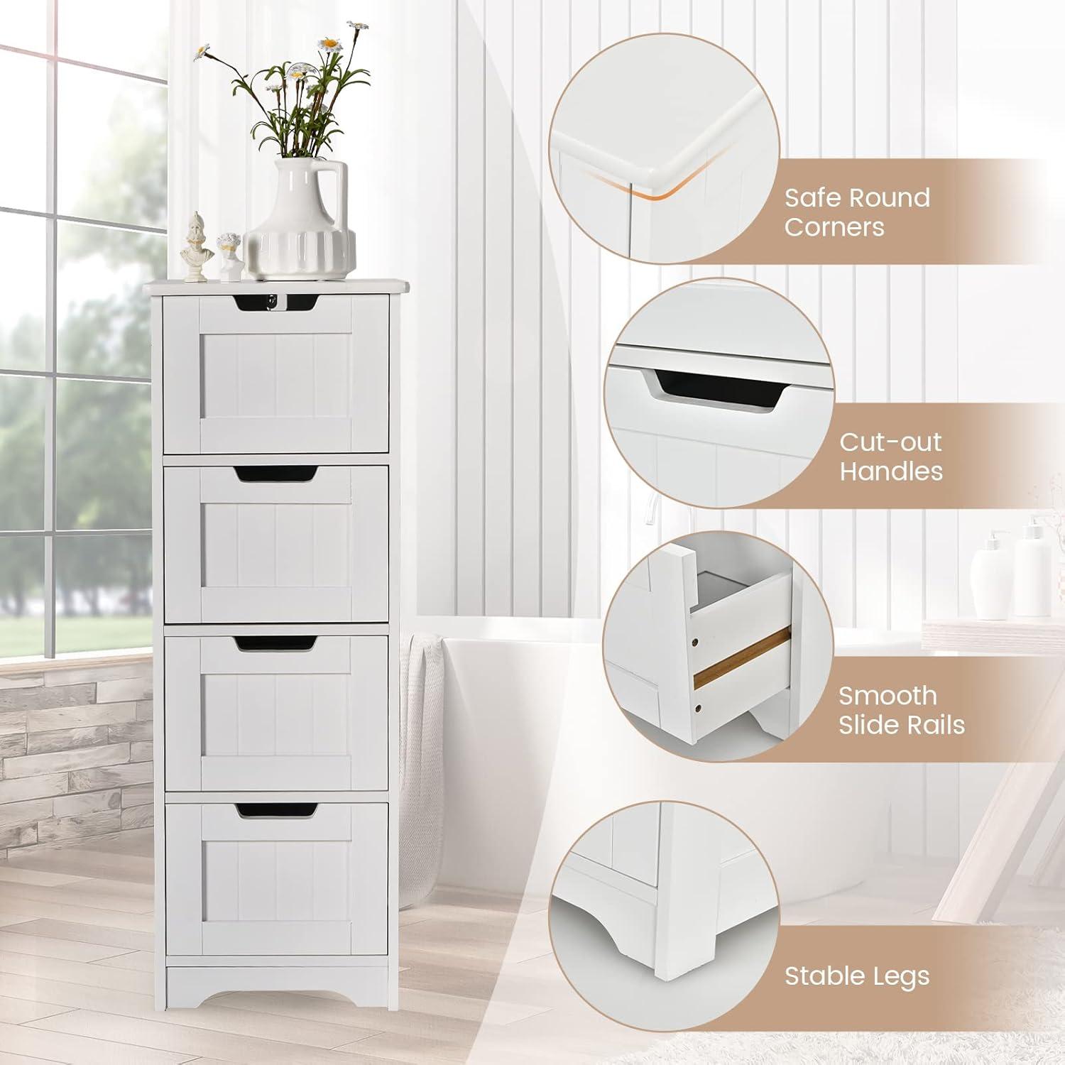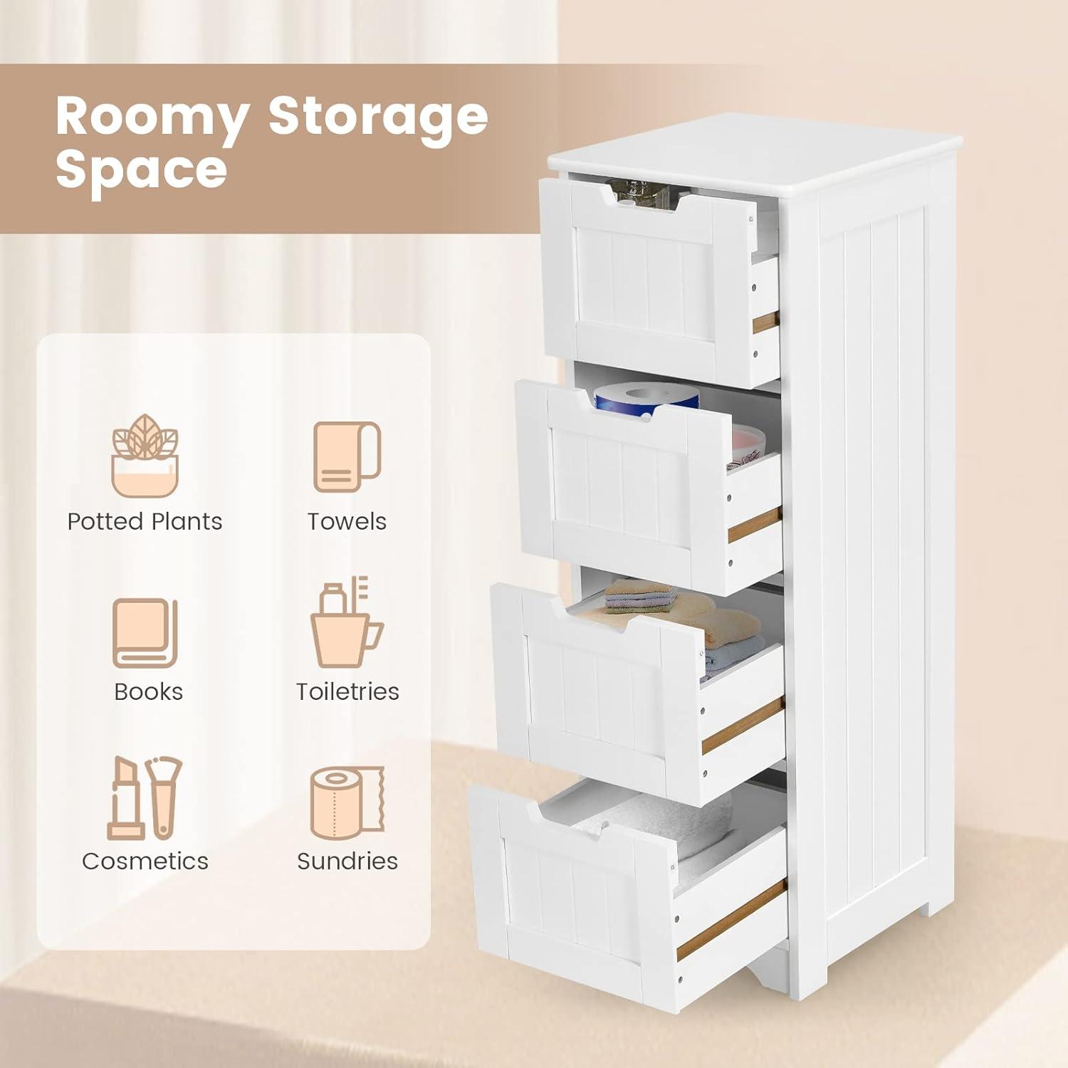 Ample Storage Space: With 4 large drawers, this freestanding storage cabinet offers plenty of space for books, towels, and other essentials. Perfect for organizing your private items. Each drawer measures 10″ x10.5″ x7″ (L x W x H) and supports up to 11 lbs.