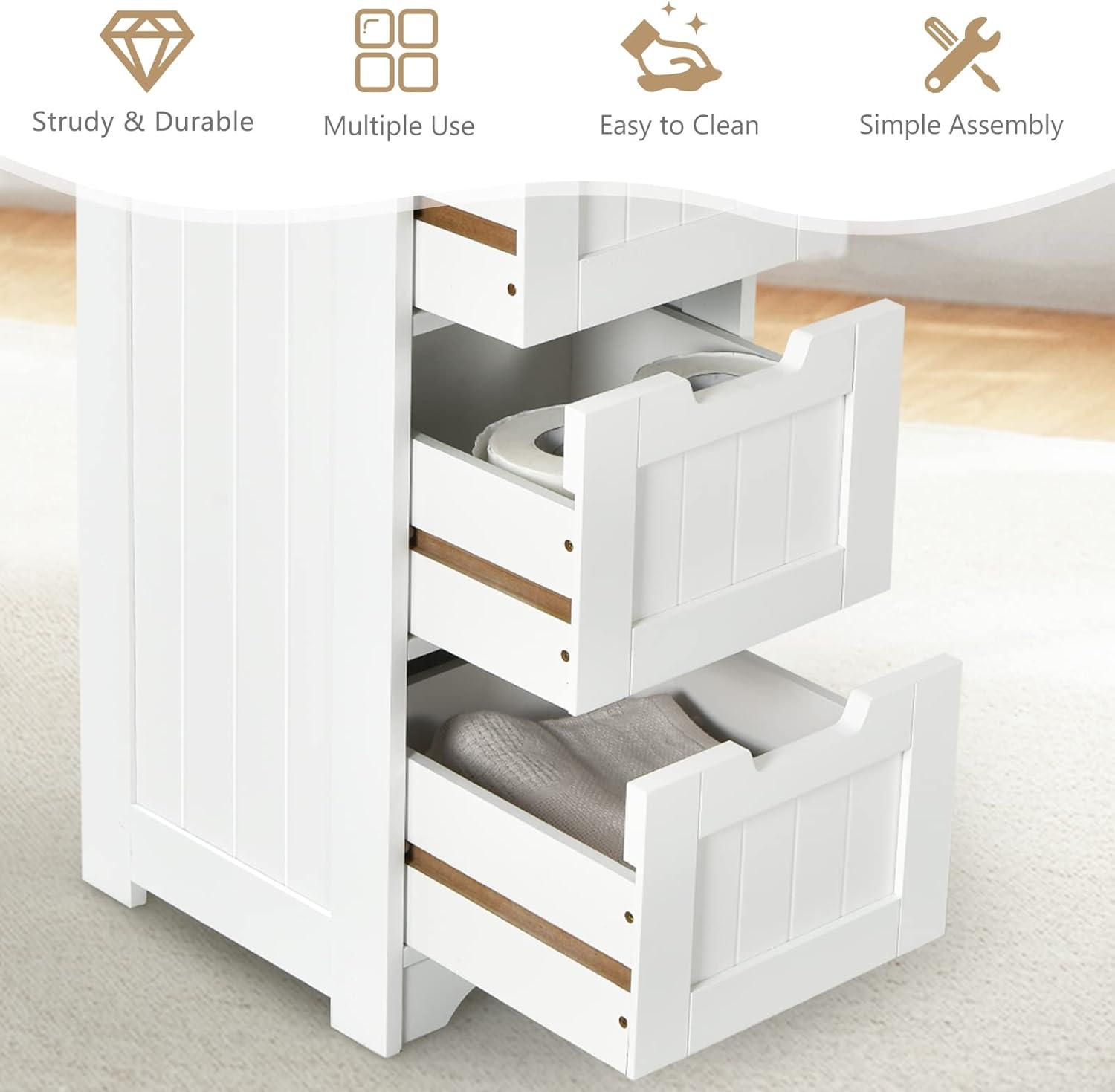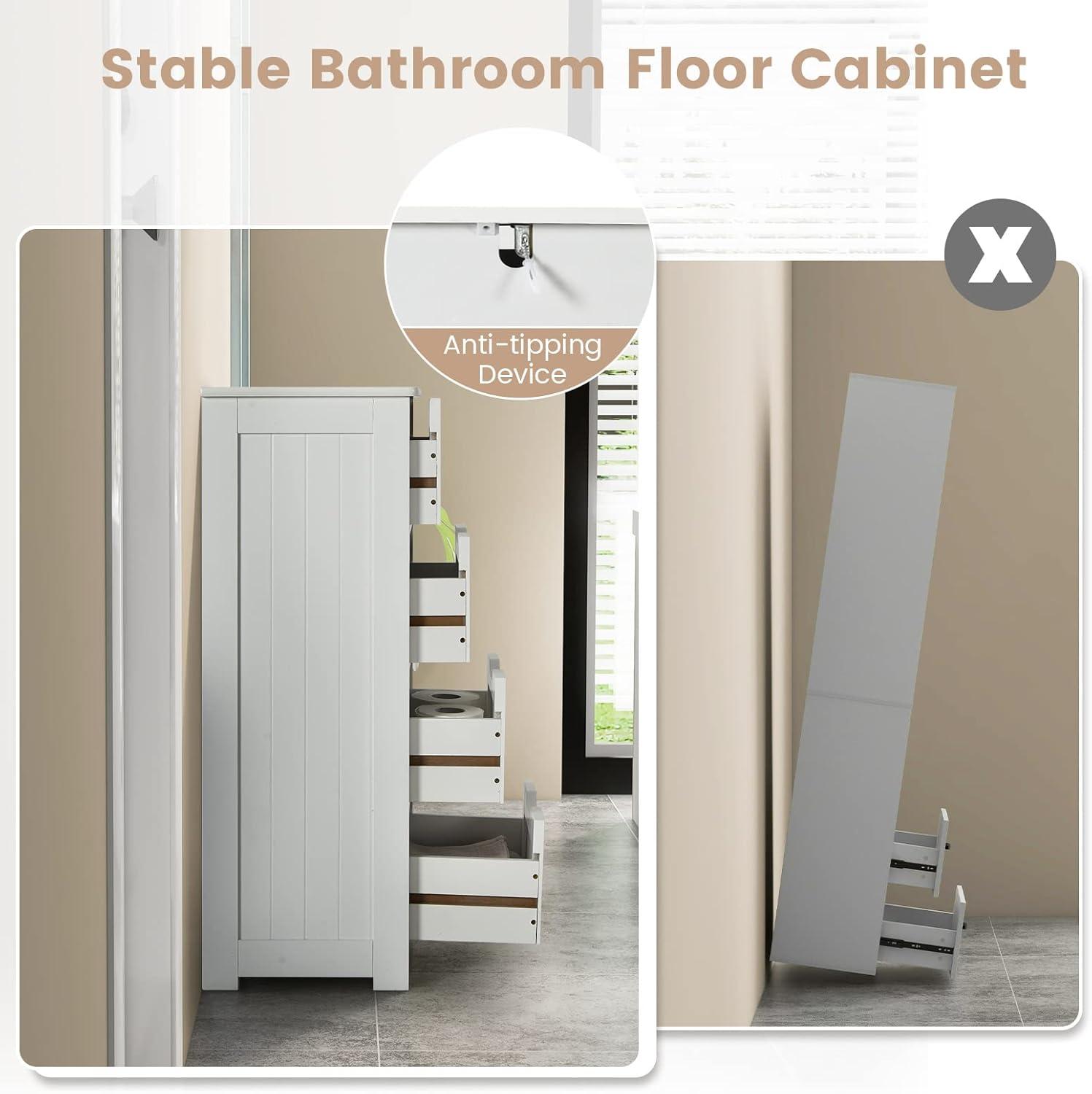 Premium MDF Material: Constructed with high-quality MDF board in a sturdy rectangular structure, our bathroom cabinet is built to last. It can support up to 110 lbs of top board weight. Additionally, it includes an anti-toppling device for added safety.