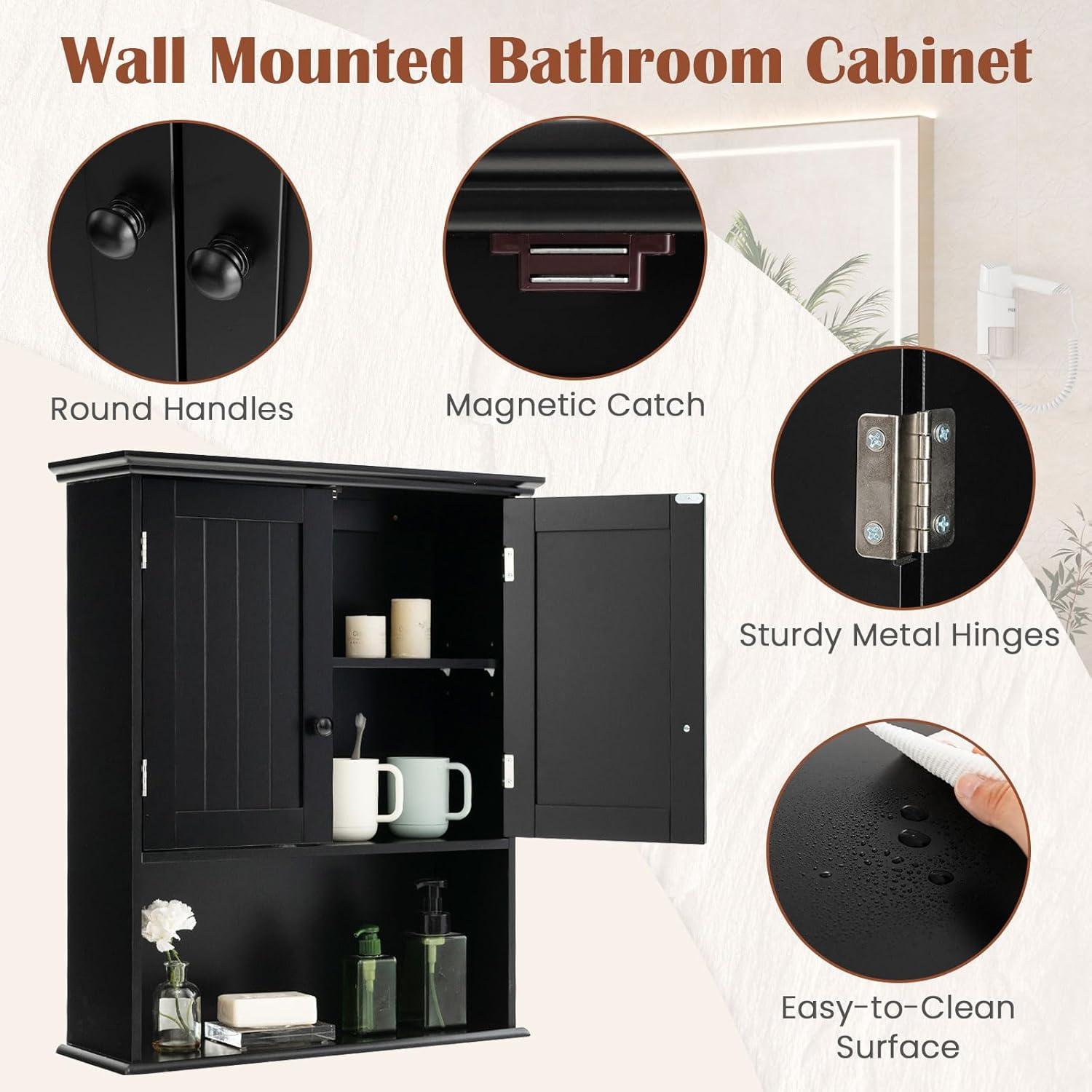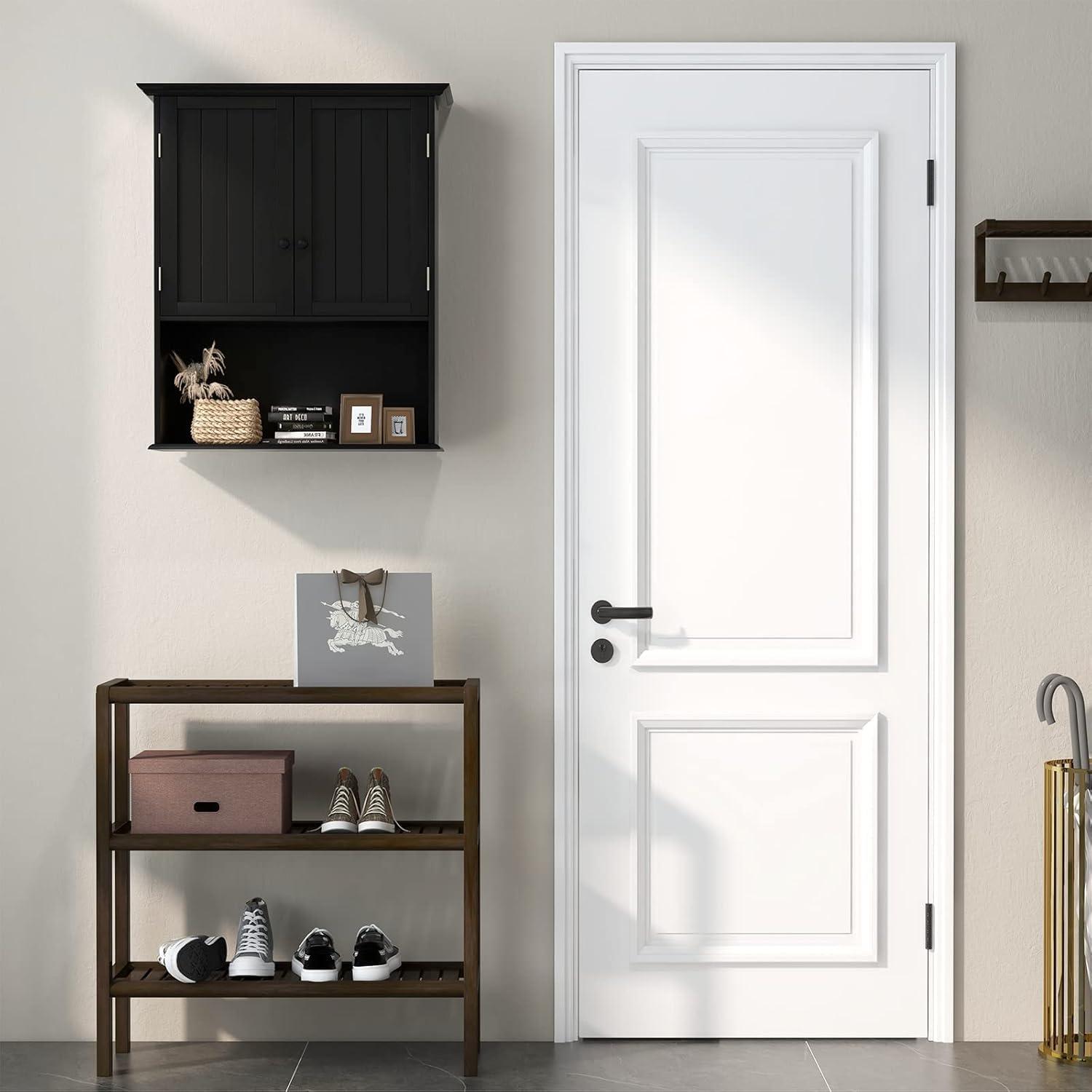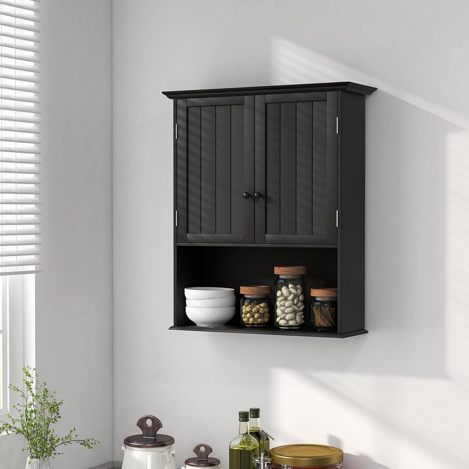 Bathroom Wall Cabinet, 2-Door Over The Toilet Cabinet with Adjustable Shelf & Open Storage Shelf, Wall Mounted Bathroom Cabinet, Hanging Medicine Cabinet for Living Room, Entryway (Espresso)(Black)