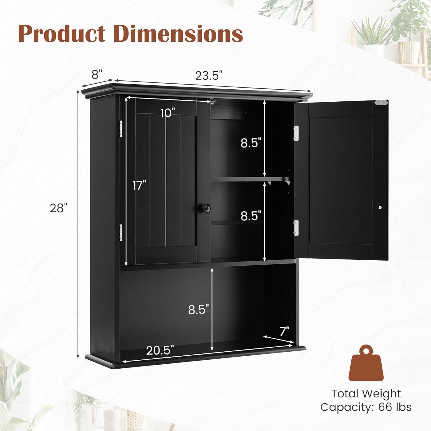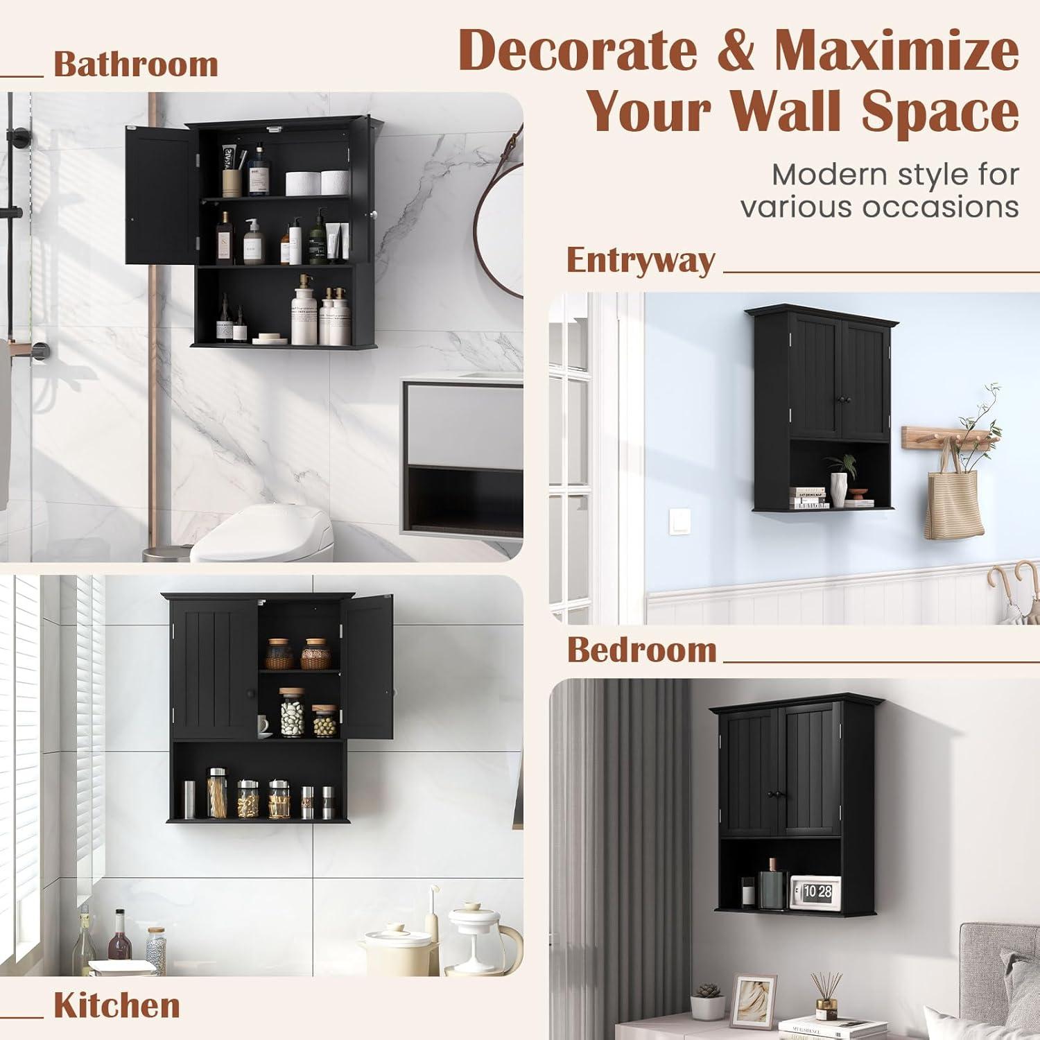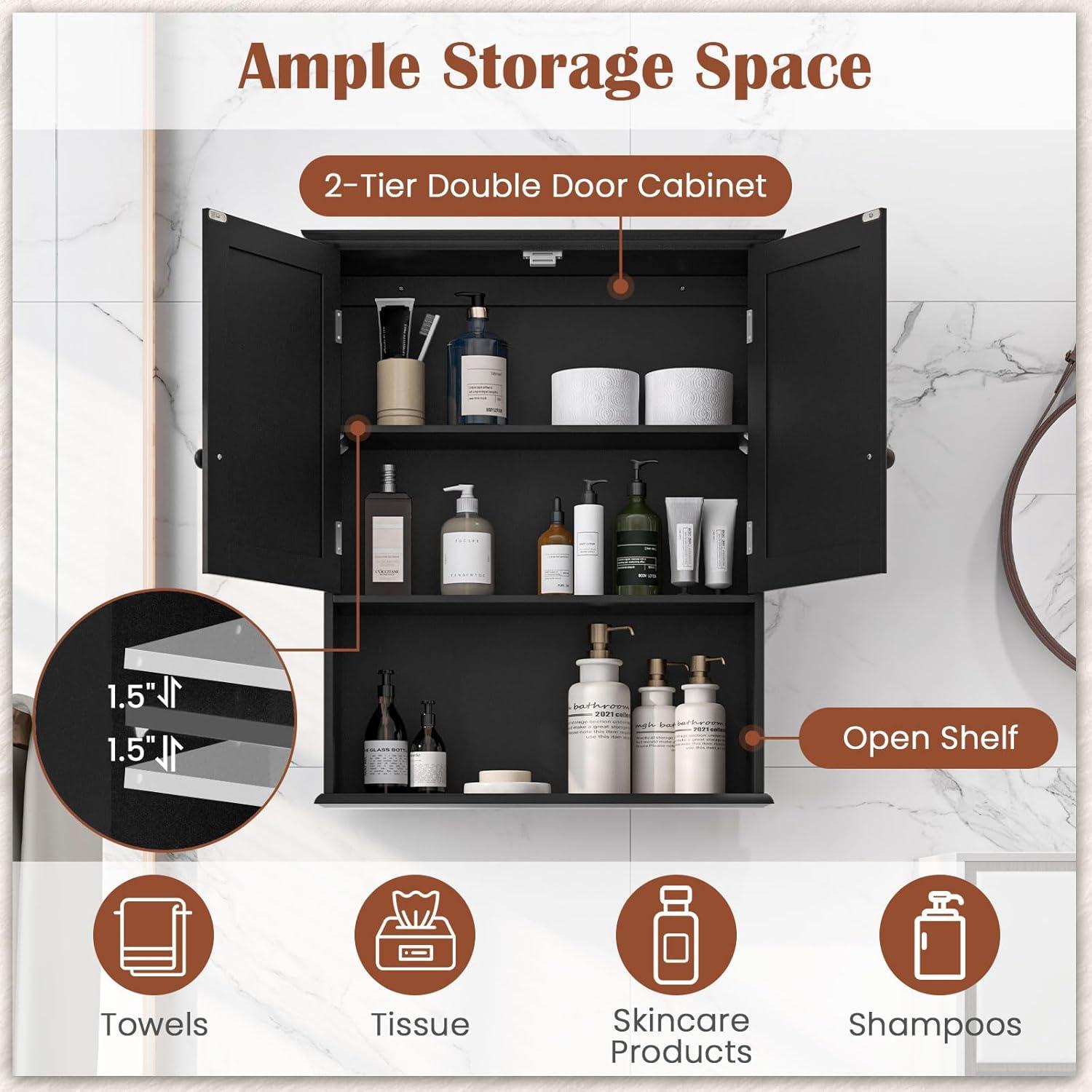 imageBathroom Wall Cabinet 2Door Over The Toilet Cabinet with Adjustable Shelf ampamp Open Storage Shelf Wall Mounted Bathroom Cabinet Hanging Medicine Cabinet for Living Room Entryway EspressoBlack