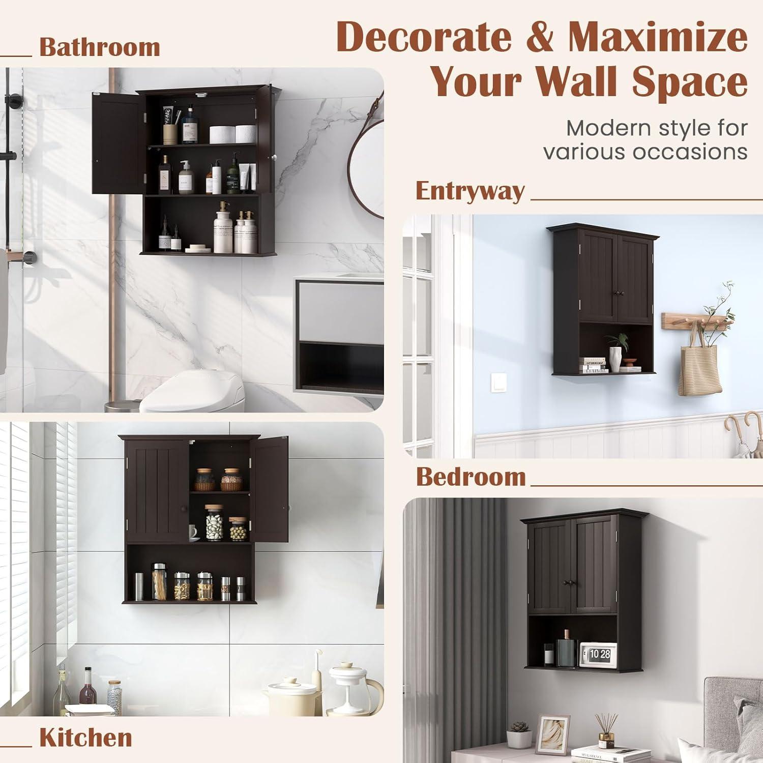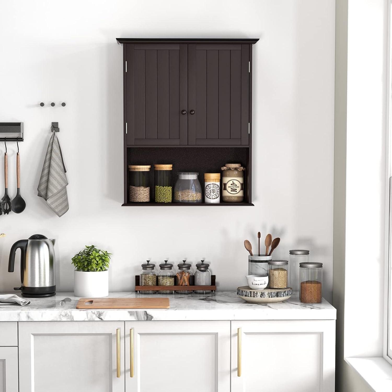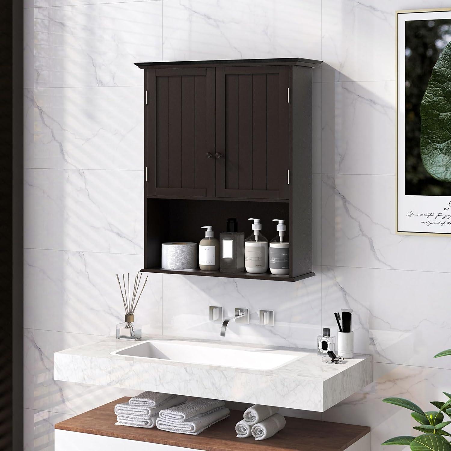 Bathroom Wall Cabinet, 2-Door Over The Toilet Cabinet with Adjustable Shelf & Open Storage Shelf, Wall Mounted Bathroom Cabinet, Hanging Medicine Cabinet for Living Room, Entryway (Espresso)(Espresso)