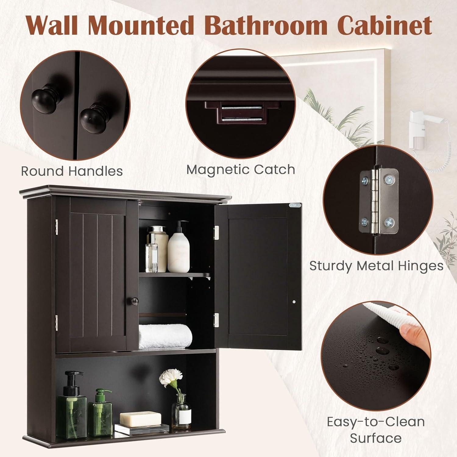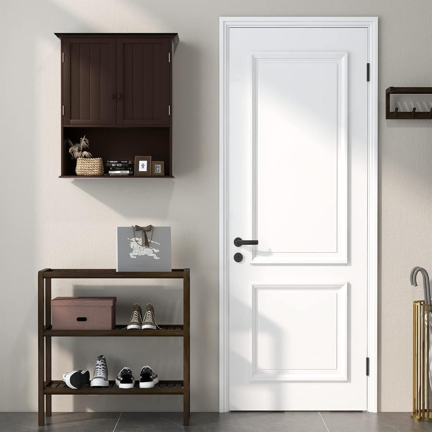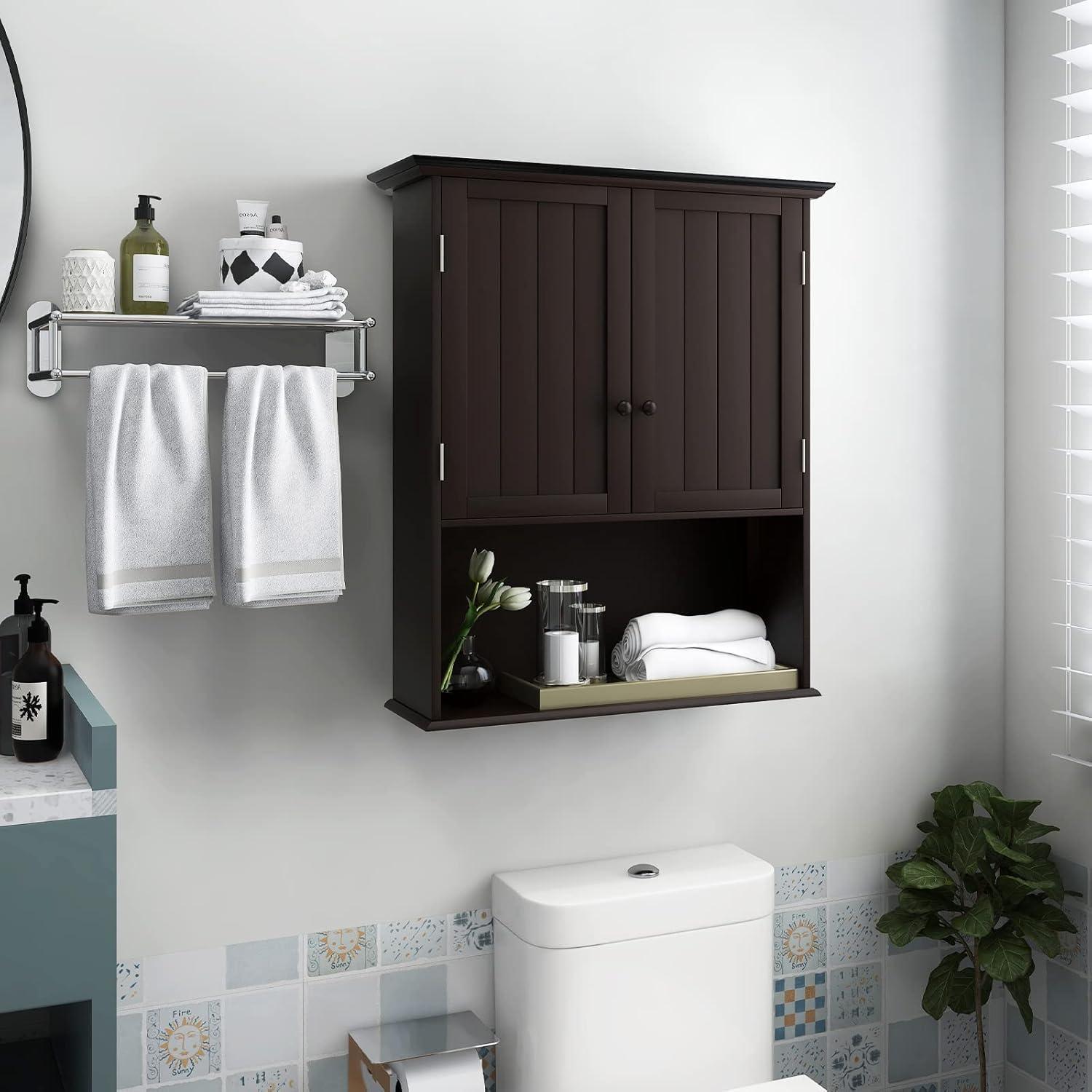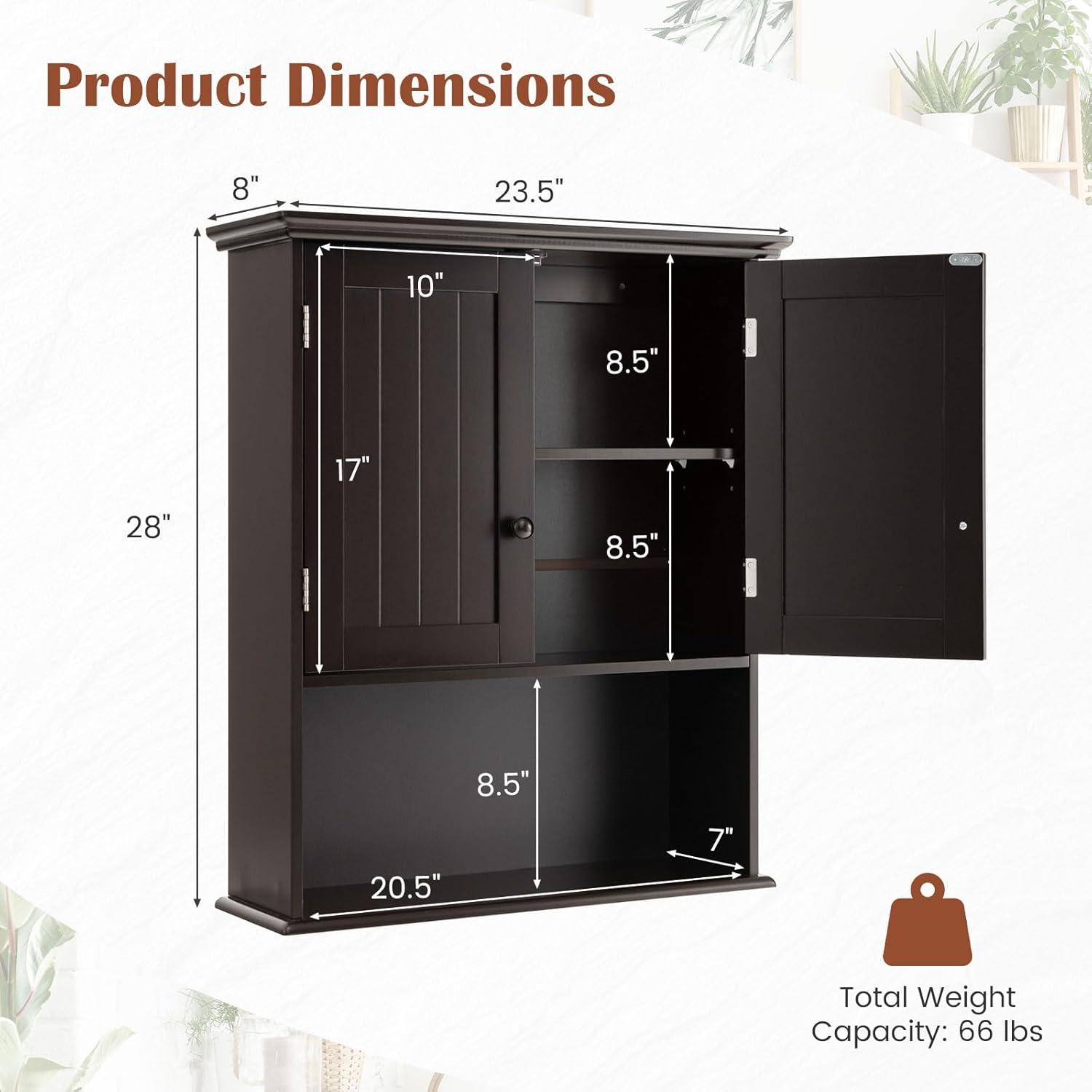 Bathroom Wall Cabinet, 2-Door Over The Toilet Cabinet with Adjustable Shelf & Open Storage Shelf, Wall Mounted Bathroom Cabinet, Hanging Medicine Cabinet for Living Room, Entryway (Espresso)(Espresso)