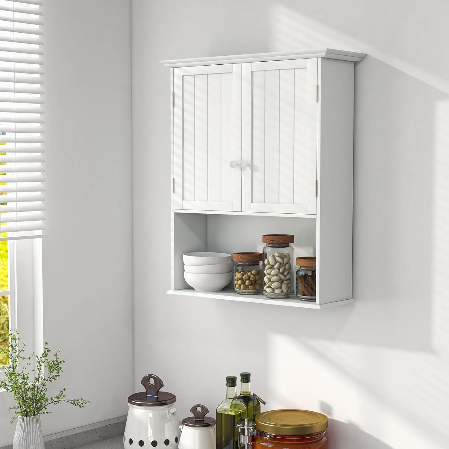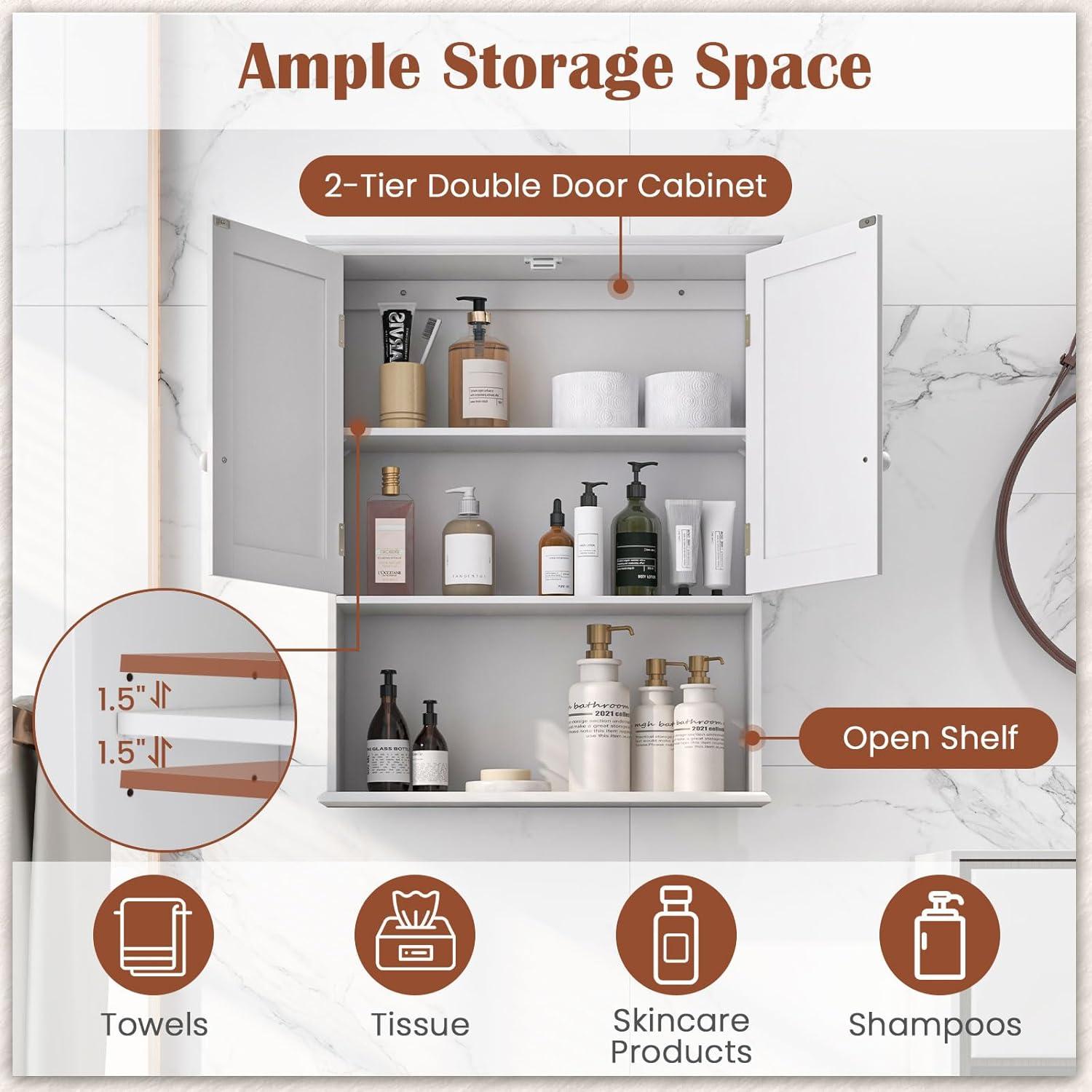 Bathroom Wall Cabinet, 2-Door Over The Toilet Cabinet with Adjustable Shelf & Open Storage Shelf, Wall Mounted Bathroom Cabinet, Hanging Medicine Cabinet for Living Room, Entryway (Espresso)(White)