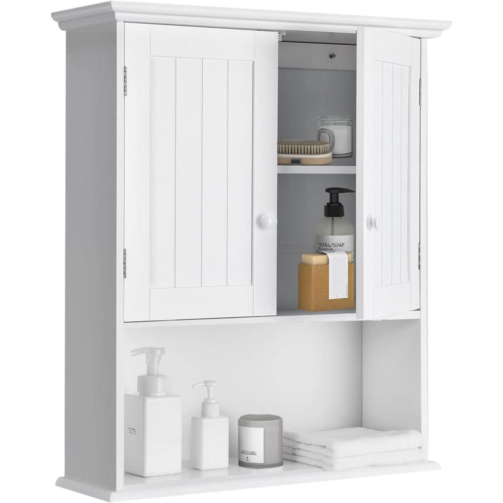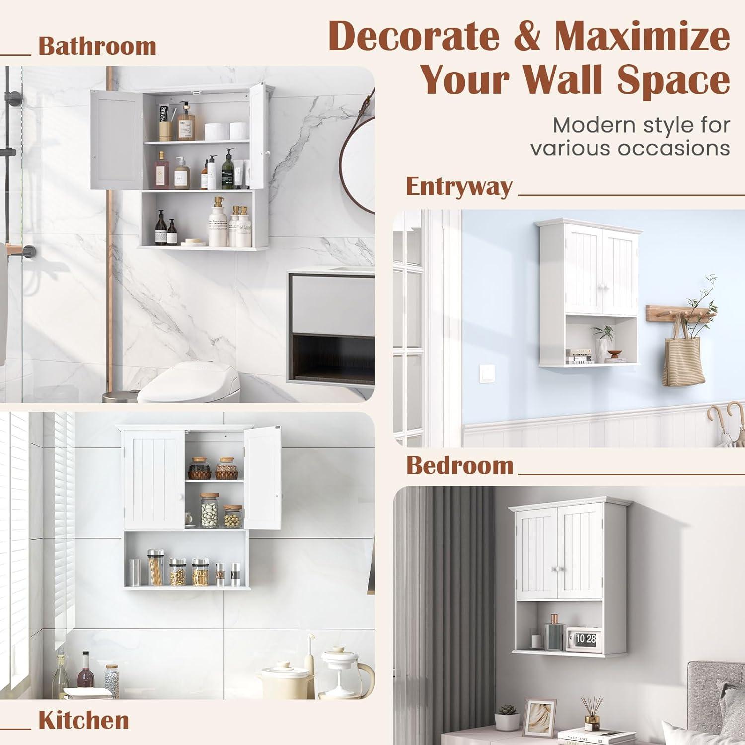 imageBathroom Wall Cabinet 2Door Over The Toilet Cabinet with Adjustable Shelf ampamp Open Storage Shelf Wall Mounted Bathroom Cabinet Hanging Medicine Cabinet for Living Room Entryway EspressoWhite