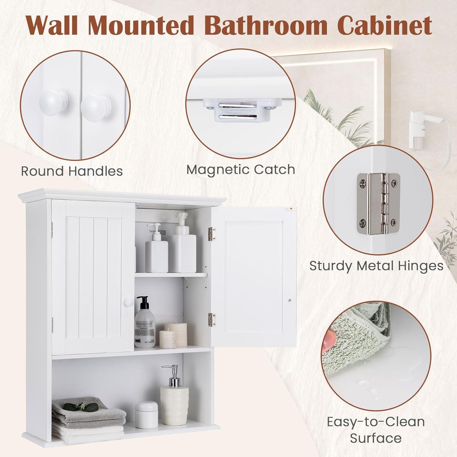 Our bathroom wall cabinet features 2 doors, along with 3-level adjustable positions for you to customize the inner storage space, which is available to store towels, tissue, shampoos, skincare products and more. The hanging design makes rational use of wall space, you only need to install the compact cabinet on the wall with back 2 holes.