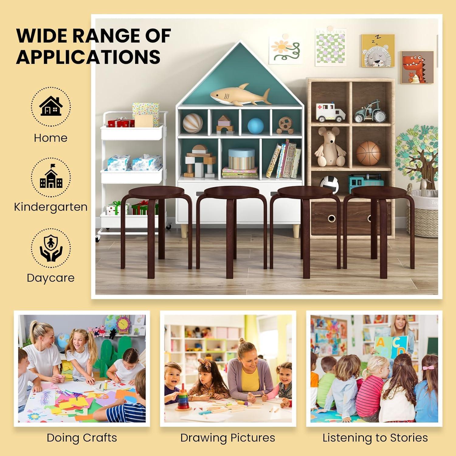 Crafted from high-quality solid birch wood and finished with sustainably sourced paint, these stools for classroom elementary offer a perfect blend of longevity and safety. The X-shaped structure with robust metal screws provides exceptional stability, supporting up to 330 lbs. The smooth surface ensures easy cleaning and prevents scratches, making these chairs a practical choice for any setting. Their stackable design allows for convenient storage, saving valuable space when not in use. Ideal for kitchens, breakfast tables, classrooms, or offices, these round stools are a versatile addition to any room.