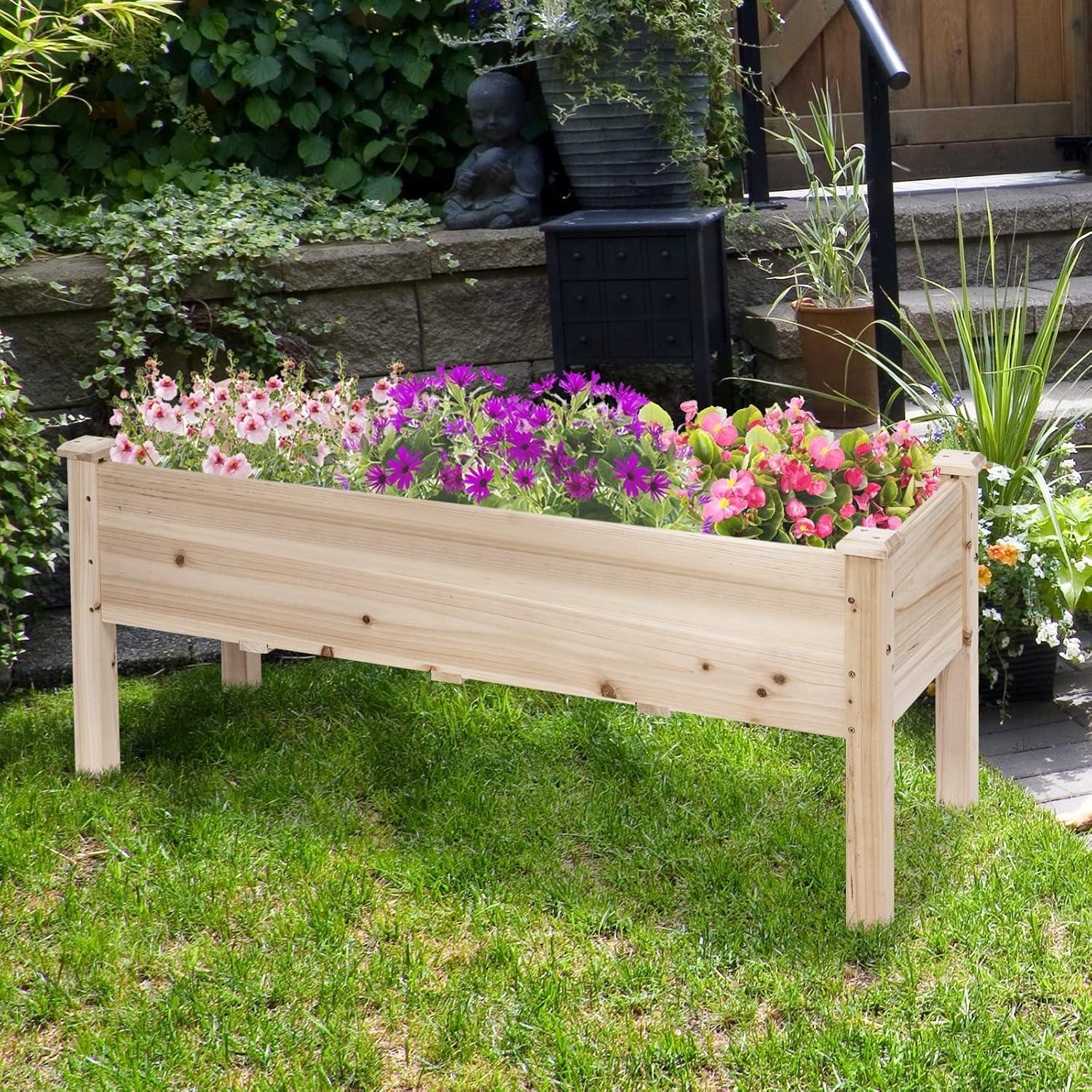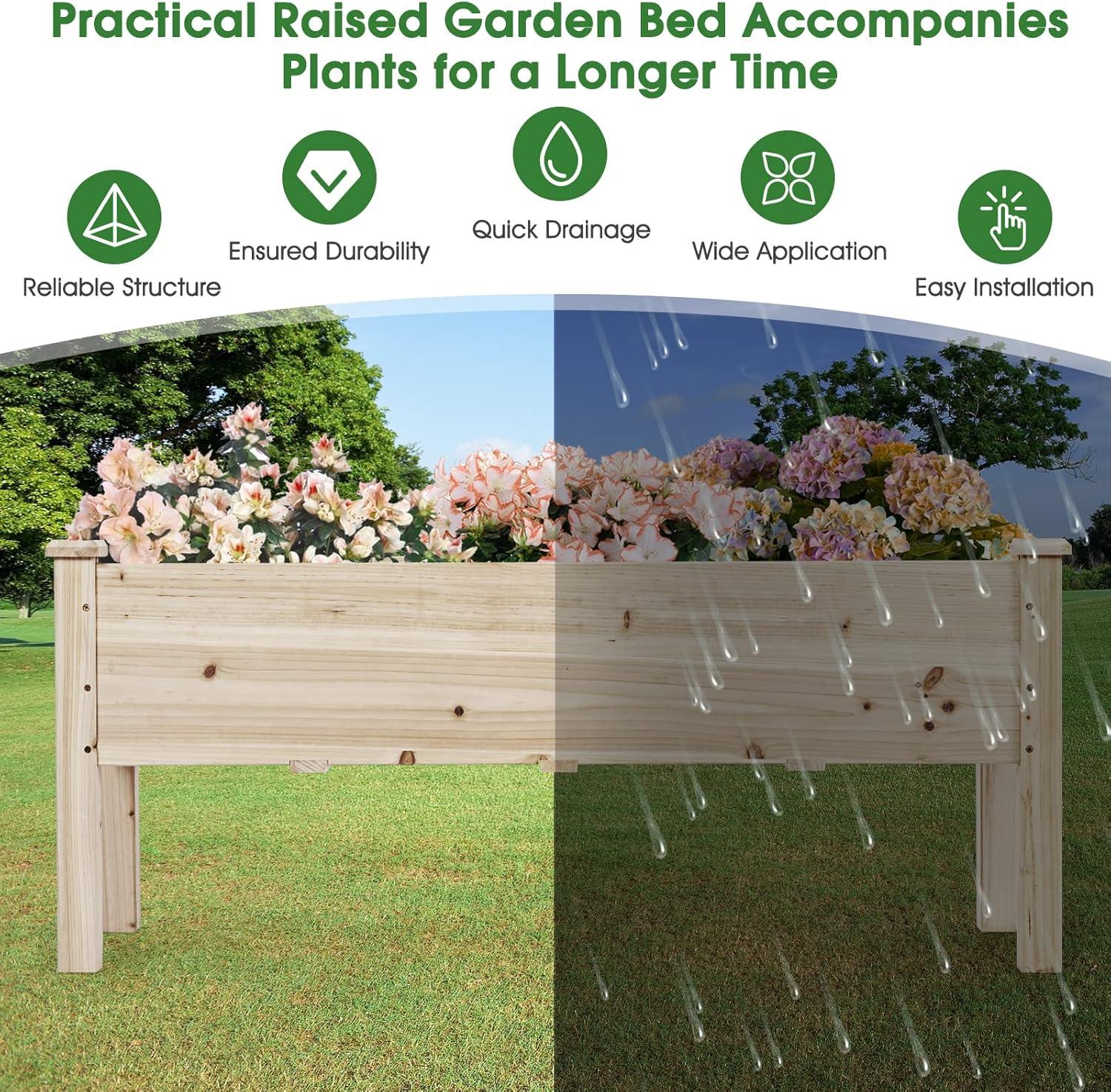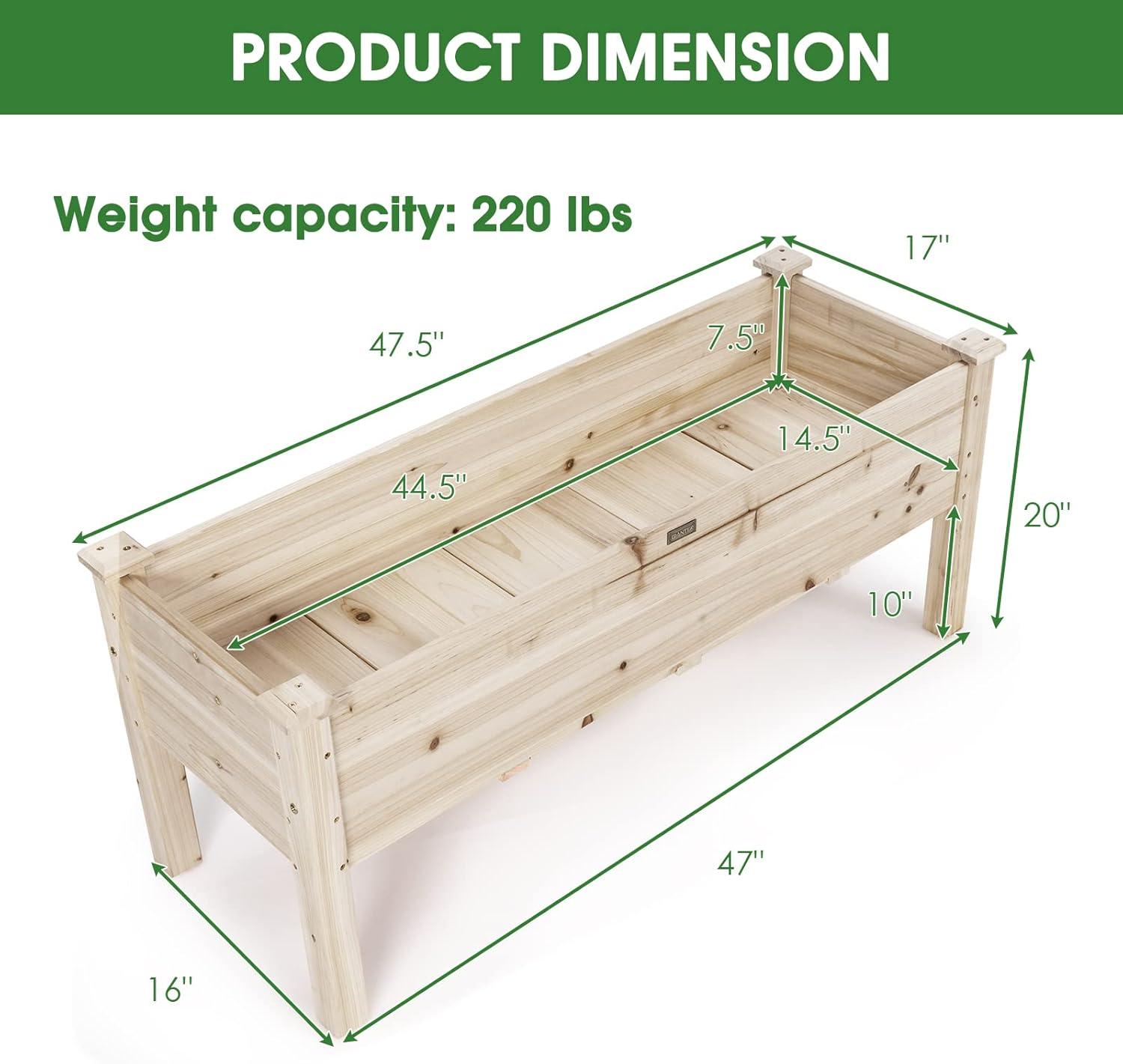 Built from premium natural fir wood, this garden beds outdoor combines durability with timeless aesthetics. Its sturdy construction supports up to 220 pounds, while the smooth, polished surfaces ensure safety and a refined look. Easy to assemble and versatile in placement, this garden planter box is an ideal addition to patios, balconies, or backyard spaces, inviting you to create a thriving green oasis.