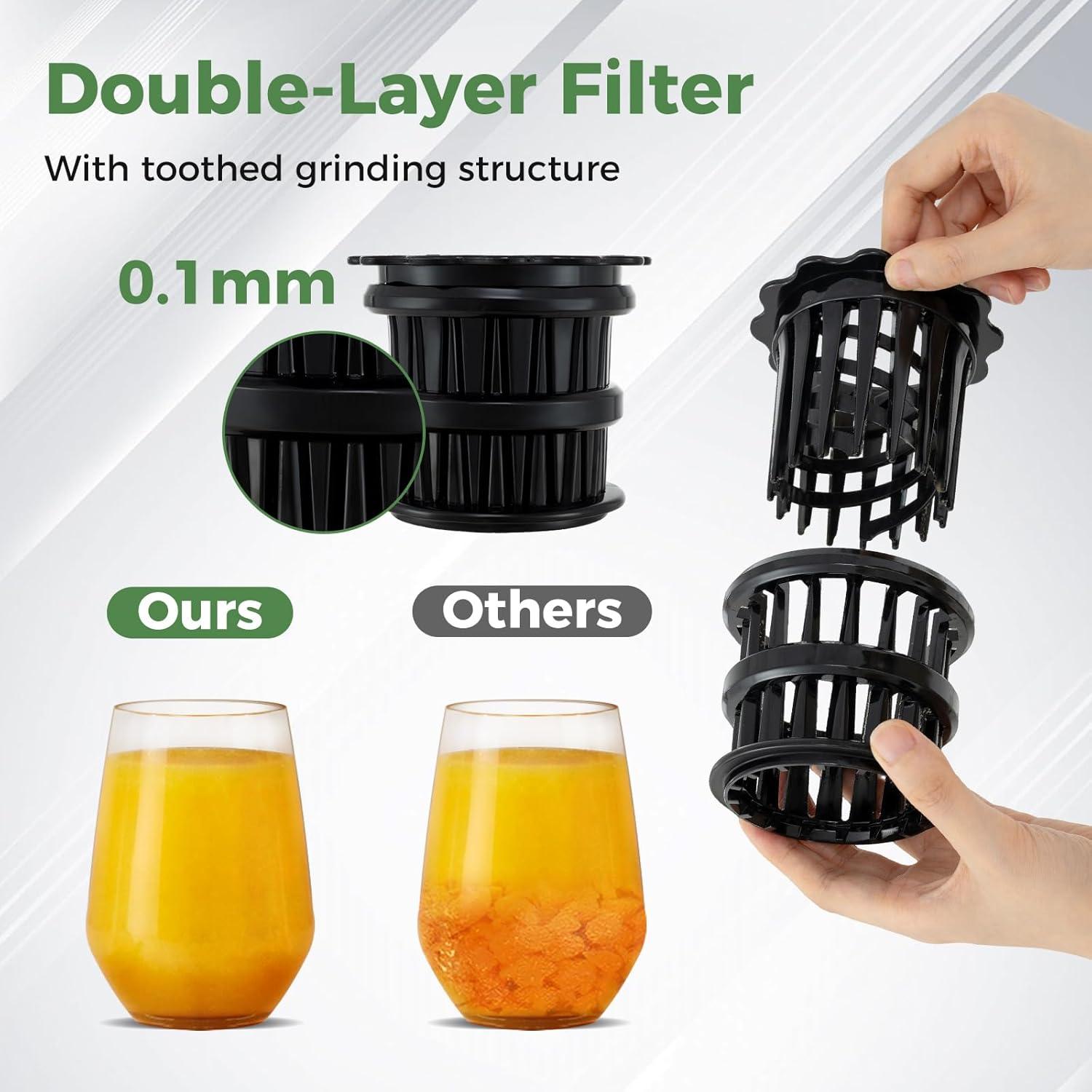 Double-layer filter with 0.1 mm clearance for smoother juice
