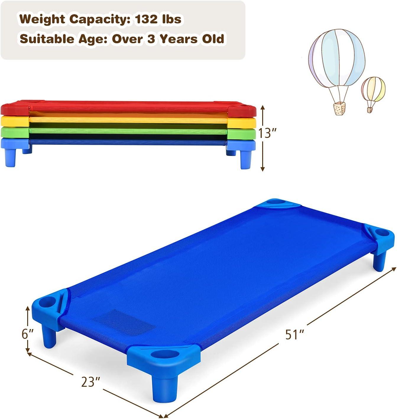 This daybed is specially designed for babies and is made of high quality 300D Oxford fabric, which is wear-resistant, durable, breathable and soft to the touch, wrapping around the baby as if it were a cloud, giving them an unparalleled comfortable sleeping experience. The frame is made of sturdy and durable metal, with a load-bearing capacity of up to 130 pounds. The unique stackable design is the savior of small space, multiple daycare beds can be easily stacked for storage, which saves space and is easy for families to store and move. The preschool bed is designed with user convenience in mind, and can be assembled in minutes with just a few simple steps without screws or tools, which greatly saves installation time and makes maintenance easier. In addition, this children's bed is not only suitable for home daycare centers, but can also be perfectly integrated into the living room, bedroom, balcony and other scenes in the home.