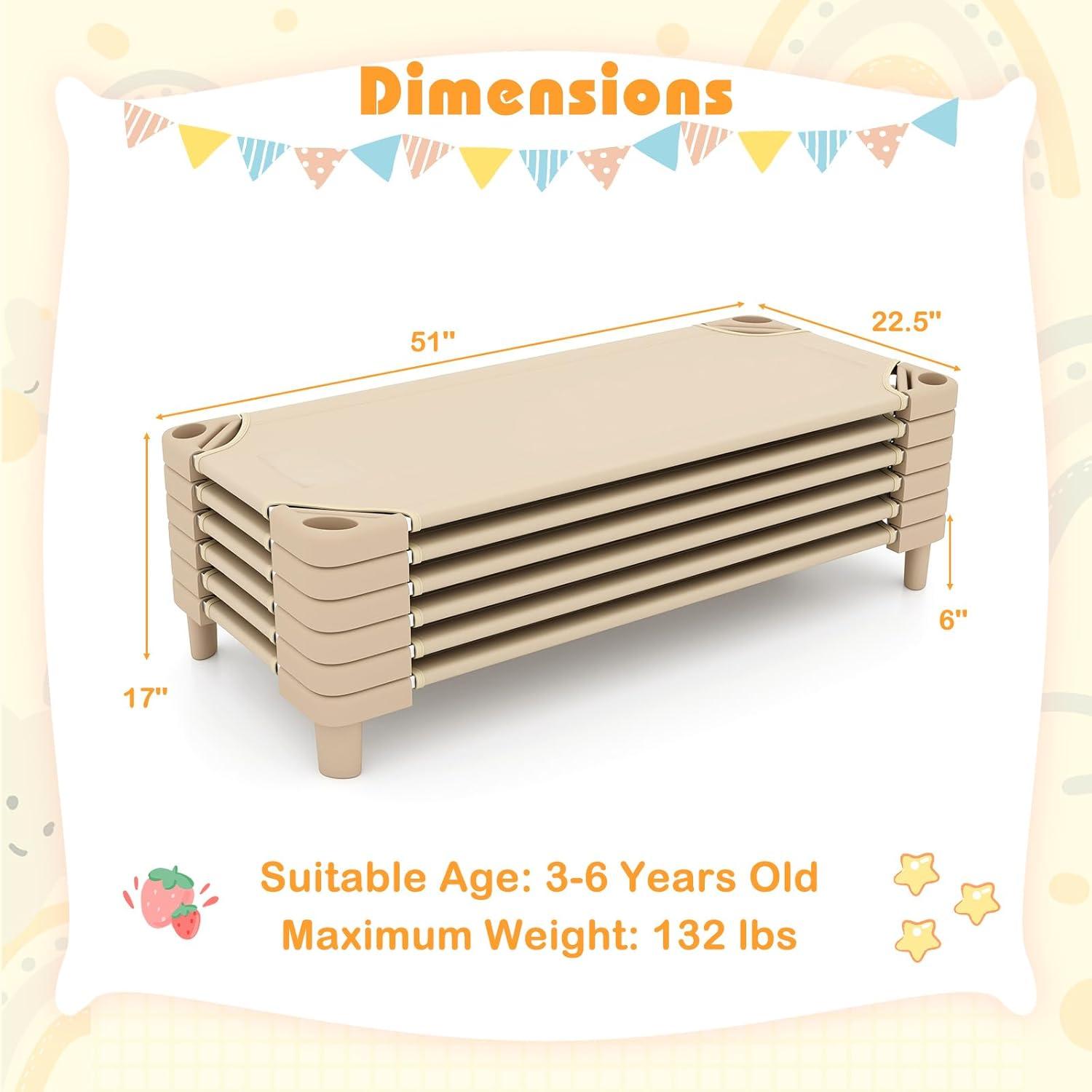 Dimension of 6 Stacked Cots: 51″ x 22.5″ x 17″ (L x W x H)