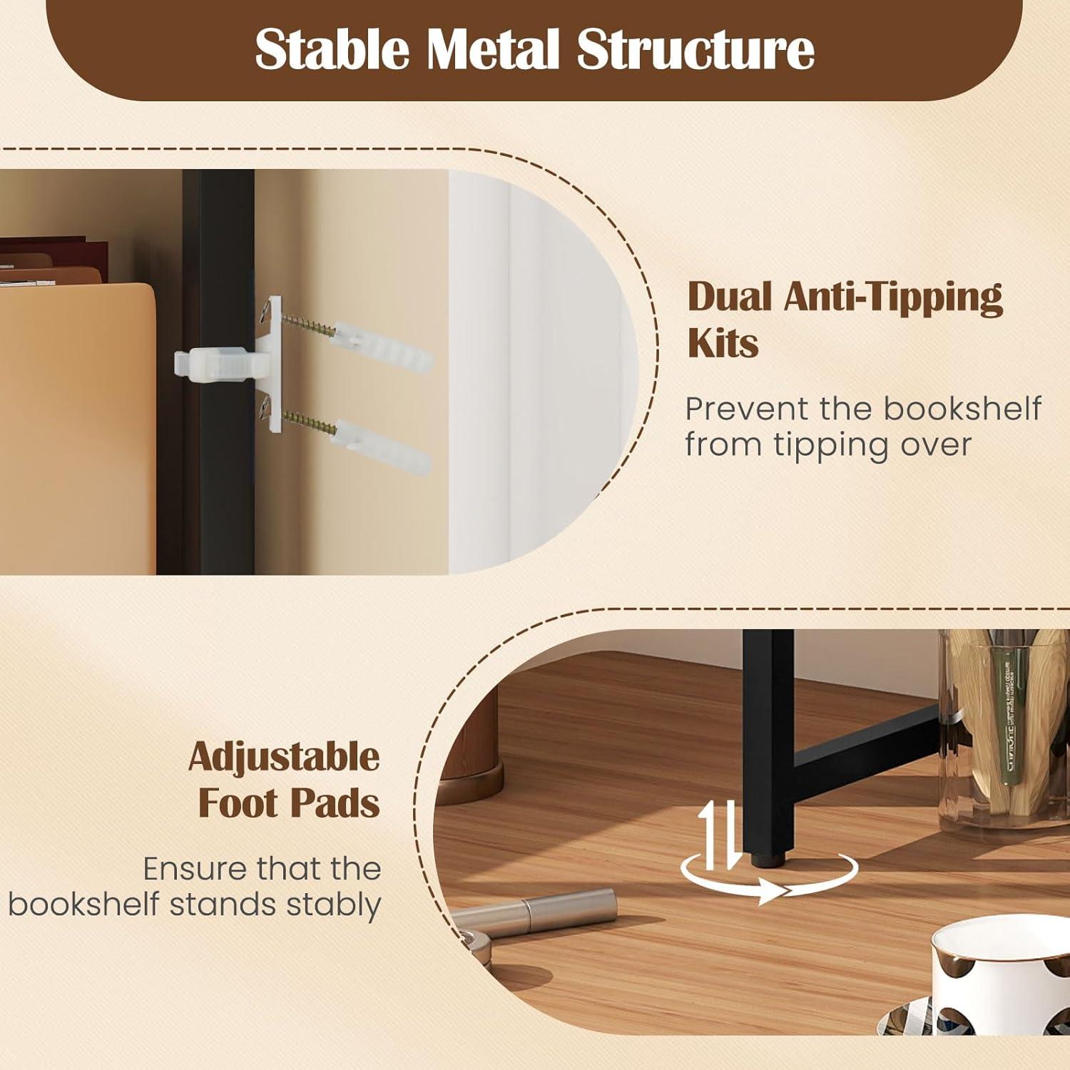 Sleek Aesthetic: The wood-grain laminate shelves paired with matte black metal frame offer modern versatility for any space. Blending premium functionality with minimalist style, it effortlessly elevates your decoration-from contemporary home offices to compact college dorm rooms.