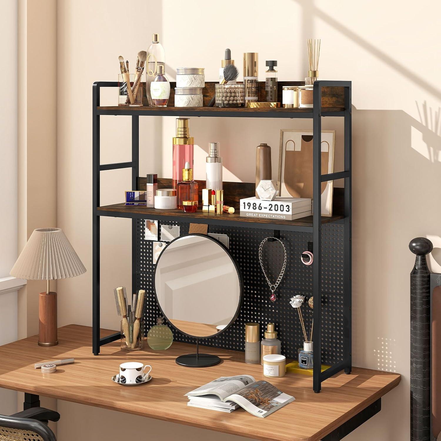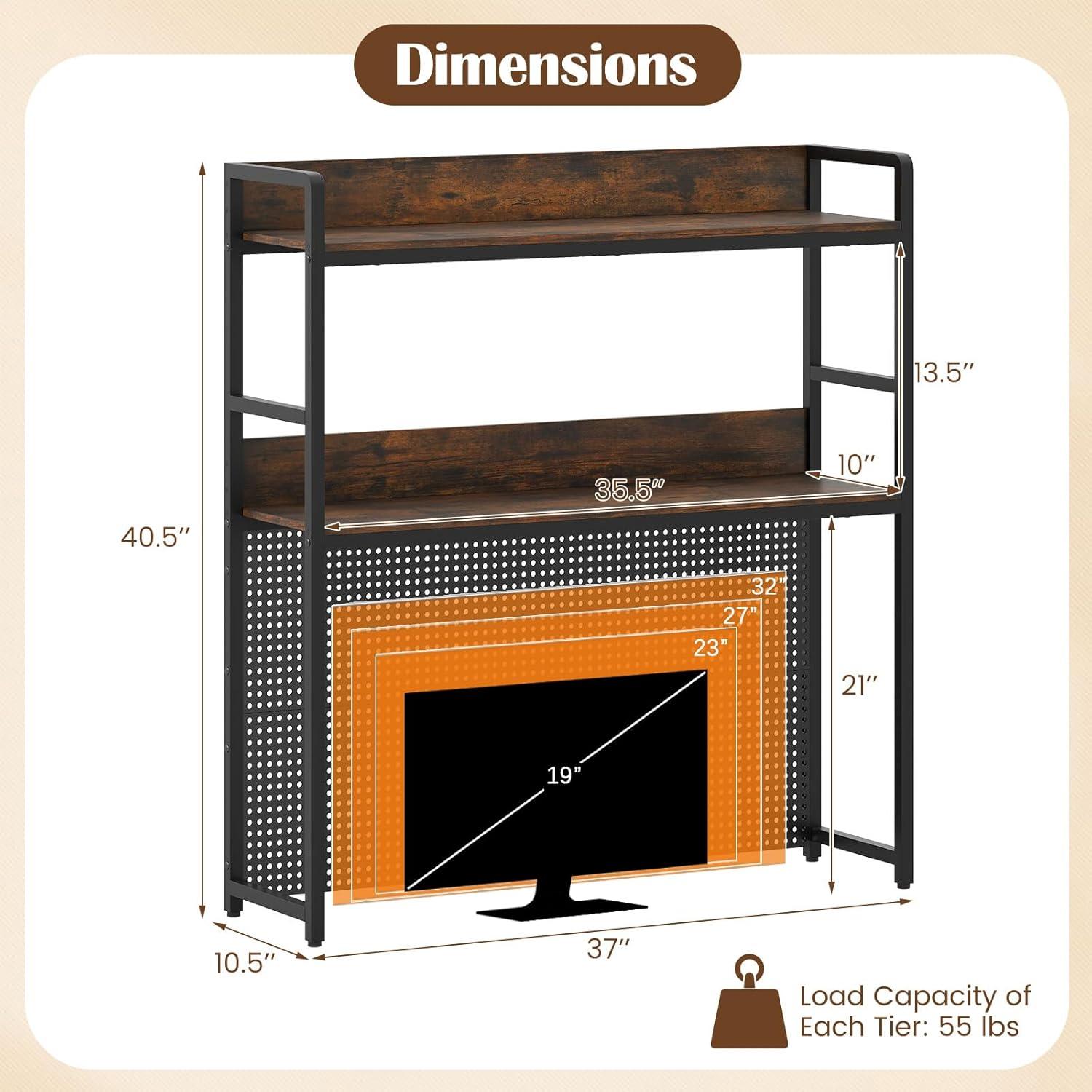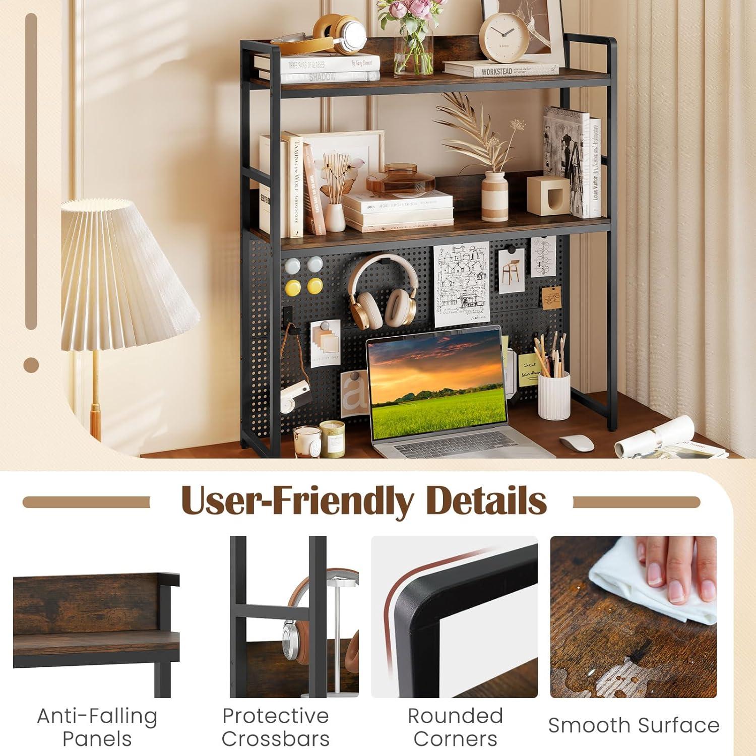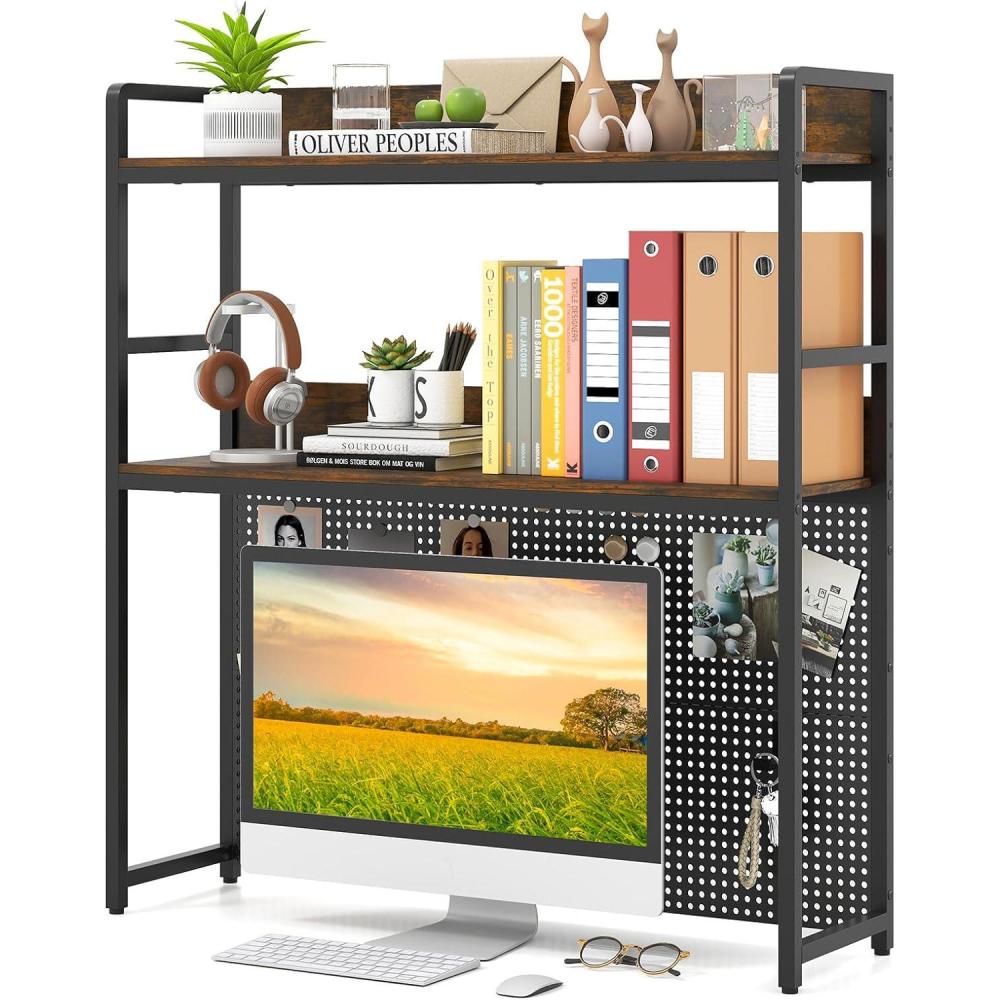 2-in-1 Storage System: Unlike other hutch for desk, it features 2 spacious shelves (35.5″ x 10″) and a pegboard back panel for full customization. Easily hang keyboards, headphones, keys, or even small plants (hooks not included) to create a storage solution that's both functional and uniquely yours.