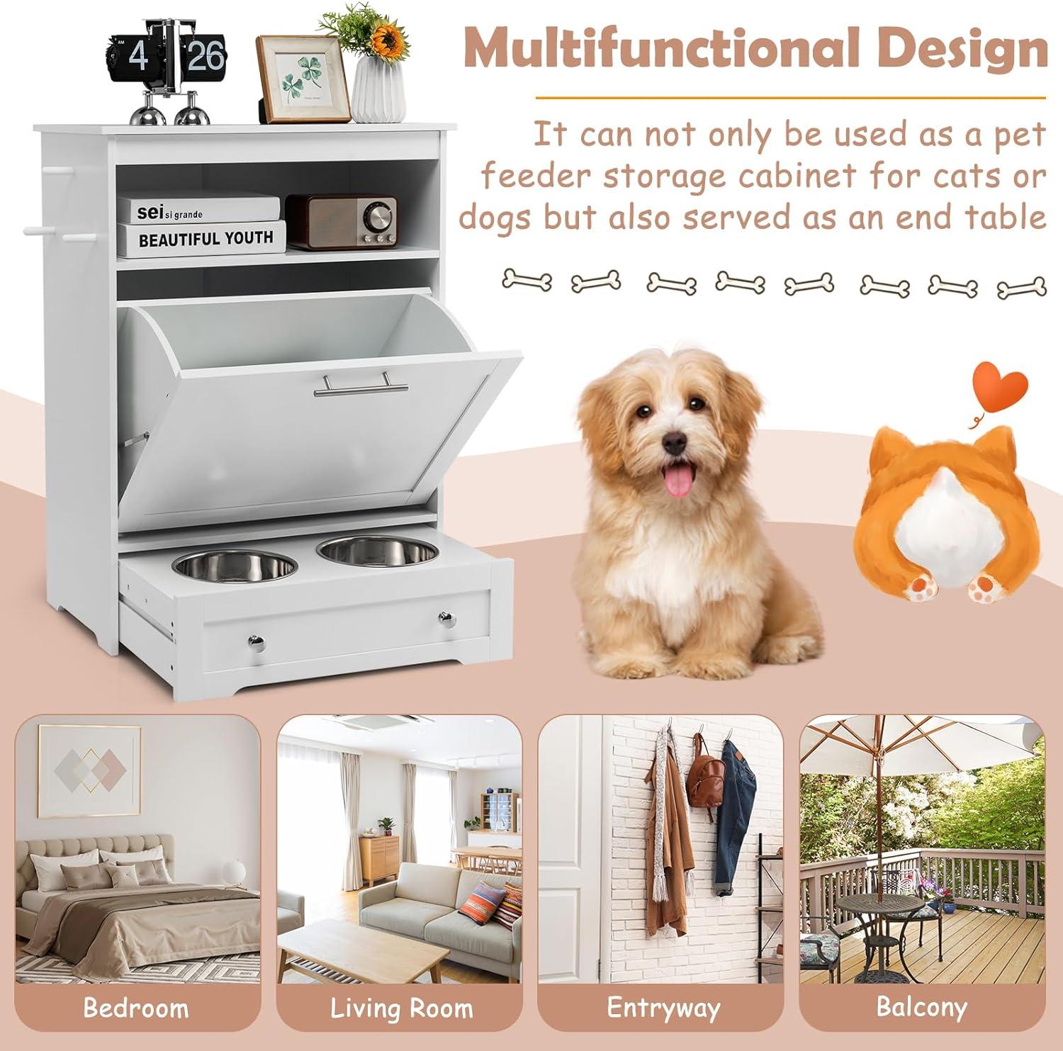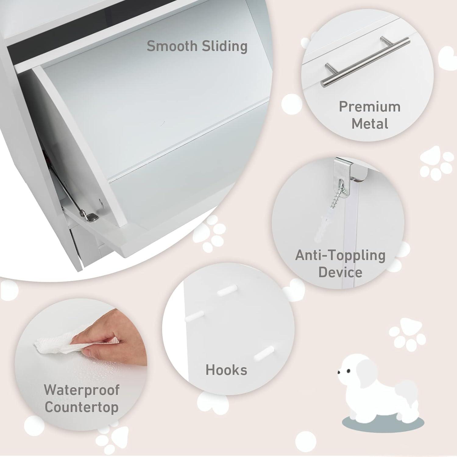 Enhanced Stability: Equipped with anti-toppling devices, our dog food storage cabinet can be fixed to the wall for extra safety and stability. Your beloved pet friends can enjoy a leisurely dinning time next to the multi-functional pet feeder station.