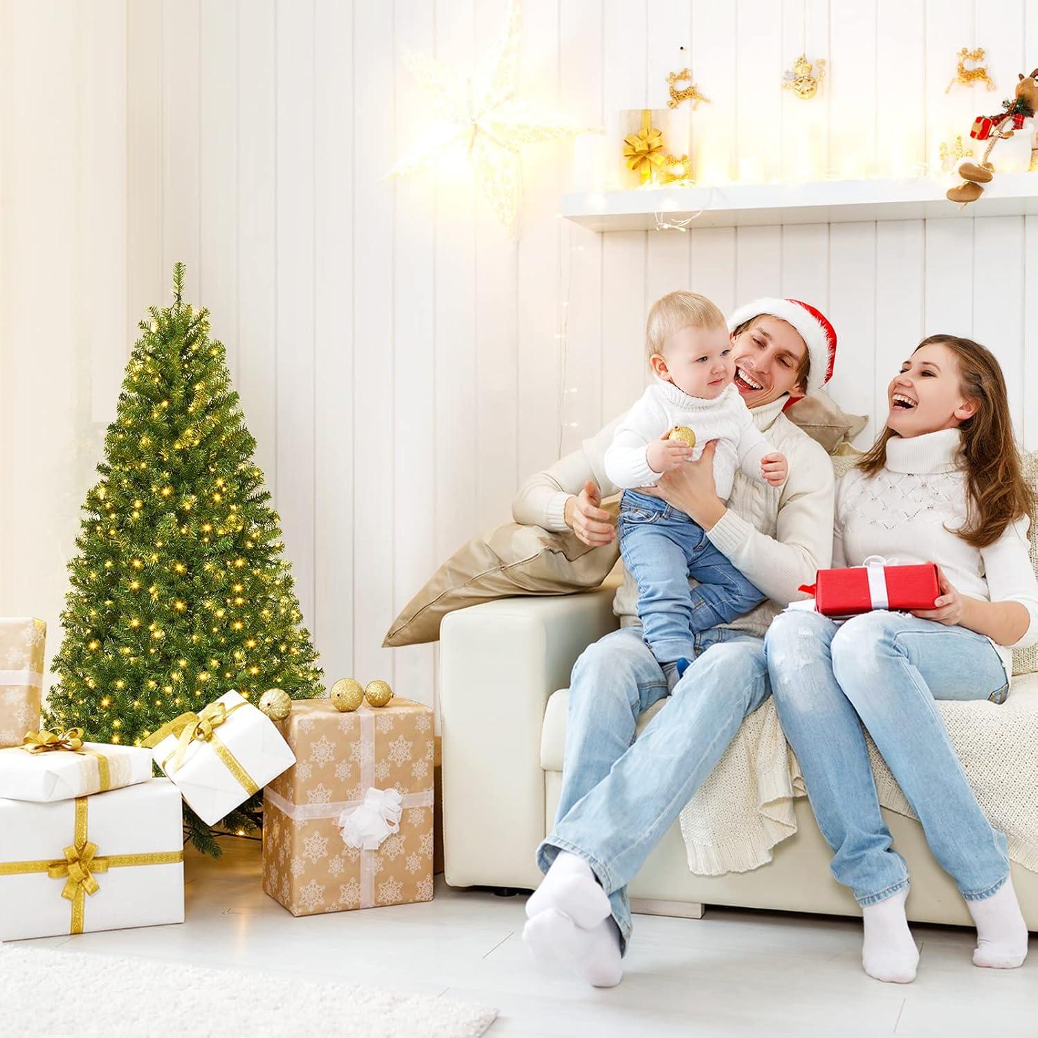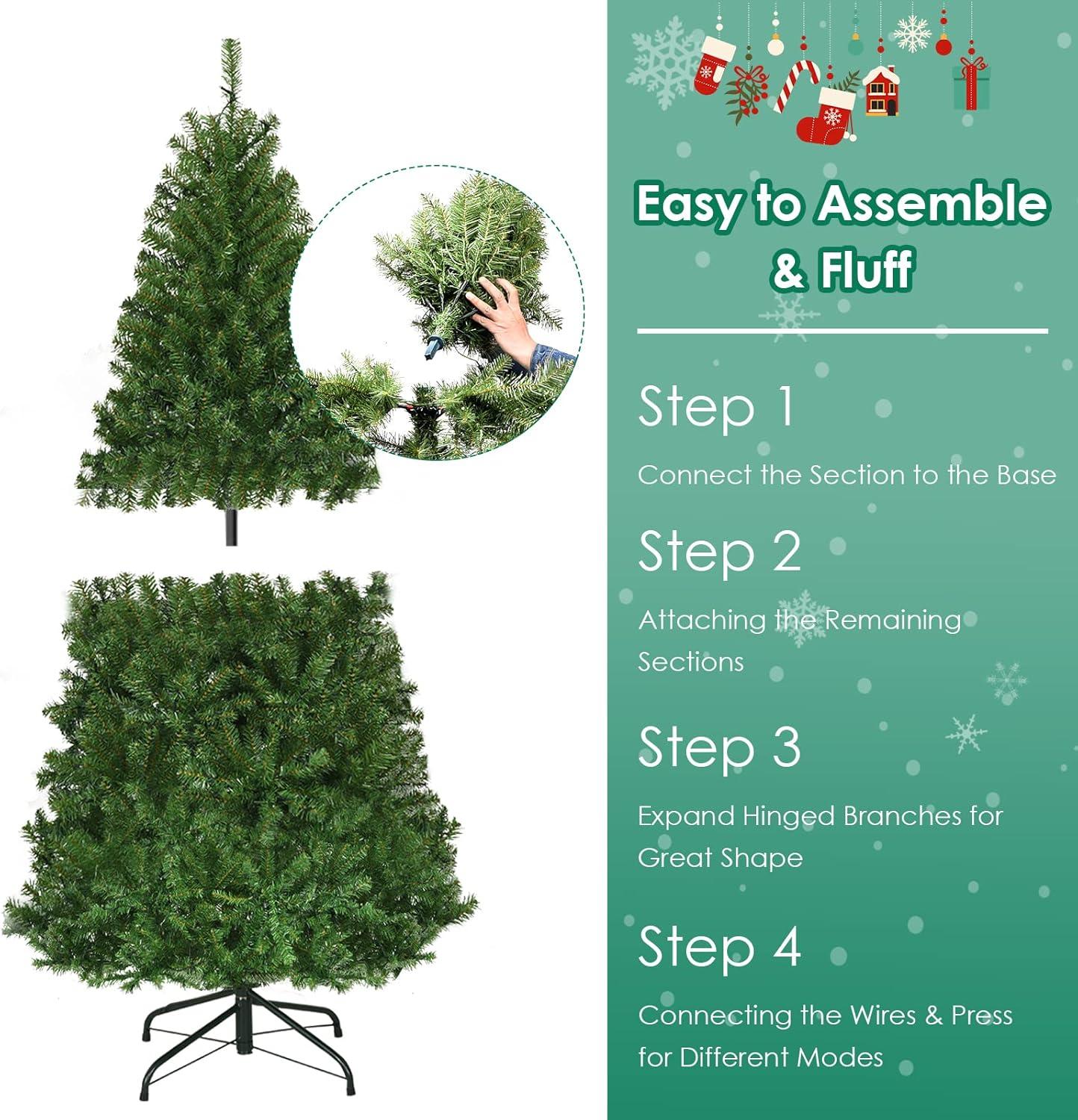 Versatile Lighting for Festive Ambiance: This pre-lit artificial Christmas tree features 150 LED lights in four vibrant colors. The included controller offers 11 dazzling light sequences, creating a magical atmosphere. With 600 lifelike PVC branch tips, the tree provides a full and lush look for your cherished ornaments