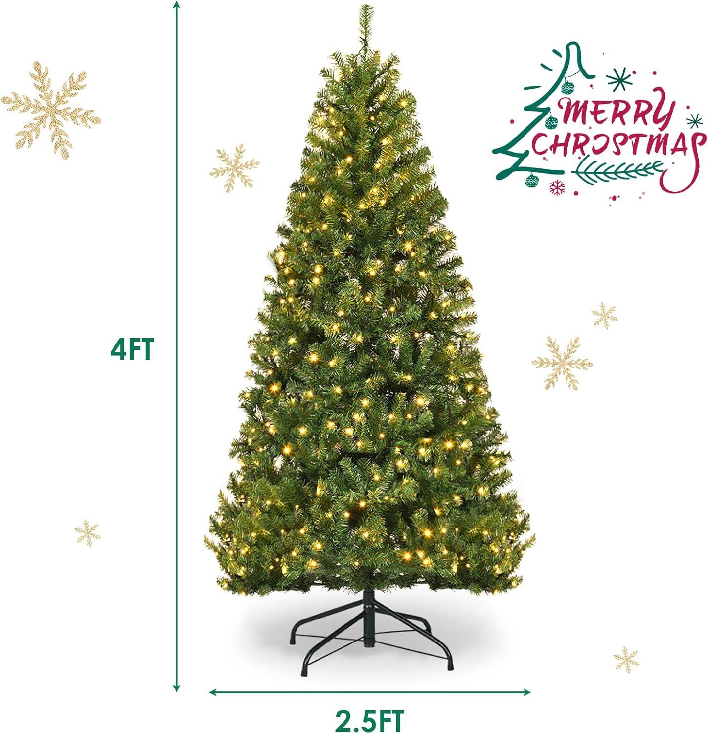Dual Color Change 5 FT Pre-Lit Artificial Christmas Tree, 150 LED Lights, 600 PVC Branch Tips, Metal Stand, 11 Color Modes, Fire-Resistant Hinged Xmas Tree for Home Holiday Party(4ft)