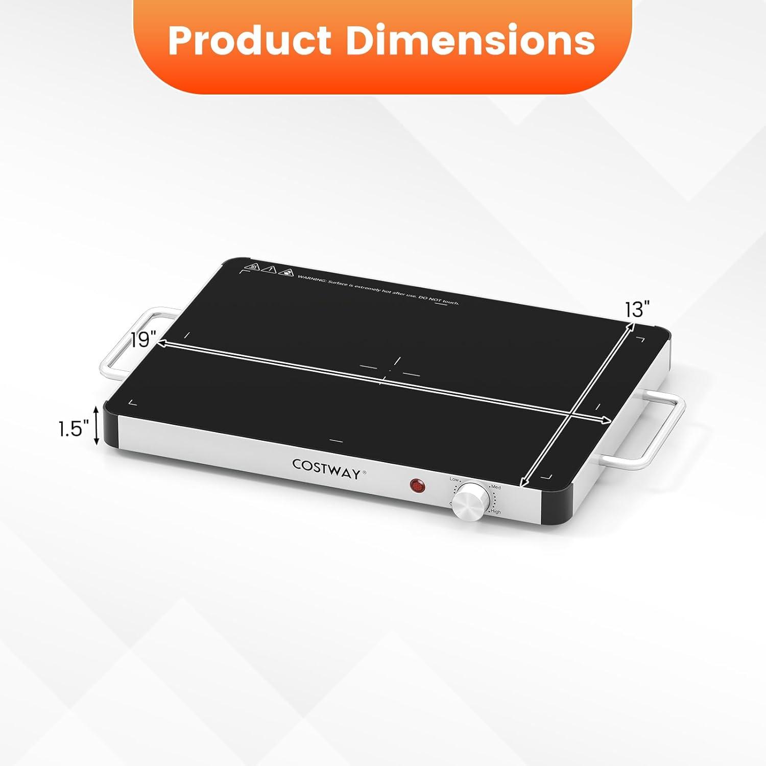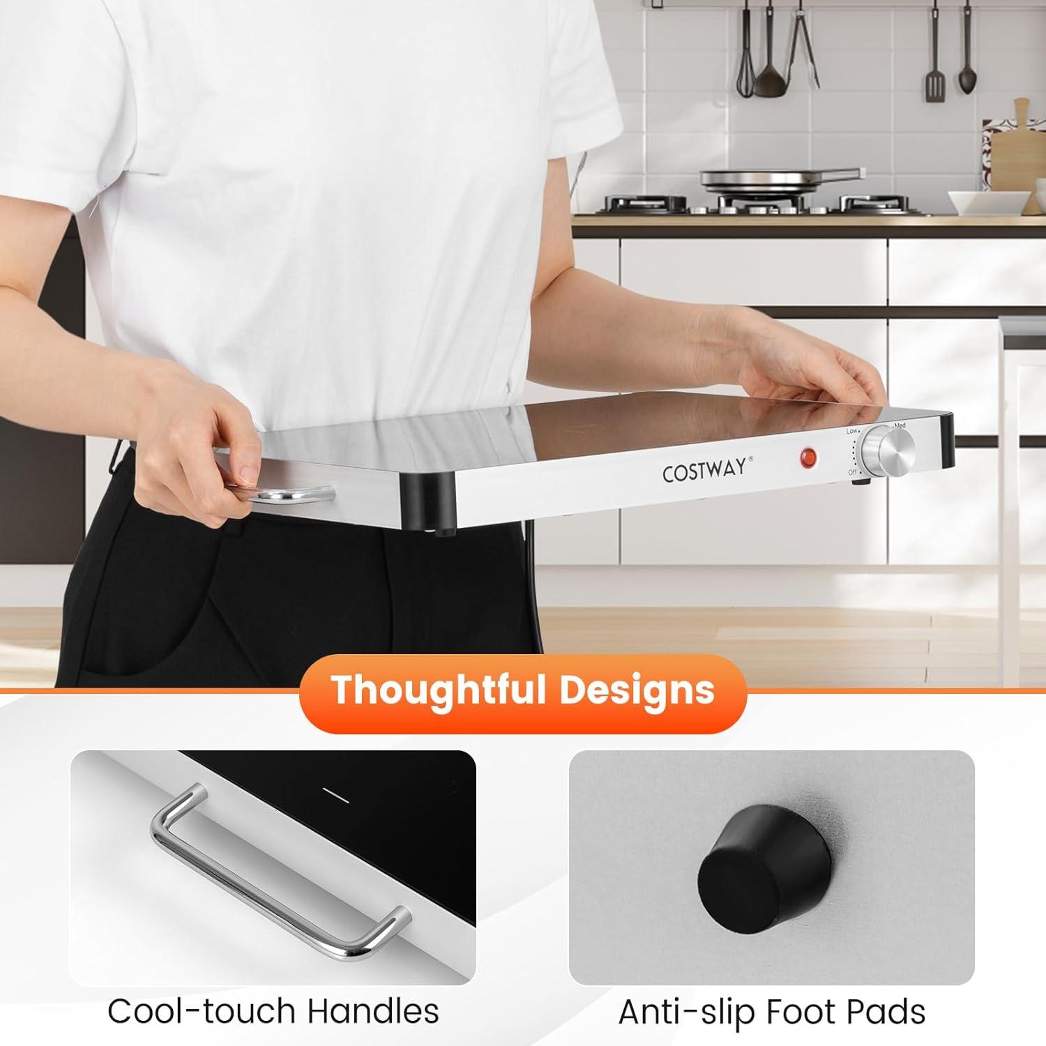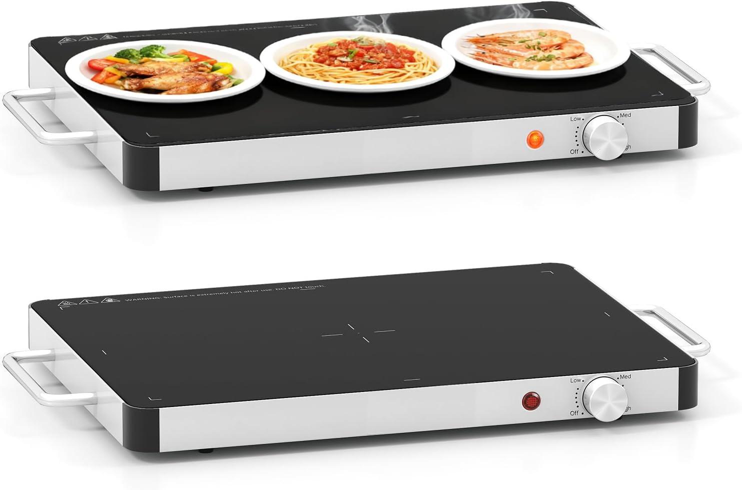 Stop serving lukewarm leftovers—serve sizzle! This sleek electric warming tray turns your counter into a pro-grade hot station. The tough tempered-glass deck handles grandma’s casserole dish or your trendiest platter, while three heat levels keep everything from wings to waffles party-perfect. Built-in overheat protection, cool-touch handles, and grippy feet mean no worries, just warm seconds (and thirds). Wipes clean in seconds—because the only thing you should sweat is the gym. Grab it now and keep the “mmmm” in every bite!
