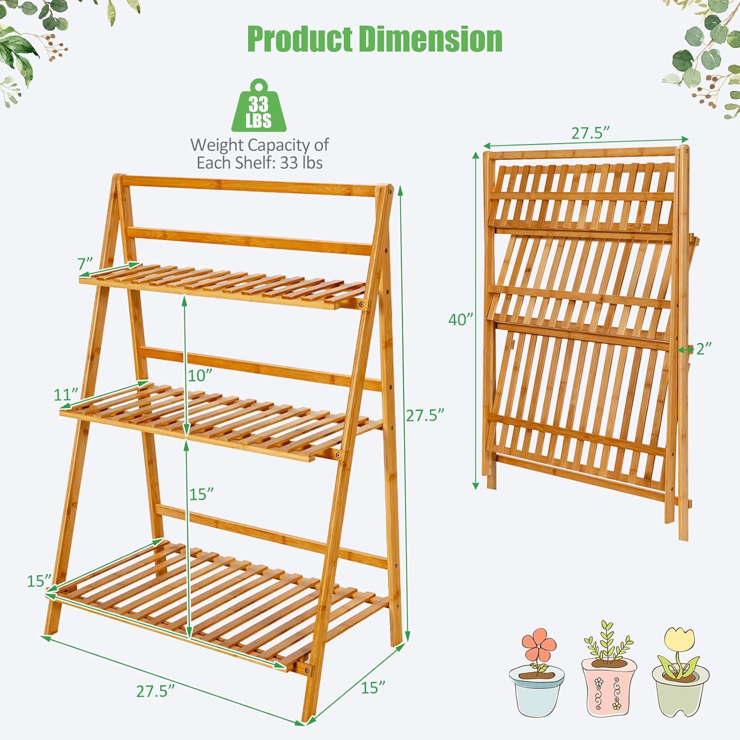 Sturdy & Long-Lasting Frame: The triangular design of this folding plant stand ensures stability, while the reinforced nut connections provide a robust foundation for long-term use. Each tier can bear approximately 33 lbs and up to 100 lbs load capacity in total.