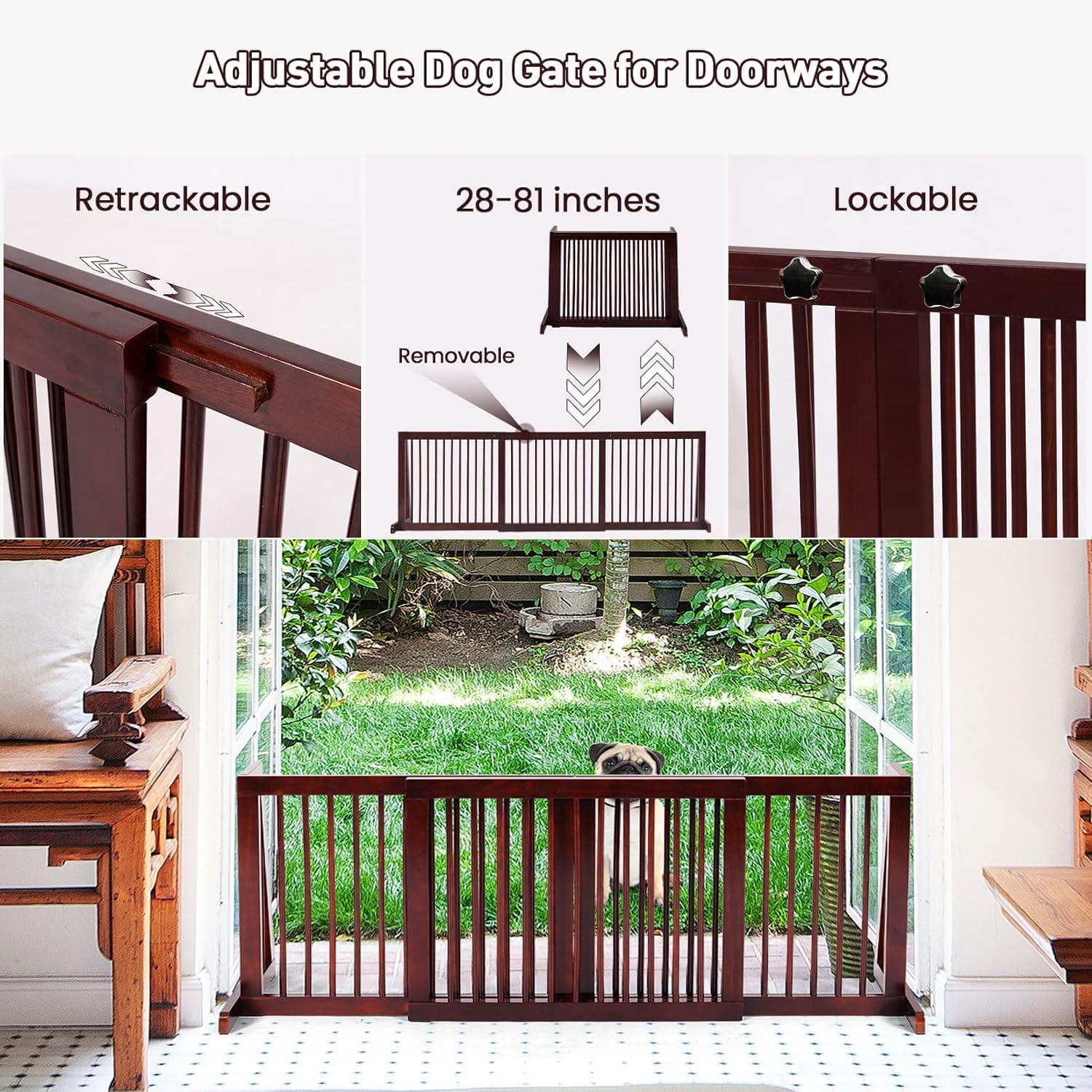 Free Standing Dog Gate, 28”-80” Expandable Indoor Dog Fence, Stand Alone Safety Pet Gate for Small to Medium Sized Dogs, Extra Wide Pet Barrier, Step Over Dog Gate for Stairs Entrance Doorways