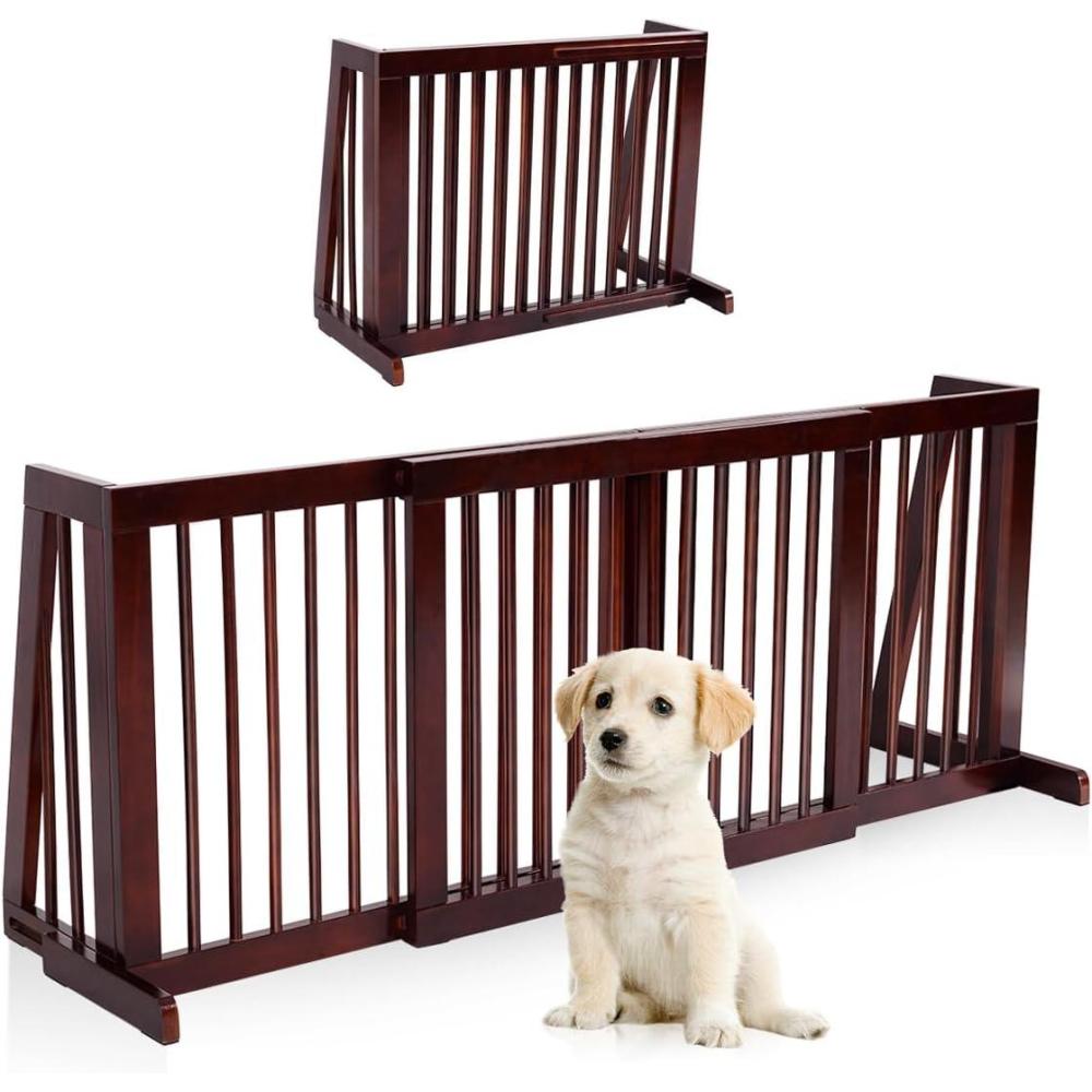 imageFree Standing Dog Gate 2880 Expandable Indoor Dog Fence Stand Alone Safety Pet Gate for Small to Medium Sized Dogs Extra Wide Pet Barrier Step Over Dog Gate for Stairs Entrance Doorways