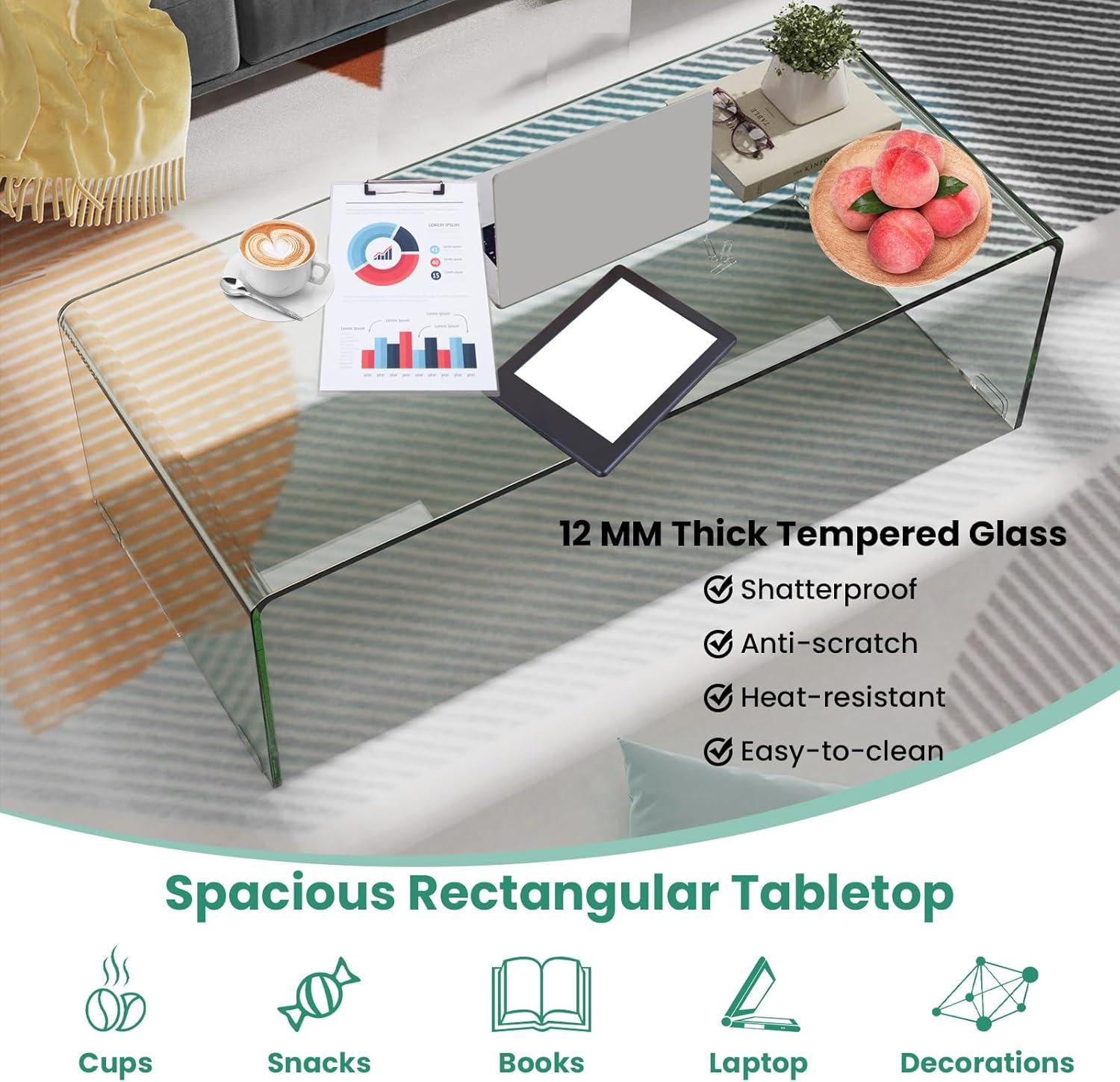 Tempered Glass Construction: Made with 12mm thick tempered glass, our living room coffee tables ensures durability and long-lasting performance. The scratch-resistant surface withstands heat and supports up to 66 lbs, making it perfect for holding books, electronics, and more. Its robust design offers reliable stability