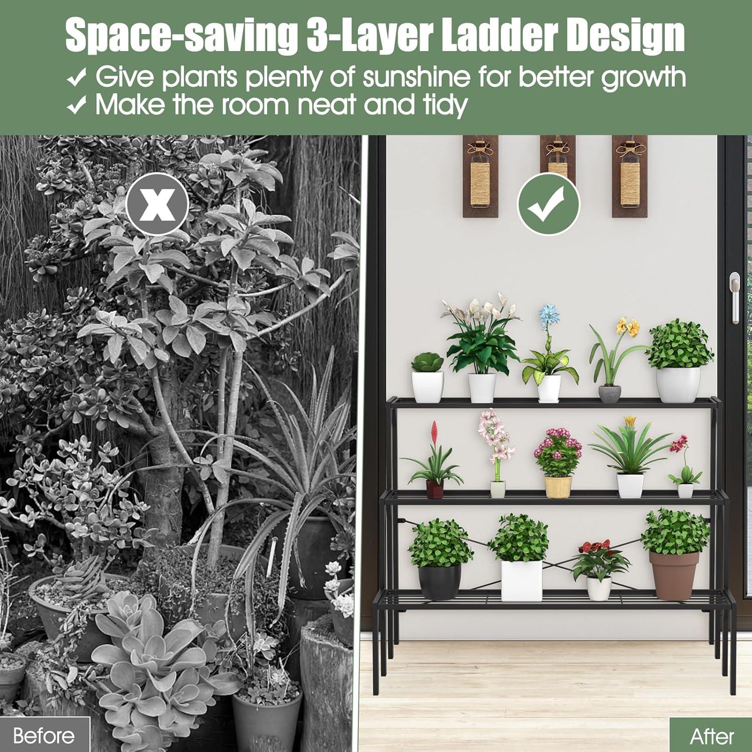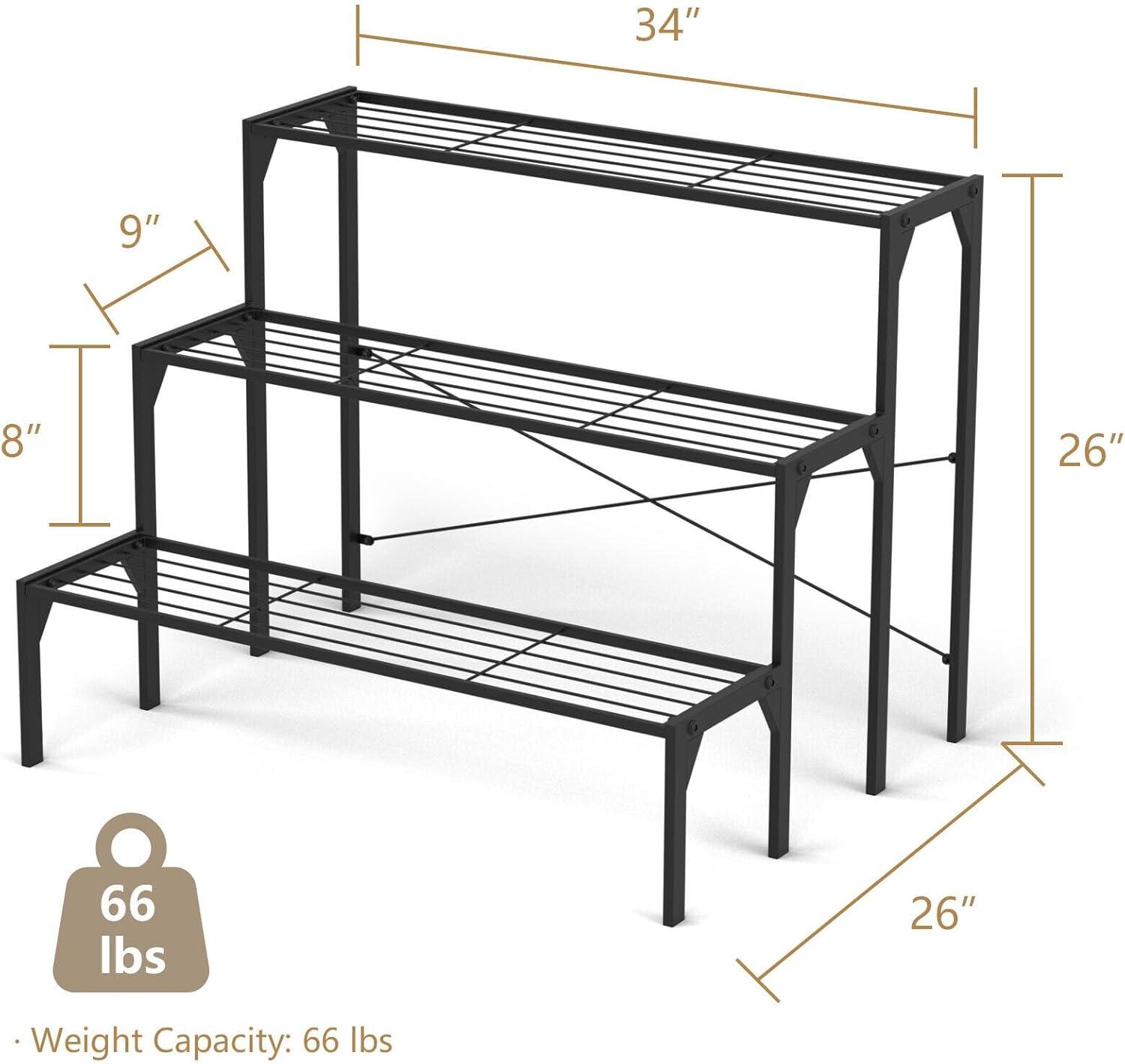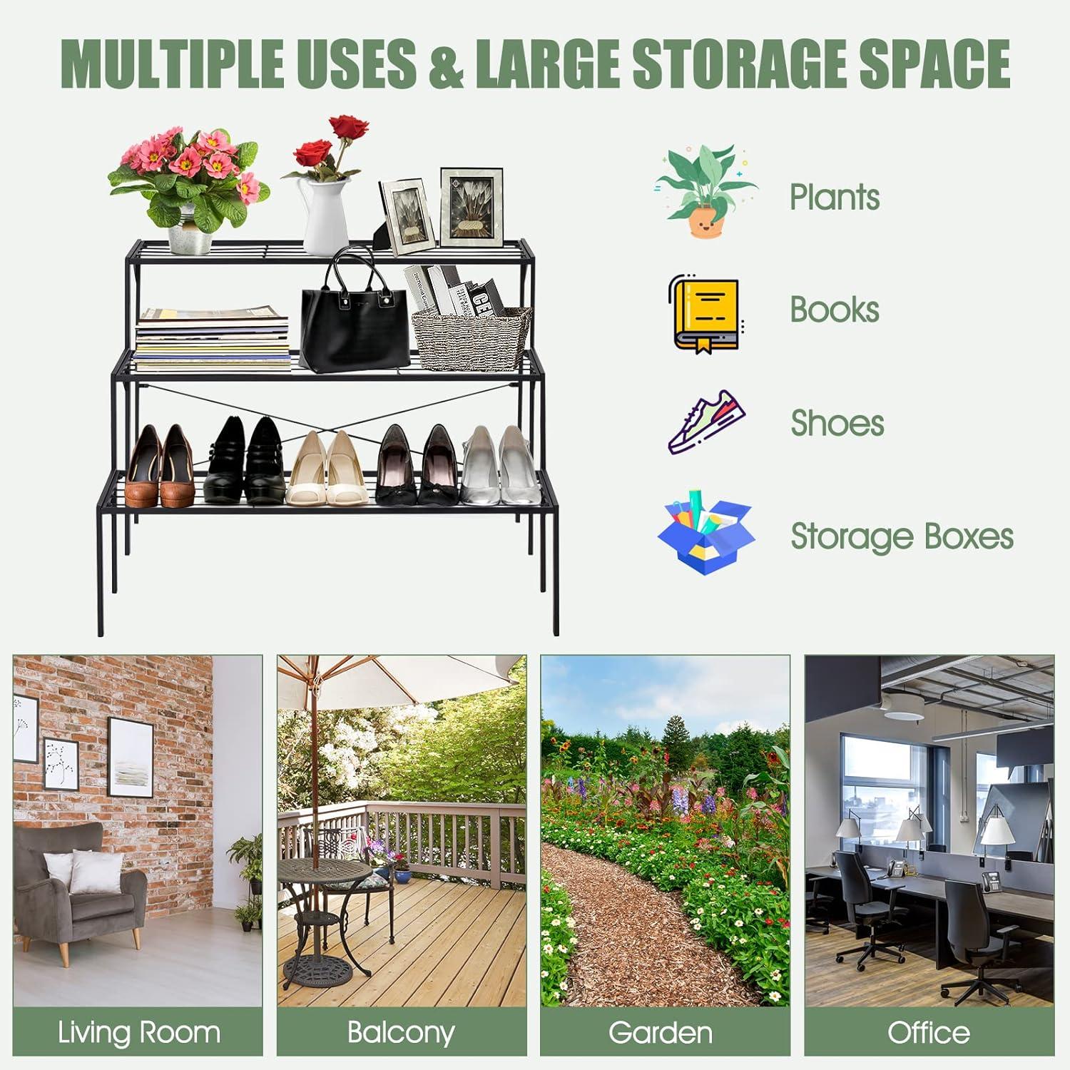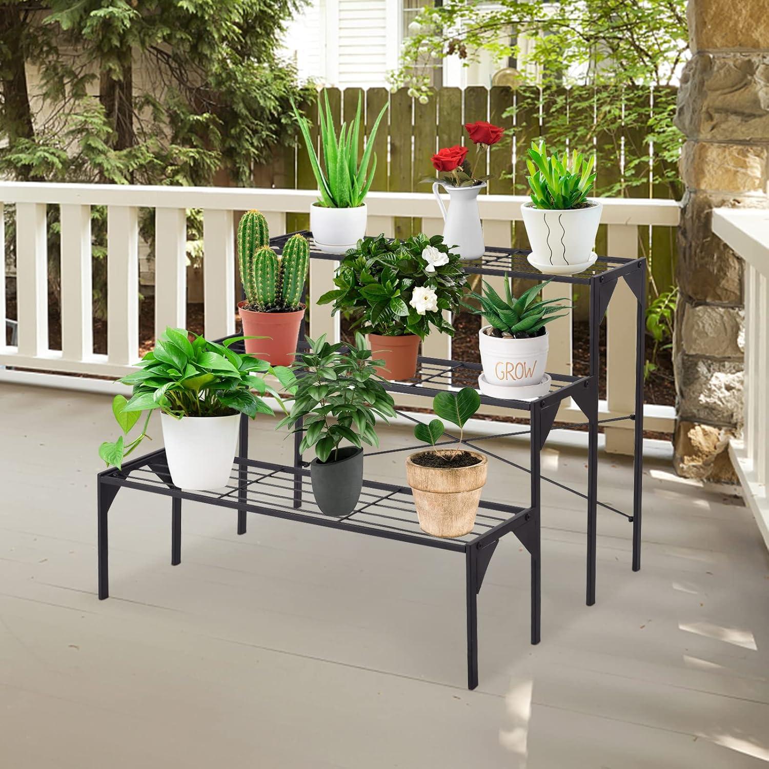GRAFFY 3-Tier Metal Plant Stand, Heavy Duty Flower Display Rack, Plant Stands for Indoor Plants Multiple, Stair Style Plant Stand for Yard Patio Balcony Garden