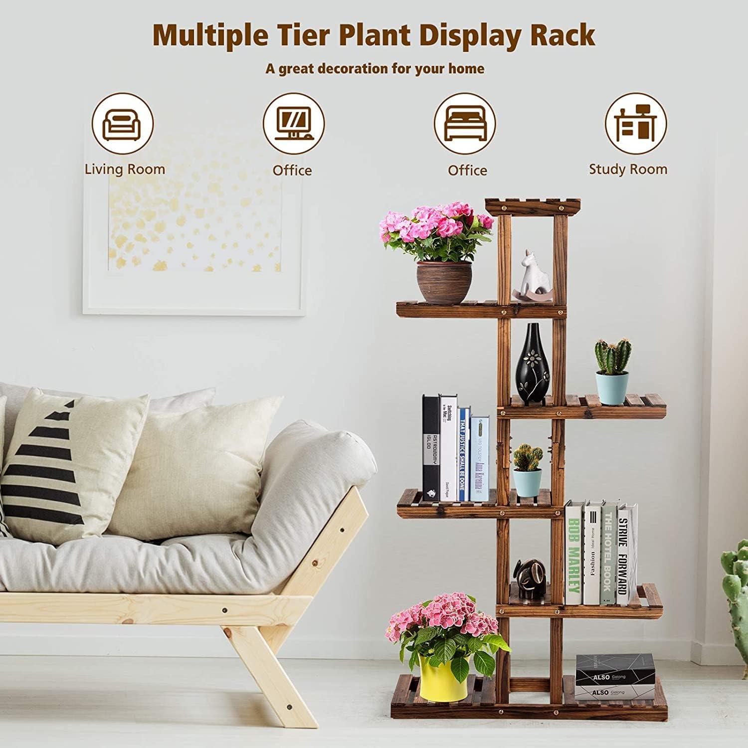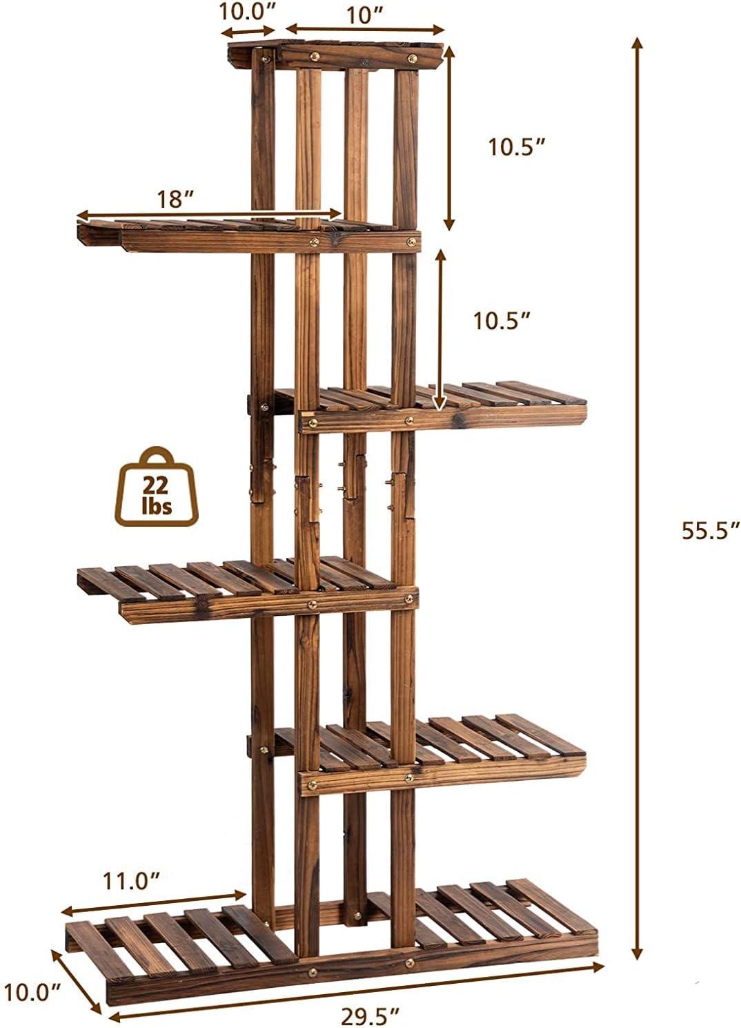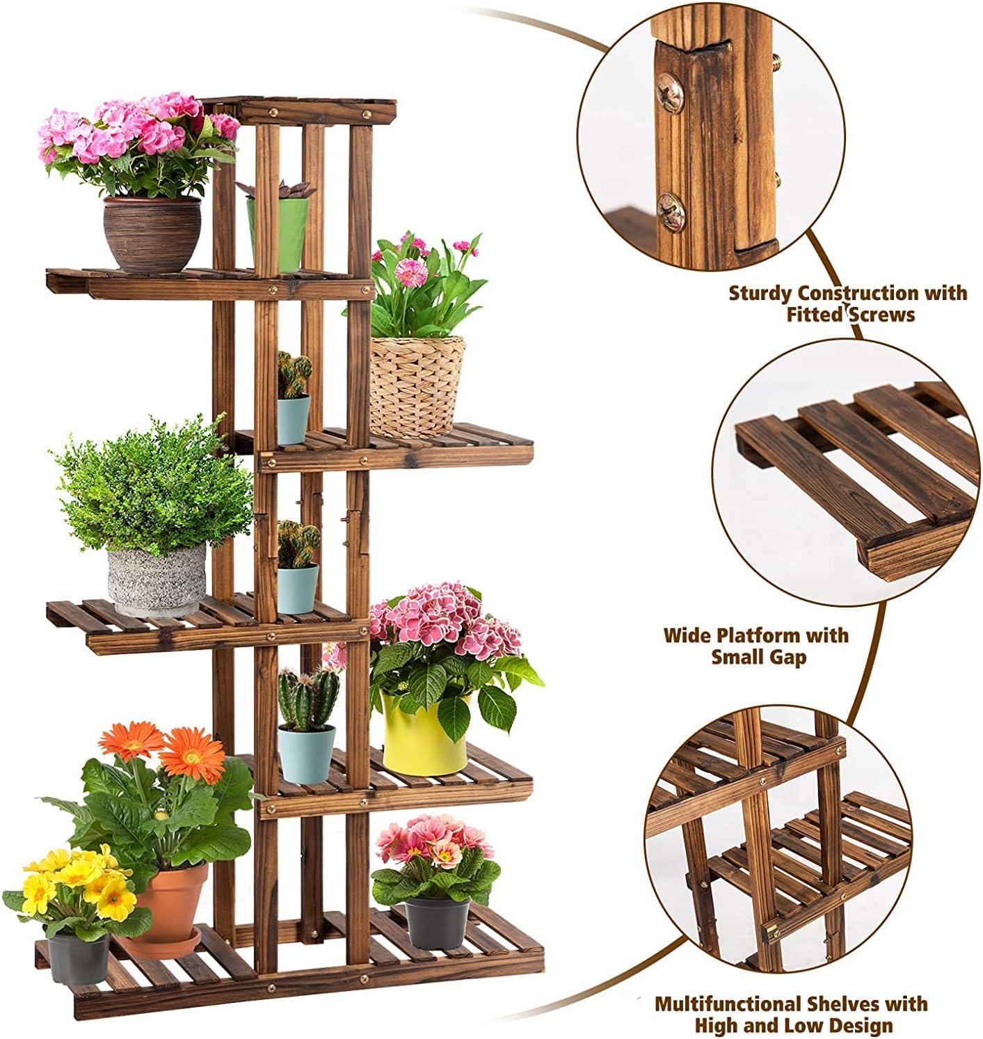 Our plant rack is made of high-quality fir wood, the sturdy wooden frame can withstand the test of time and weather and serve you for a long time. Moreover, the solid wood frame is more stable, and each display platform can provide strong support for plants. It is worth mentioning that the high and low layered design is conducive to plants and flowers to absorb sunlight. Especially the hollow design, this unique design not only facilitates watering, but also promotes air circulation for plants. This multifunctional plant stand can not only be used as a planting shelf, it can also be used as a bookshelf for books, as a display shelf for photo albums and ornaments, and as a storage shelf for daily necessities to meet your diversified needs. Such a beautiful indoor and outdoor plant rack is suitable for multiple scenes. You can put it in the living room, balcony, terrace, yard, etc., so that your plants and flowers can be displayed in a better way.