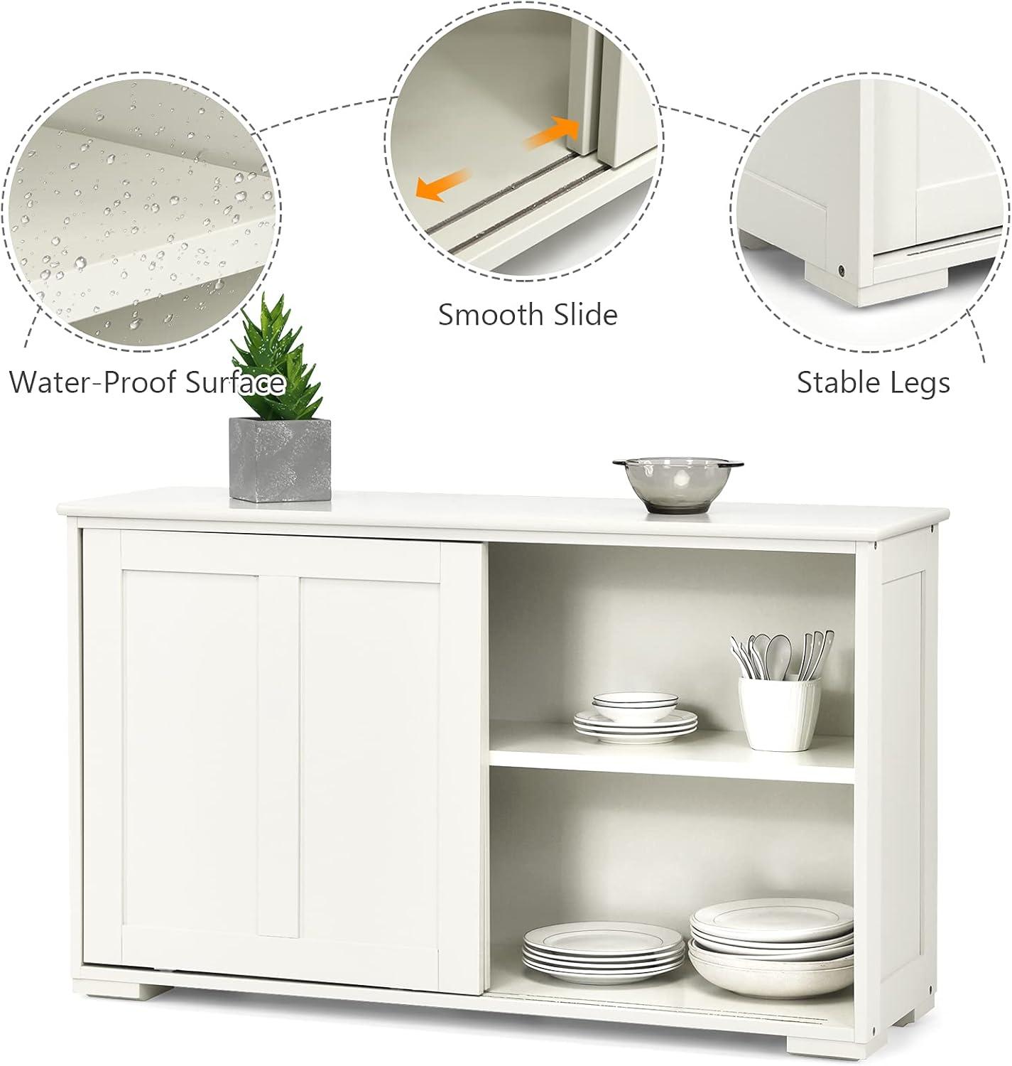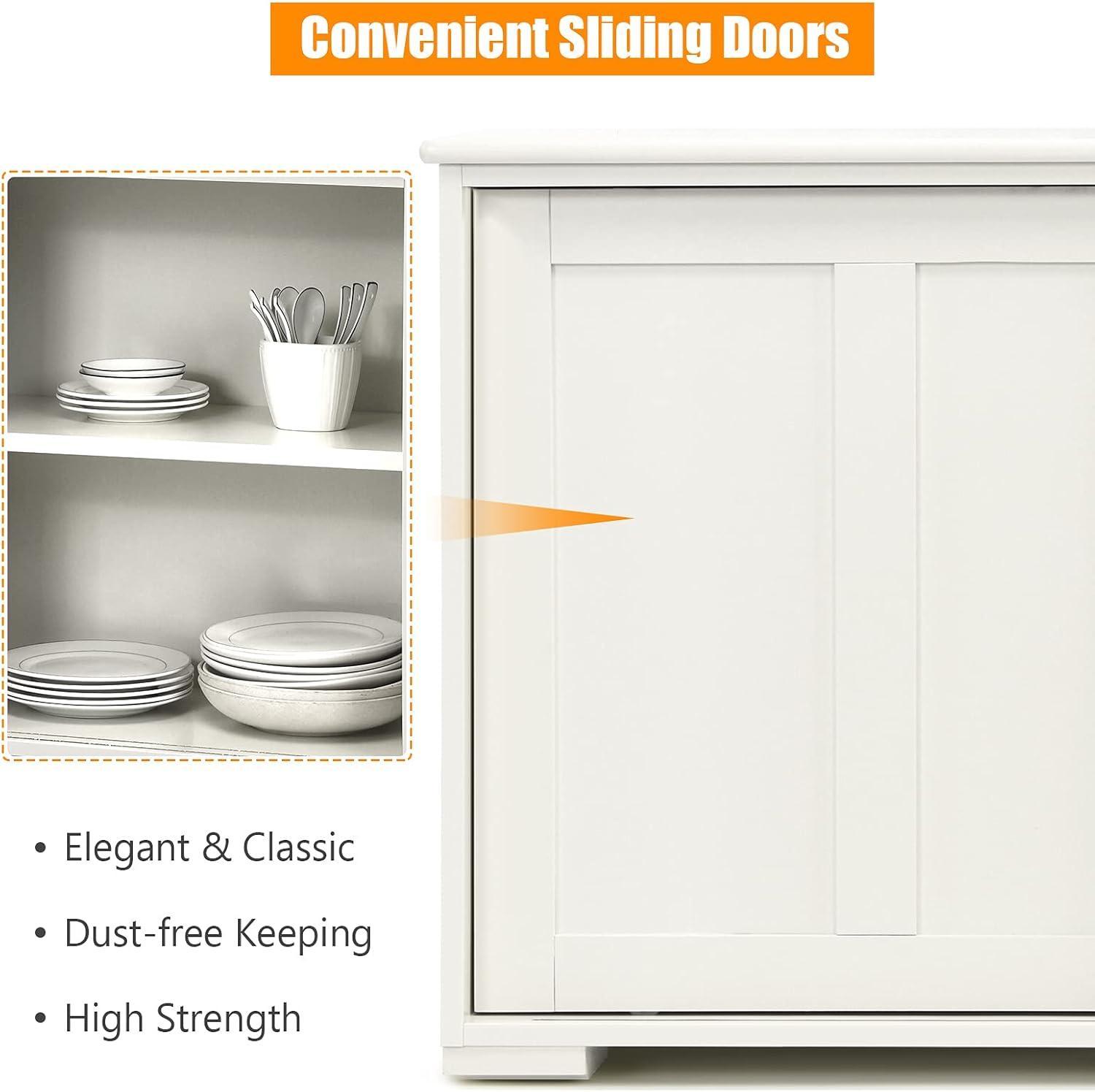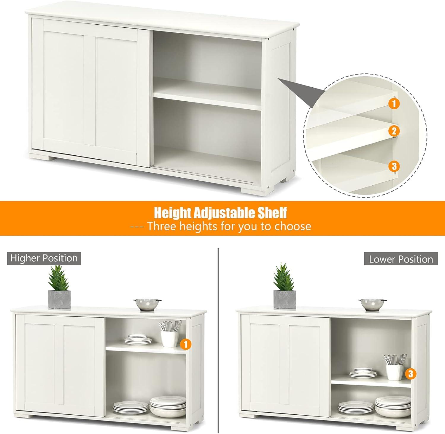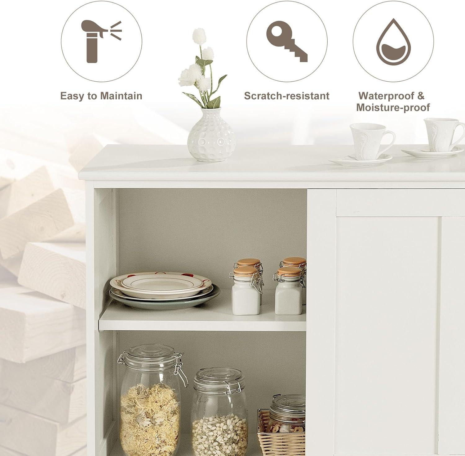 Smooth Sliding & Height Adjustable: Features with two doors running on smooth slide, our buffet storage cabinet is easy to open and close fluently. In addition, this kitchen cabinet has a height adjustable shelf inside, which can be adjusted up and down to 3 height positions for better use of space and create a clean environment.