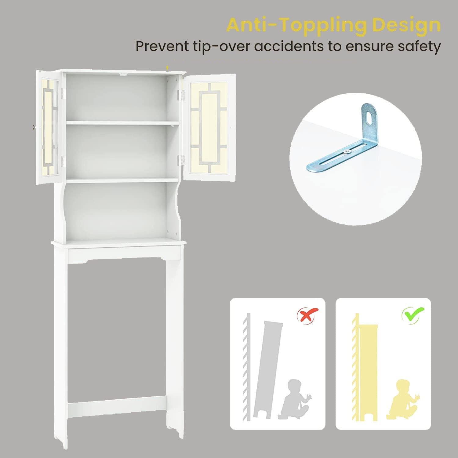 Easy Assembly & Cleaning: Installation is quite easy within a few steps using the clear instruction. Also, the surface of our above toilet cabinet is smooth and water-resistant, which makes it easy to clean.